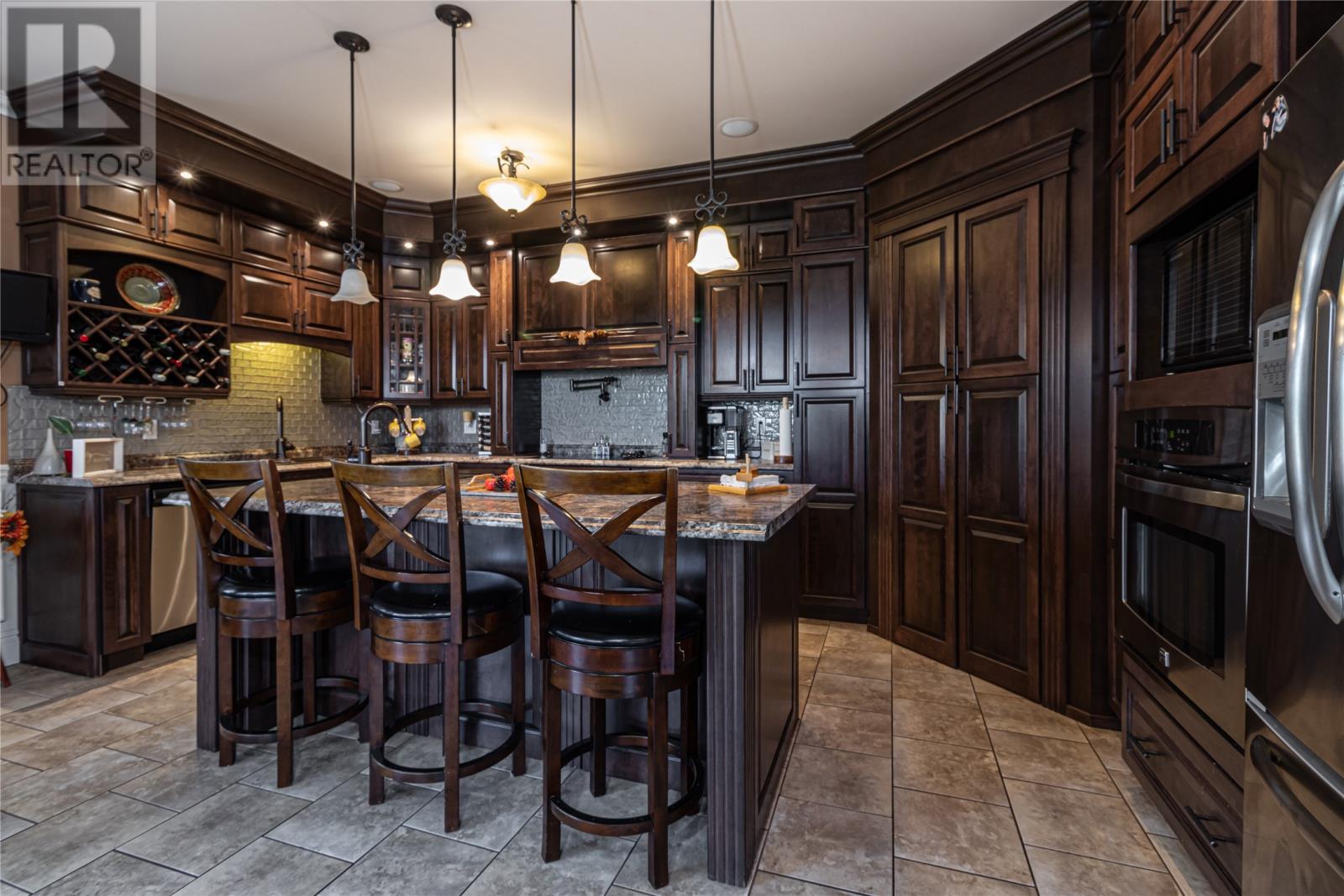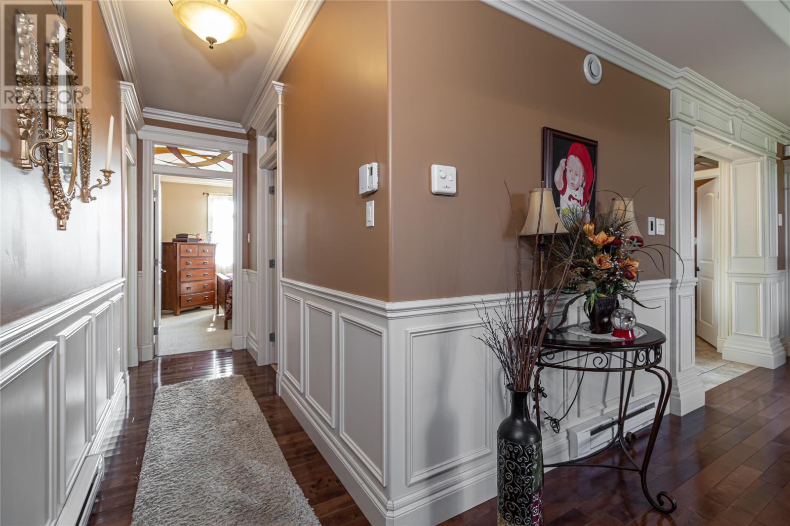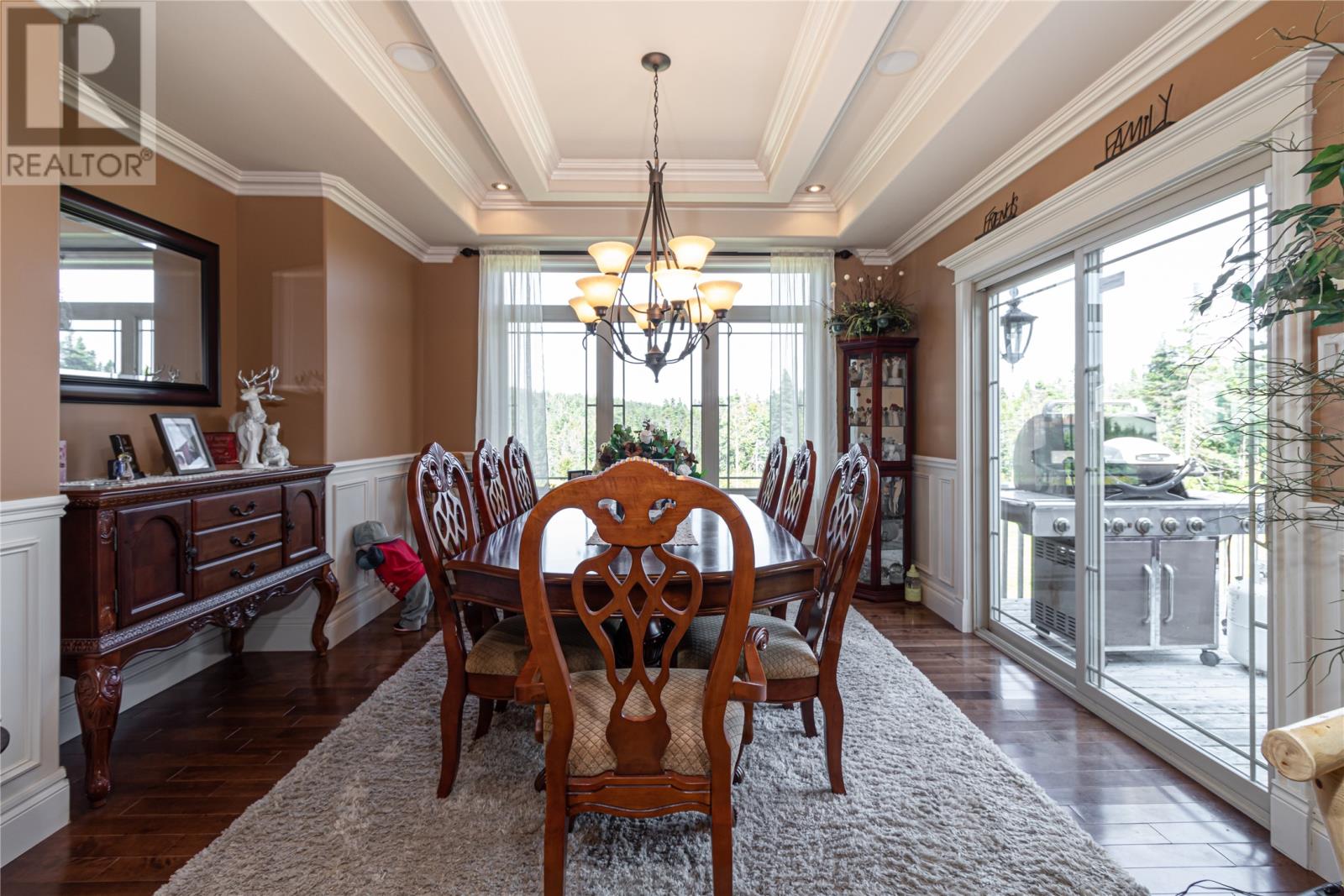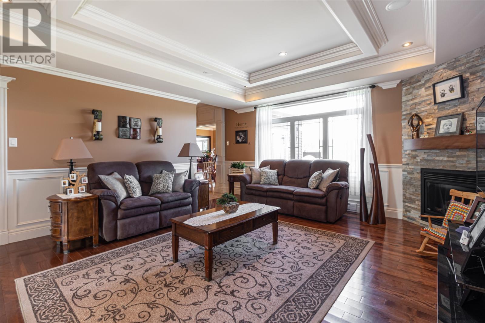 Situated on a large 1.3 acre lot in Forest Landing in scenic Torbay is this custom built 5000 sq ft executive home that is sure to impress. As you enter this amazing home, the WOW factor begins to set in. The main floor features a beautiful Chefs Kitchen with floor to ceiling cabinetry, hidden pantry & centre island, formal dining room, cozy family room w/ wood burning fireplace & built in bar, living room w/ propane fireplace, main floor laundry & spacious foyer. The 3 main floor bedrooms are very spacious w/ the master having a corner propane fireplace & 4 pc ensuite w/ soaker tub & enclosed shower & large walk in closet. As an added feature there is a large bonus room above the garage. The basement has an oversized rec room, 4th bedroom, den, office and large storage area. Custom tray ceilings throughout w/ pot lights. Heated ceramic floors. 9ft ceilings. Attached triple garage & detached 24 x 36 garage ideal for storing all the 'TOYS'. Covered front entrance. Fully landscaped. Permanent greenbelt. Rear yard access. This home is ideal for the growing family. (id:22211)