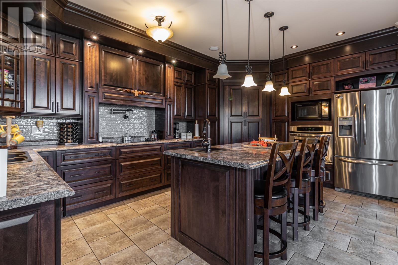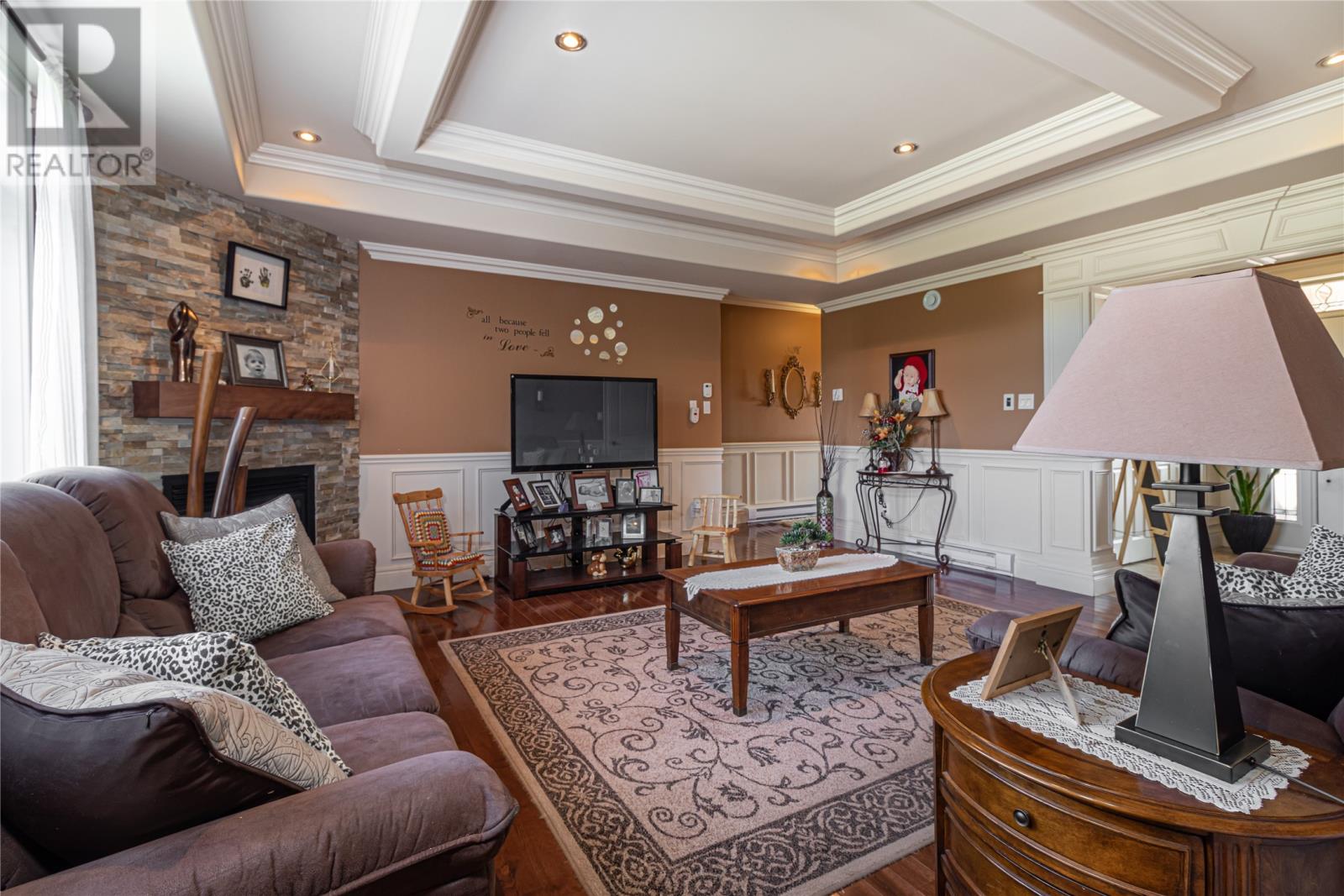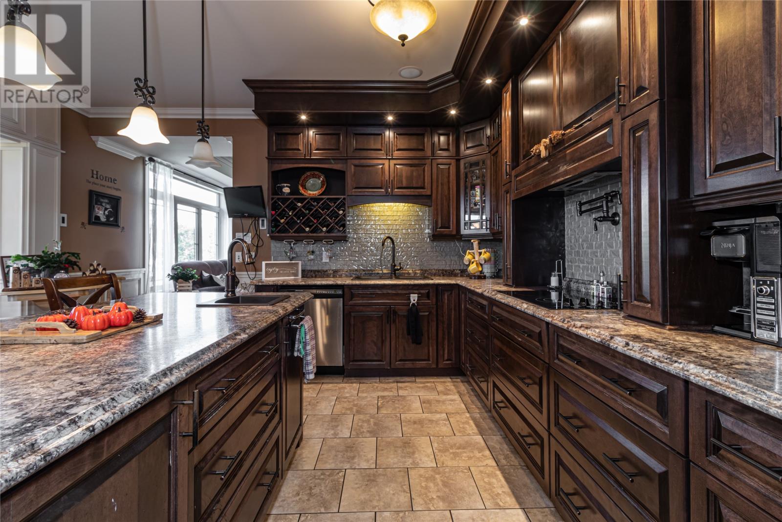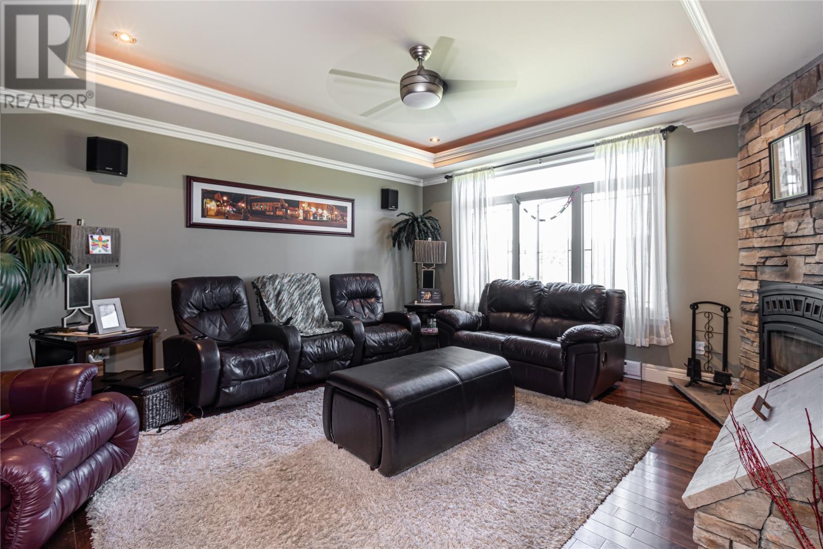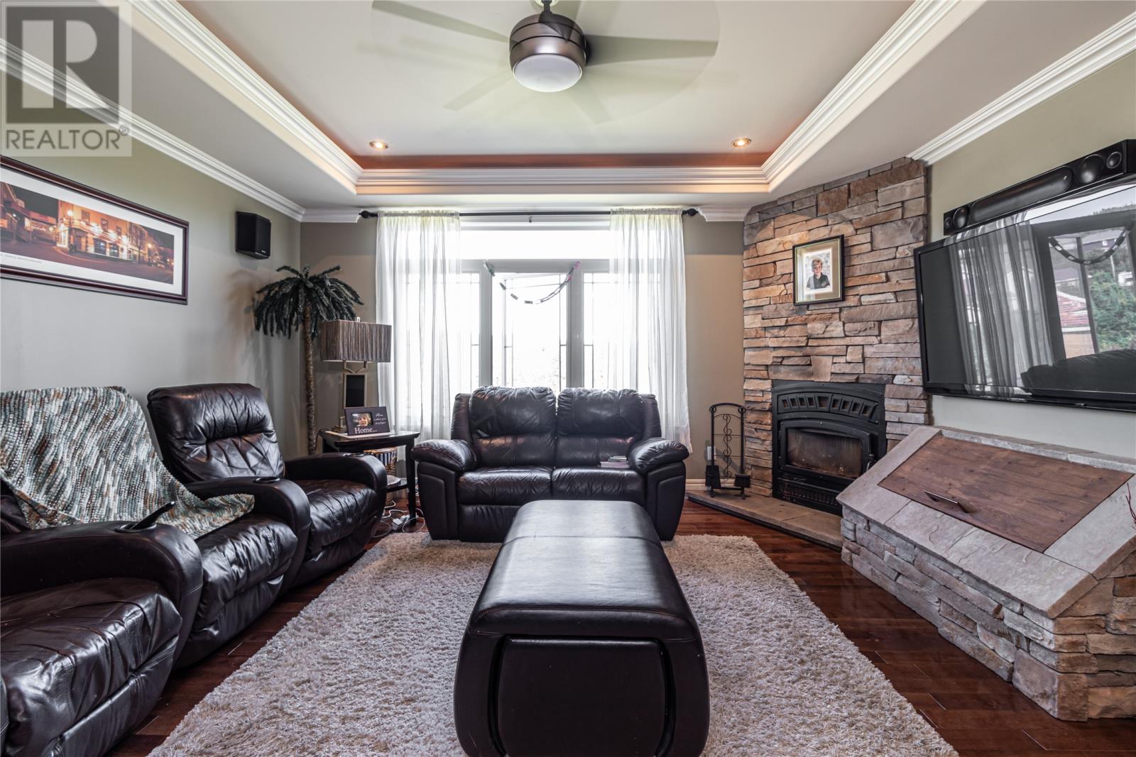 Situated on a large 1.3 acre lot in Forest Landing in scenic Torbay is this custom built 5000 sq ft executive home that is sure to impress. As you enter this amazing home, the WOW factor begins to set in. The main floor features a beautiful Chefs Kitchen with floor to ceiling cabinetry, hidden pantry & centre island, formal dining room, cozy family room w/ wood burning fireplace & built in bar, living room w/ propane fireplace, main floor laundry & spacious foyer. The 3 main floor bedrooms are very spacious w/ the master having a corner propane fireplace & 4 pc ensuite w/ soaker tub & enclosed shower & large walk in closet. As an added feature there is a large bonus room above the garage. The basement has an oversized rec room, 4th bedroom, den, office and large storage area. Custom tray ceilings throughout w/ pot lights. Heated ceramic floors. 9ft ceilings. Attached triple garage & detached 24 x 36 garage ideal for storing all the 'TOYS'. Covered front entrance. Fully landscaped. Permanent greenbelt. Rear yard access. This home is ideal for the growing family. (id:22211)