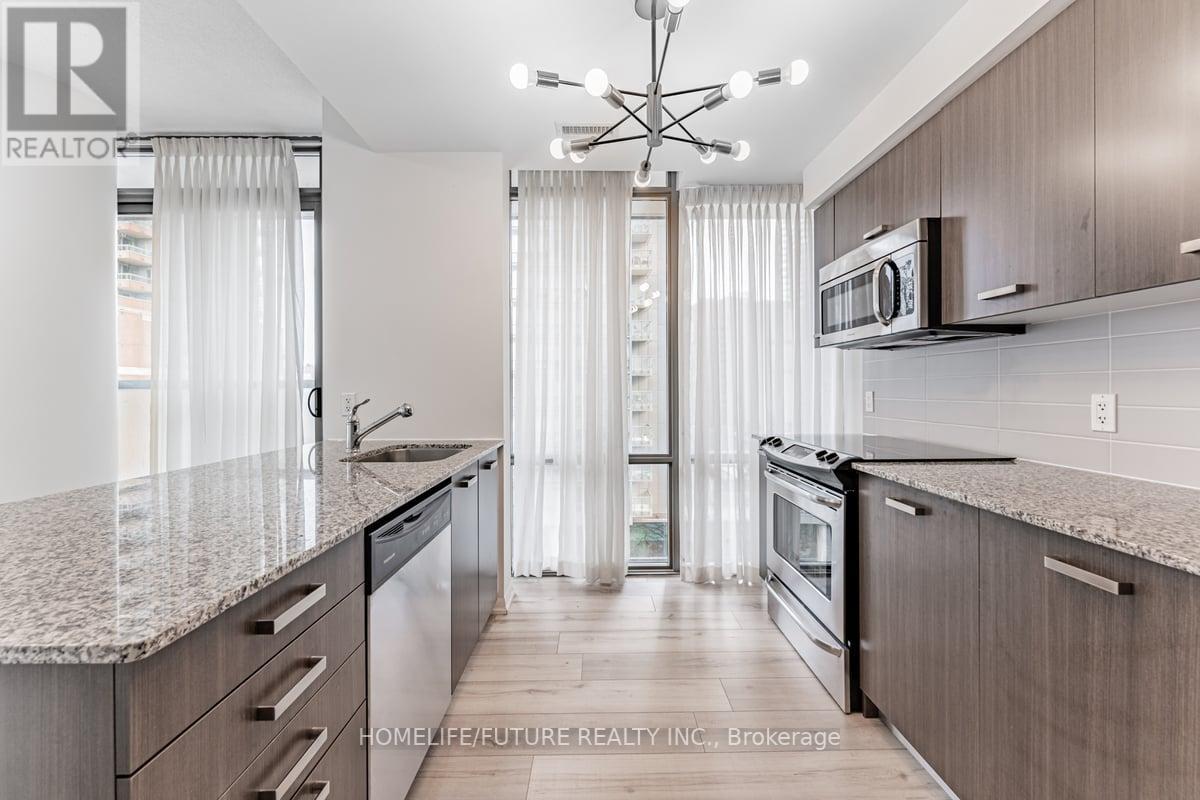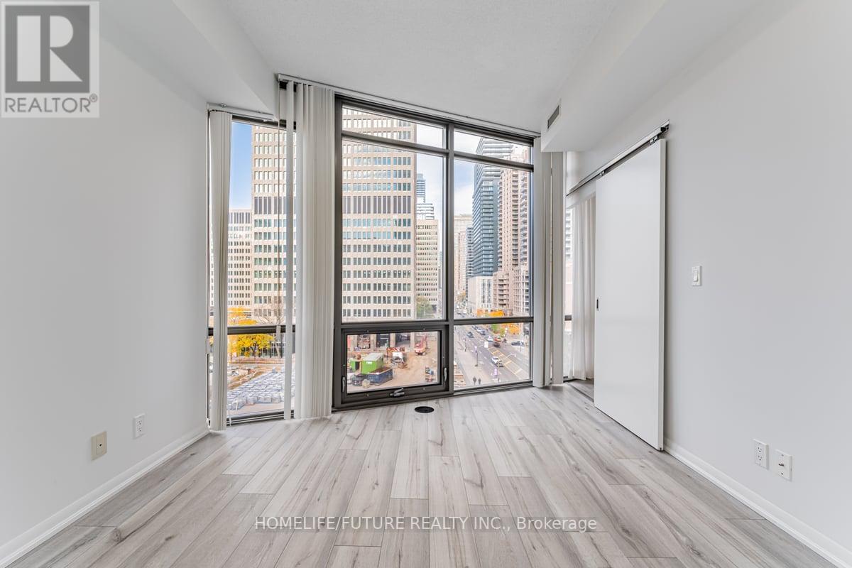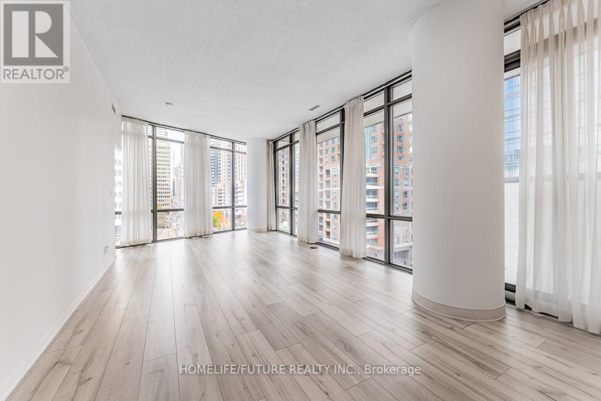 In the Heart of Downtown Toronto Financial & Entertainment District! Simply Gorgeous, Bright & Spacious 1090 Sq Ft 2 Bedroom + Den & 2 Full Washroom corner suite for Sale! The Huge Den Space would be the Work Station & Office for working from Professionals or Family! Freshly Painted, 9Ft Ceiling Open Concept Living/Dining/Kitchen, Breakfast Island, Floor to Ceiling Windows & Updated laminate Flooring throughout, Prime Bedroom W/5 Pcs En-suite, His & Her Closets. Close to the College Park mall, Loblaw's, Sobeys, TTC, Subways U of T, Ryerson Universities, Hospital, 24 Hours Concierge, Outdoor Swimming Pool Guest Suites, Gym, Party Room, Lounge Board Room, Theatre Room, Visitors Parking and Many More. Has it All & Won't Last! MOVE IN READY FOR THIS BEAUTIFUL UNIT'S WALK SCORE: 99; TRANSIT SCORE: 98 AND THE BIKE SCORE: 92. (id:22211)