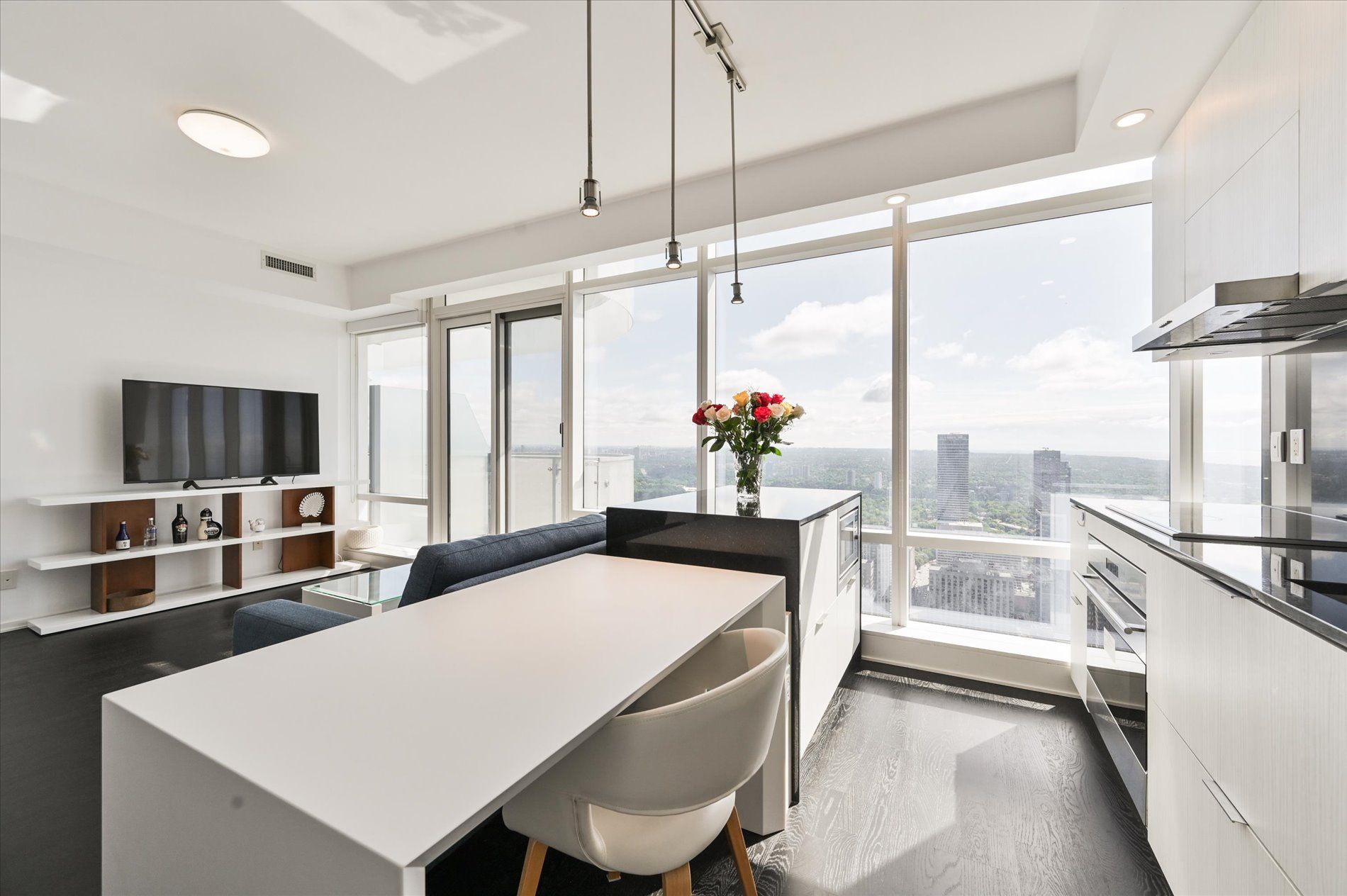 Landmark Location & Luxurious Iconic Building Design & Amenities! Direct Access To N/S & E/W Subway Lines, Few Mins Walk To Yorkville, Ryerson & U Of T,Indoor/Outdoor Pool,Sauna,Spa.Beautiful High Floor 1 Br Suite W/ Unobstructed East Views,535sqft, 9 Ft Smooth Ceilings, Very Spacious Full Length Balcony, Speedy Modern Elevators, Retail On Ground Flr, High End Integrated Appliances, Stylish Blinds, Glass Showers. 1 Locker Included.