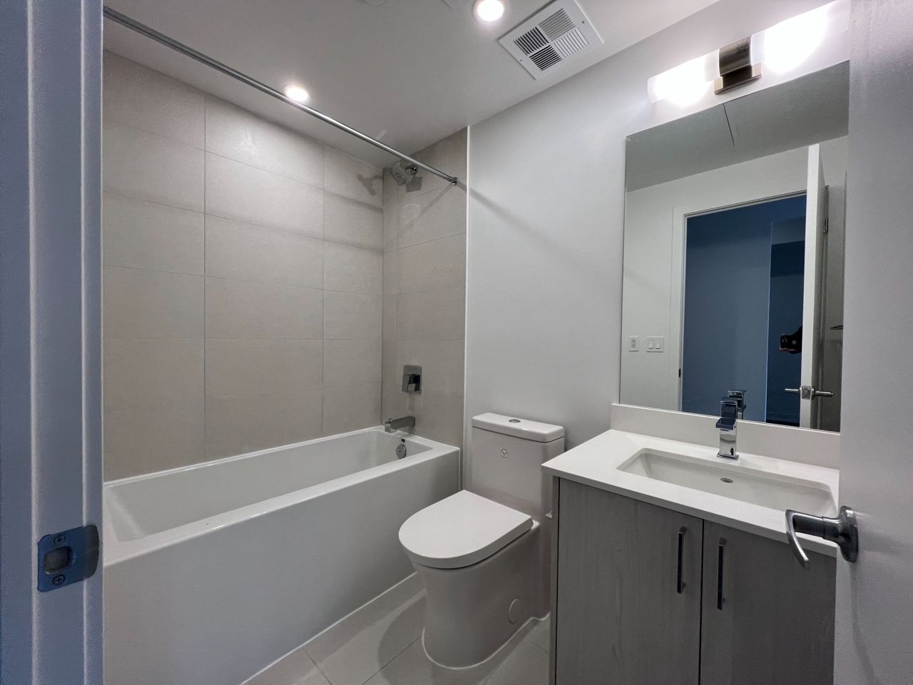 1 Year New One Br Plus Den Spacious Condo In Cardiff Condos. Either Floor Without Blocked View. Laminated Floor Throughout. Balcony With Unobstructed Beautiful City View. The Gourmet Kitchen Offers Granite Counter Tops, Den Could Be Used As 2nd Br. Close To All Amenities Including Ttc, Shopping, Parks, Restaurants, Bars, Cinemas.Includes Appliances: Fridge, Stove, Oven, Washer, Dryer And Existing Electric Light Fixtures. Tenant Responsible For Utilities And $120+Hst/Month Heat Pump Rental.