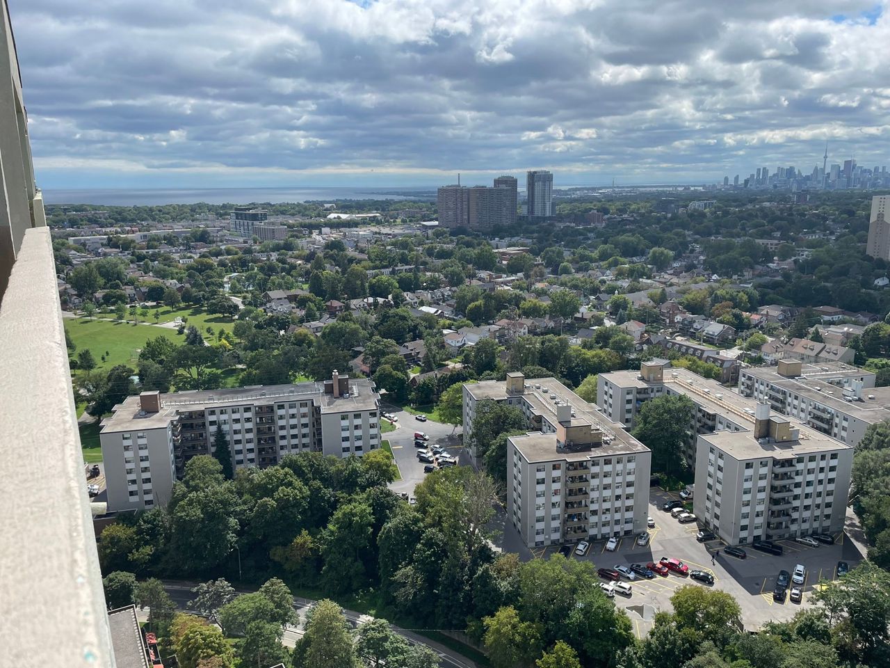 This $1M View Of Toronto, The Lake, The Escarpment Coupled With The Sounds Of Coyotes And Sights Of Soaring Falcons Makes This Home The City's Best Kept Secret. Imagine Living In A Home Full Of Colour And Space With All You Need To Live. Inspired By Nature And Oh So Cozy. The Spacious Balcony Is Entirely Private Boasting The Greatest Sunsets And Lunar Experience Possible. Newly Decorated With All New Fixtures And Tiled Bath Area! Not to mention all the benefits of a healthy lifestyle afforded to you with your new Crescent Town Club Membership! Pool, gym, basketball, squash and much more. The plaza at your doorstep has a health clinic, pharmacy and other shops as you make your way to the oh so close Victoria Park subway station.Cable included in maintenance fees. Ensuite Laundry! This beauty can be had with all existing furnishings, dishes and household items which Makes This Move In Ready! Rental Parking Space Available Thru Office.