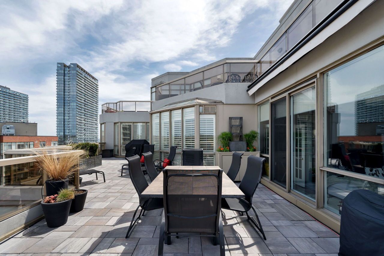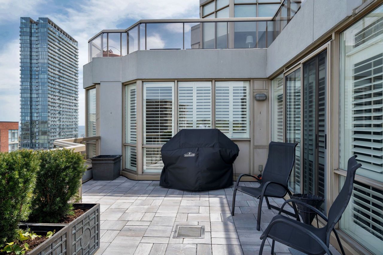 Welcome to Southampton Residences in the heart of High Park! As you step into the grand foyer, you're greeted by gleaming marble floors, unique oak flooring & French doors, opening to an abundance of natural light in the living room, creating a warm & inviting atmosphere. A striking black marble fireplace punctuates this space. The dining area with generous space, is also drenched in natural light and is perfect for hosting guests or enjoying a family meal.Indulge in some much-needed relaxation in your 6-piece luxury ensuite with jacuzzi. The media room, or possible 3rd bedroom, is similarly flooded with more natural light & features a charming office nook with built in shelving, a perfect space for those who work from home. The walkout to the 860 square foot terrace, provides a perfect oasis to unwind and bask in the serenity of your own mini-resort, complete with gas barbecue, water feature and lounging areas to enjoy the outdoors in style. This property is in a prime location near****High Park, Humber Bay, Hwys, Trails, Shops & Restaurants, providing access to the very best that Toronto has to offer whether it is a quiet escape to the park, lounging at the beach or a night out on town.