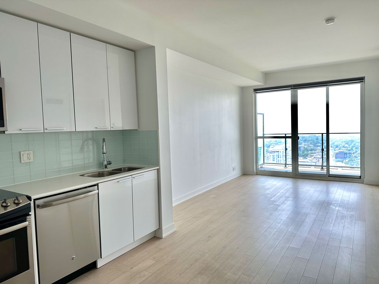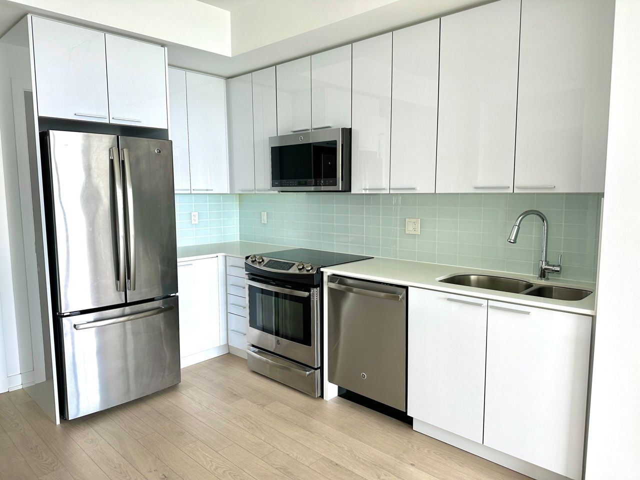Welcome to an extraordinary rental opportunity on a high floor, offering breathtaking views of the serene lake, lush greenery, and the Etobicoke cityscape. Step into the sleek kitchen adorned with glossy cabinets and stainless steel appliances, creating a modern and sophisticated atmosphere. The open concept layout maximizes space, ensuring no corners are wasted, allowing for seamless flow between the kitchen, living and dining areas. The bedroom has a generously sized walk-in closet, providing ample storage space and a separate walk-out to the balcony. Imagine waking up to the gentle morning light, brewing some delicious coffee and taking in the panoramic views that stretch before you . Be prepared to captivated by the sheer beauty and elegance that awaits you in this stunning unit with awe-inspiring views.Experience unparalleled luxury with access to a remarkable array of amenities, from an inviting outdoor pool and state-of-the-art penthouse gym to a stunning party room, top notch security, and much more.