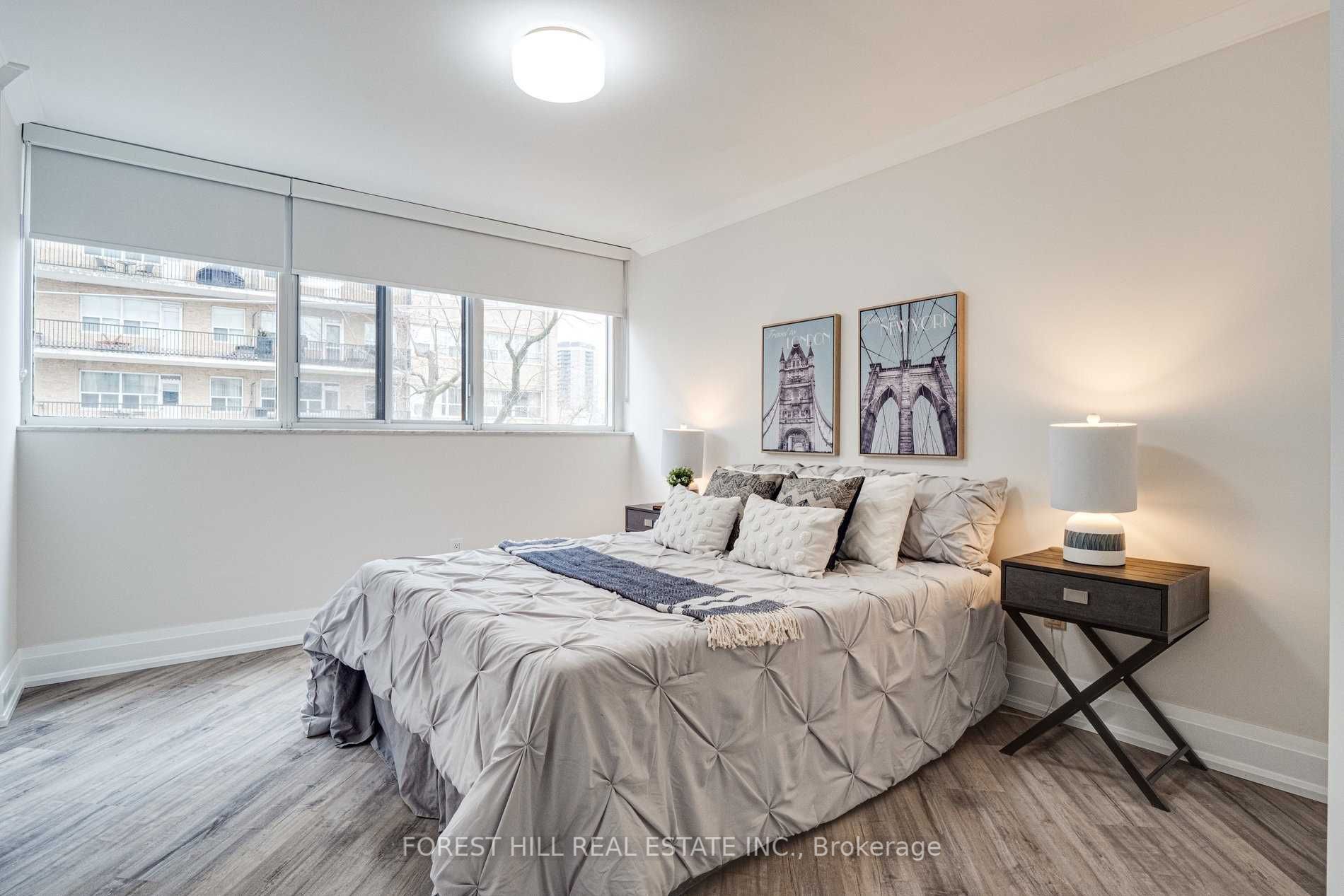 Fully Renovated To An Exceptional Standard, This Unit Offers Premium Finishes! A Sun Filled Open Concept Layout, Spectacular Kitchen With Breakfast Bar, Stone Counter & Backsplash, Top Of Line Appliances, Built-In Entertainment Wall Unit With Fireplace In Living Area, Electric Blinds, A Spa Inspired Ensuite W/Free Standing Tub, And An Abundance Of Storage Space. Steps To Shops, Restaurants, Subway/Ttc, Private & High Ranking Schools, And Fabulous Parks.Pets Permitted. ***Maintenance Fees Include All Utilities Including Cable***