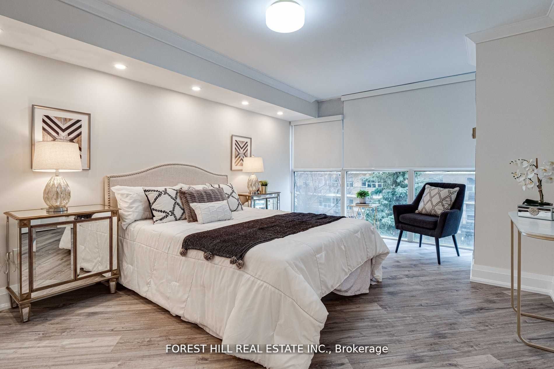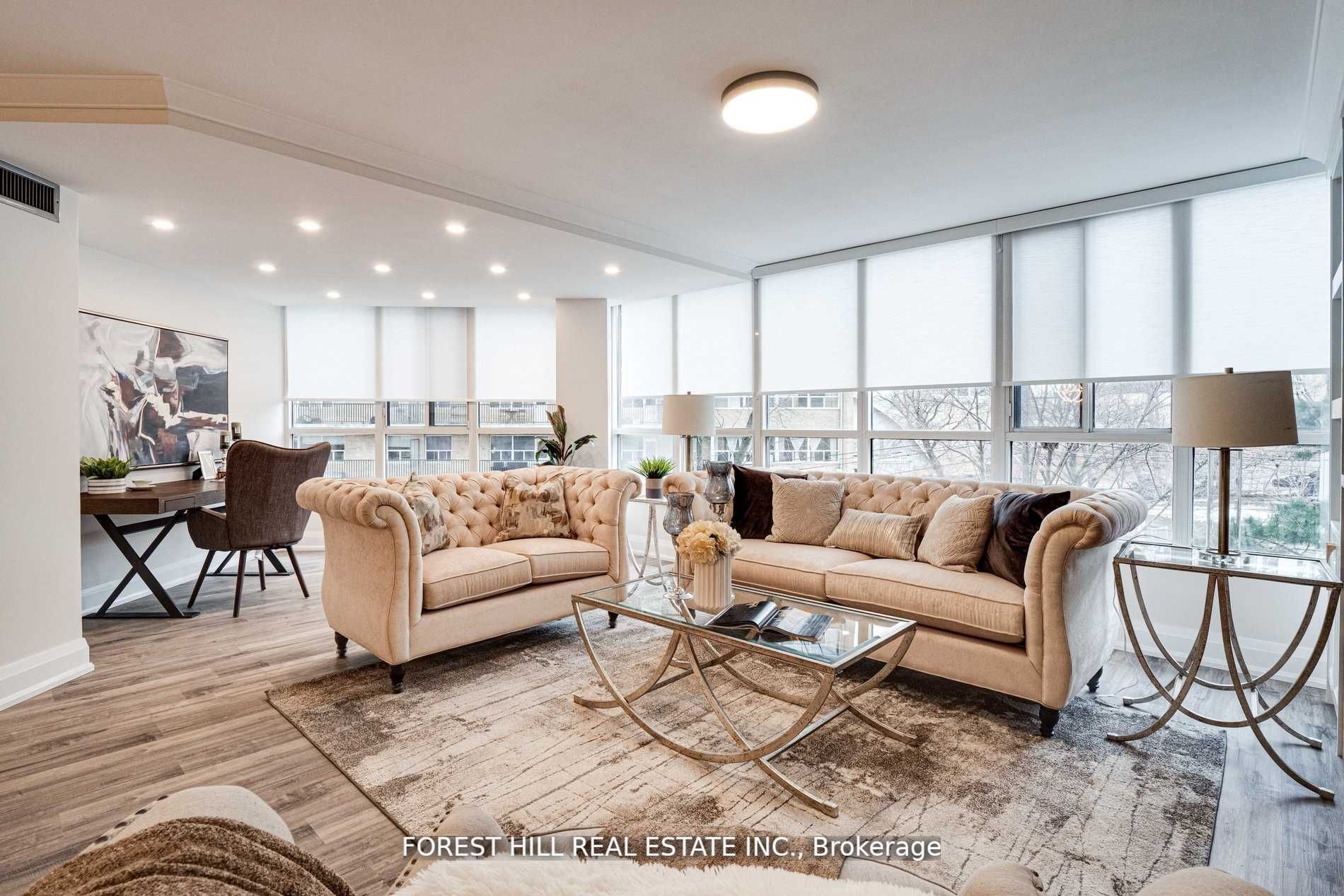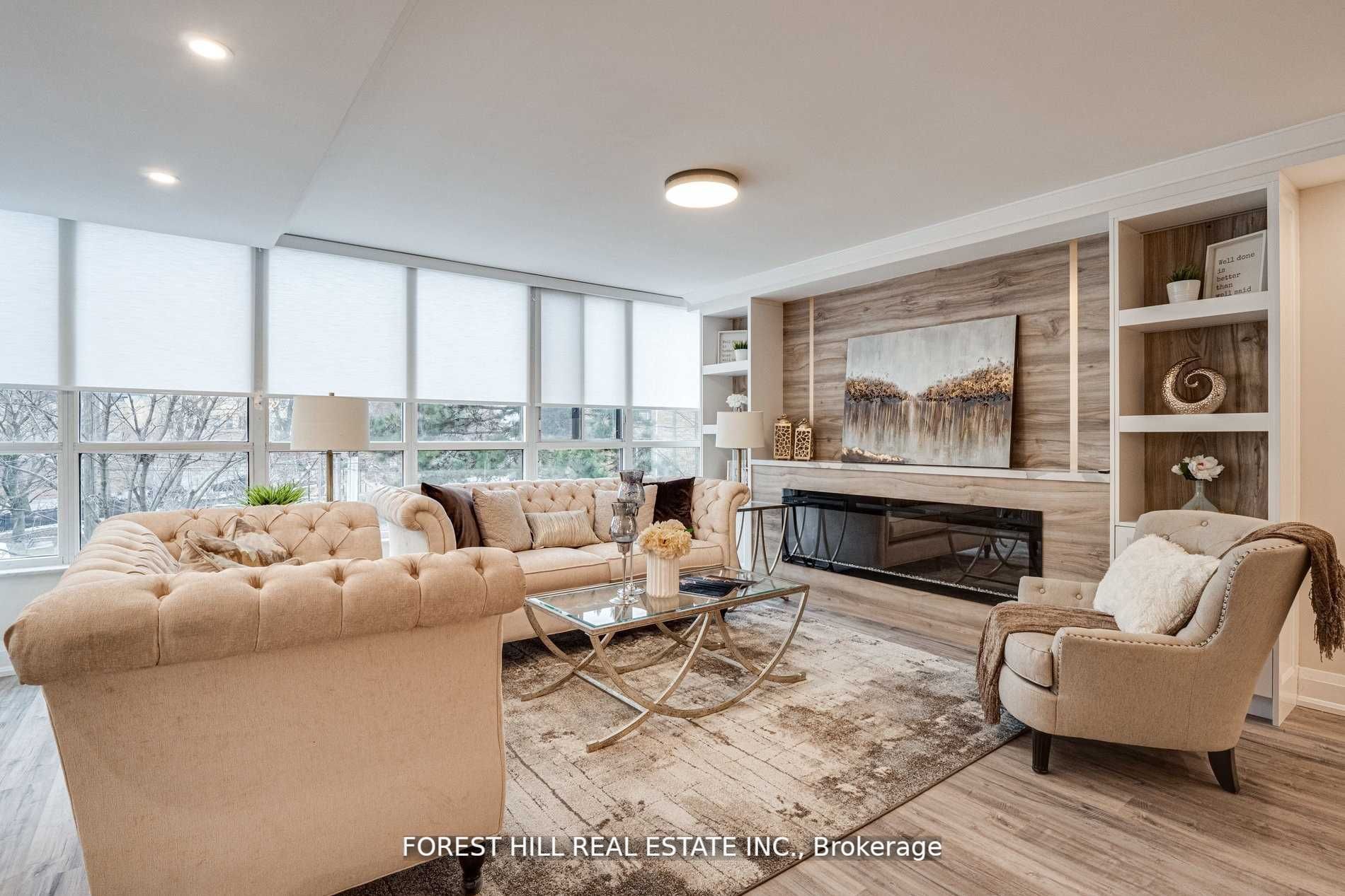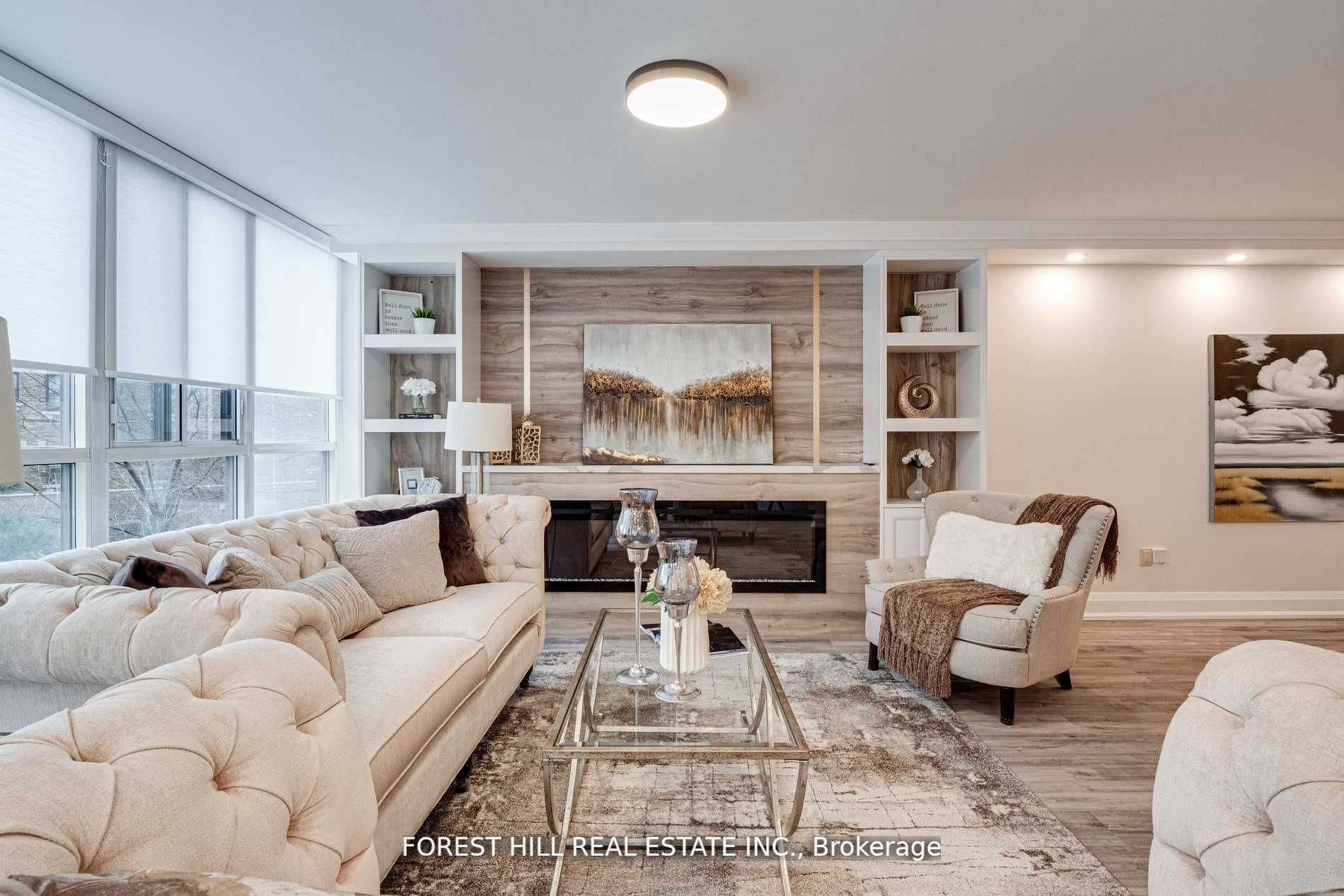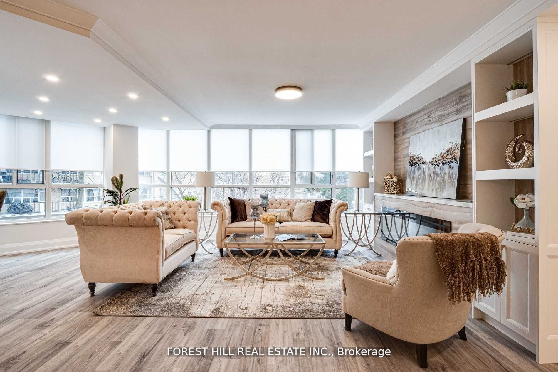 Fully Renovated To An Exceptional Standard, This Unit Offers Premium Finishes! A Sun Filled Open Concept Layout, Spectacular Kitchen With Breakfast Bar, Stone Counter & Backsplash, Top Of Line Appliances, Built-In Entertainment Wall Unit With Fireplace In Living Area, Electric Blinds, A Spa Inspired Ensuite W/Free Standing Tub, And An Abundance Of Storage Space. Steps To Shops, Restaurants, Subway/Ttc, Private & High Ranking Schools, And Fabulous Parks.Pets Permitted. ***Maintenance Fees Include All Utilities Including Cable***