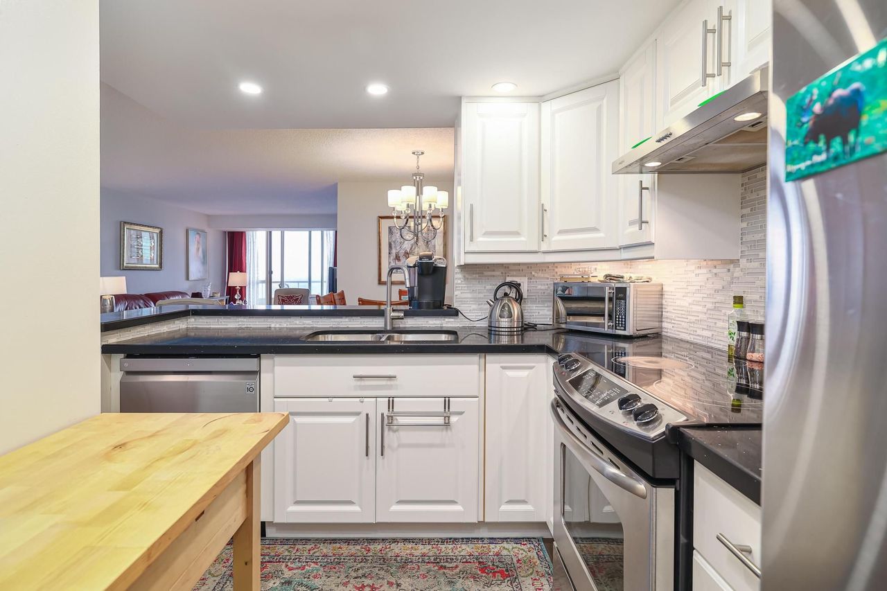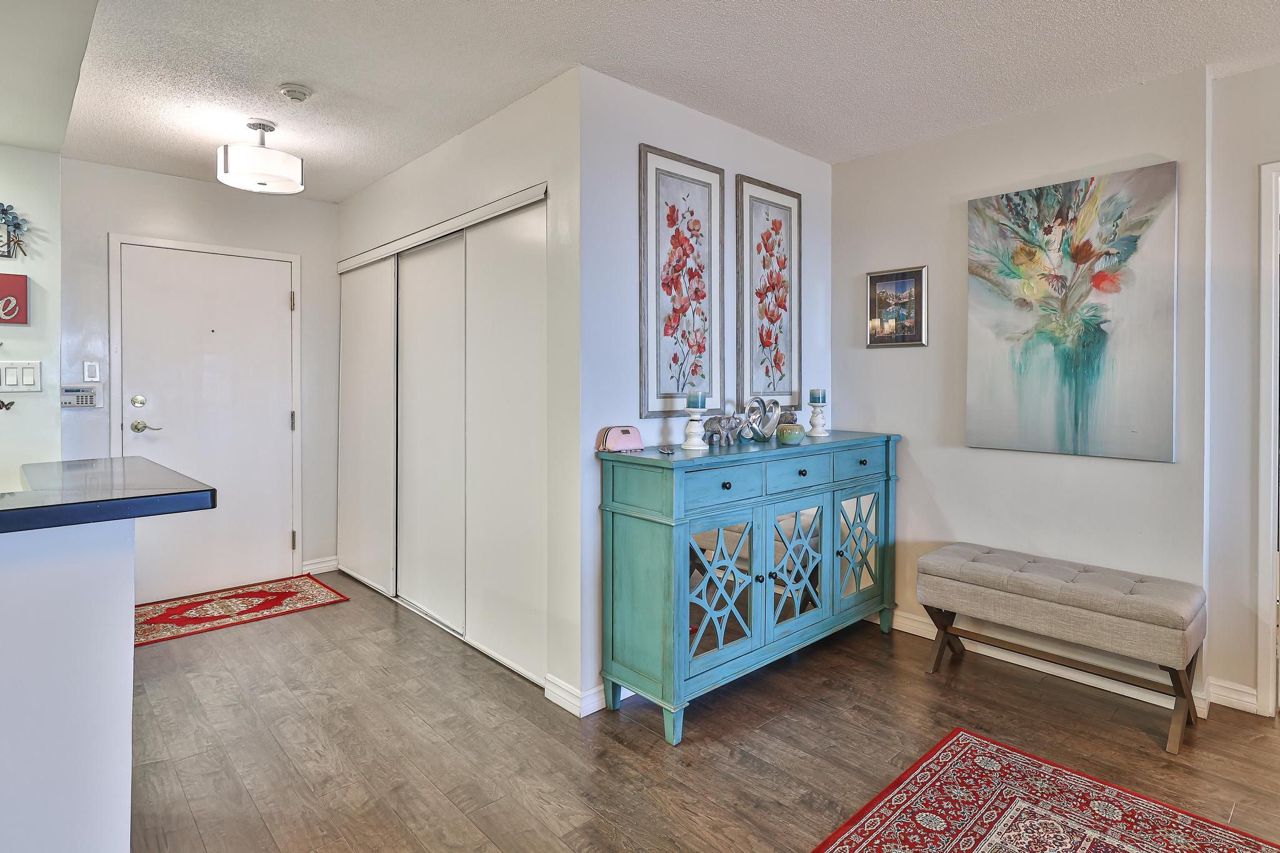 Welcome to this beautifully renovated 2 bedroom, 2 bathroom, 2 parking, 1locker condo unit that's now available for sale! Step into your new home and be greeted by a modern kitchen featuring a stylish backsplash and stainless steel appliances. The entire unit boasts beautiful laminate flooring, and the bathrooms have been upgraded with new tiles and vanities. With freshly painted walls and updated light fixtures, this condo is ready for you to move in and make it your own. One of the highlights of this condo is the private balcony that offers stunning views. Imagine sipping your morning coffee or unwinding in the evening with this scenic backdrop. Additionally, you'll have the convenience of two parking spaces and a locker. This luxury Savoy Condo is a rare find, boasting 1021 sq.ft. of living space and located on a high floor, ensuring unobstructed views. The large balcony provides breathtaking eastern views.Included in this condo are stainless steel appliances (fridge, stove as-is condition, and built-in dishwasher), washer and dryer, and all designer light fixtures. The maintenance fees cover all utilities, cable, internet, parking, locker.