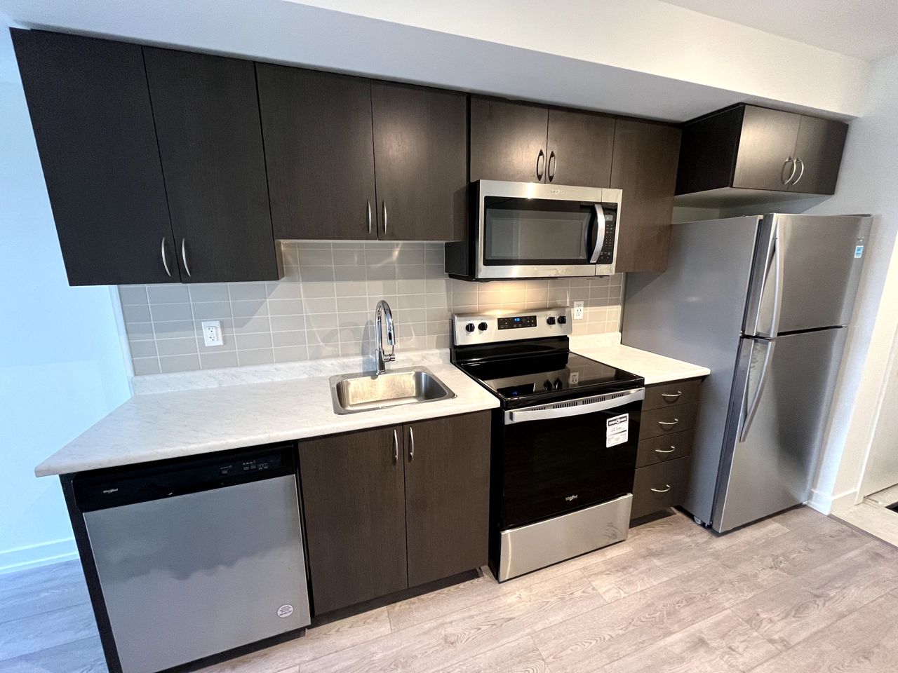 Bright and exquisite one-bedroom plus den layout! The Northeast exposure with balcony ensures great views and ample natural light throughout the day. Step inside and discover the well-thought-out layout that includes a den, perfect for a home office or additional living space. The addition of a pantry adds practicality to the unit, while the full bathroom adds convenience and comfort. Includes one parking space and one storage locker. Residents and guests will appreciate the visitor parking available, as well as the electric car charging stations. Need to get around? The nearby Weston GO Train Station is just a two-minute walk. Commute effortlessly to Union Station - only 18 minutes away, making travel convenient and hassle-free. For frequent flyers, the airport is a mere 15-minute journey! Enjoy over 3500 sq.ft of indoor amenities including a gym and party room. With a Walk Score of 86/100, daily errands are a breeze. An assignment at The Humber Condos, where your lifestyle awaits!Upgraded Premium flooring, Whirlpool Fridge, Stove, Dishwasher and Microwave, upgraded backsplash and USB outlets.