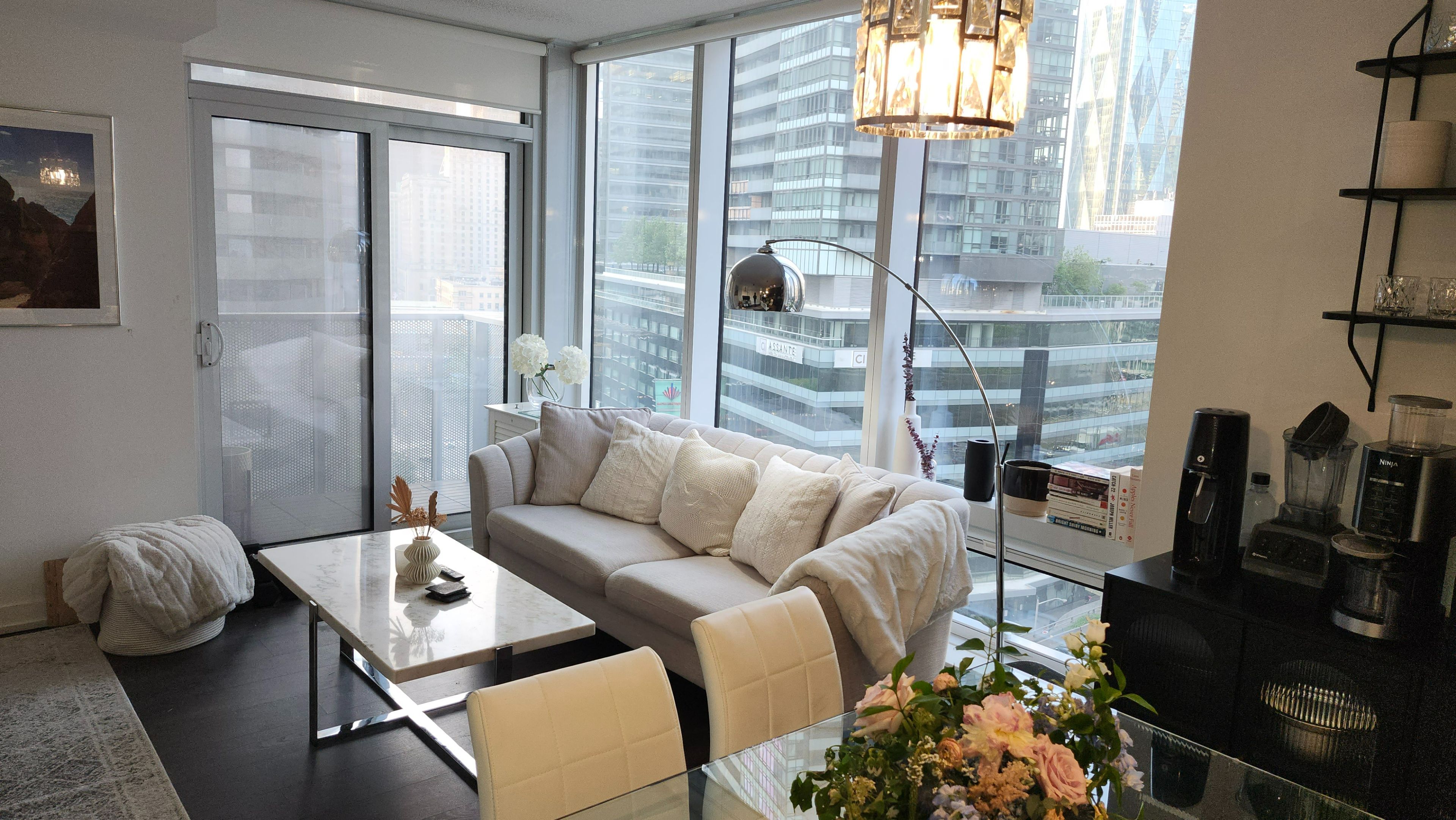 Welcome to 10 York St, a luxury Tridel condo in the heart of downtown Toronto! This bright and spacious unit, one of the LARGER 2-bed + 2-WR units, offers modern urban living with an open concept layout. The stylish kitchen features a sleek backsplash and quartz countertops, perfect for cooking and entertaining. The main bathroom includes a modern standing shower, and the primary bedroom has a walk-in closet. Enjoy the convenience of large windows that fill the space with natural light and a private balcony with amazing views of the city. Live with peace of mind thanks to advanced security, including keyless entry, 24/7 concierge, security cameras, NFC entry, and digital number pads. Ten York is one of Toronto's first fully smart buildings, making life easy and secure with the latest technology. This unit comes with owned underground parking. Amenities: fitness center, guest suites, theater, party & game room, Shore Club Spa, spin studio, sun deck, reflective pool, and sauna.This unit is currently occupied by excellent, professional tenants who have always paid their rent on time. They are very responsible and take great care of the property. If you are an investor or looking for trustworthy tenants, they are happy to stay in the unit after the sale