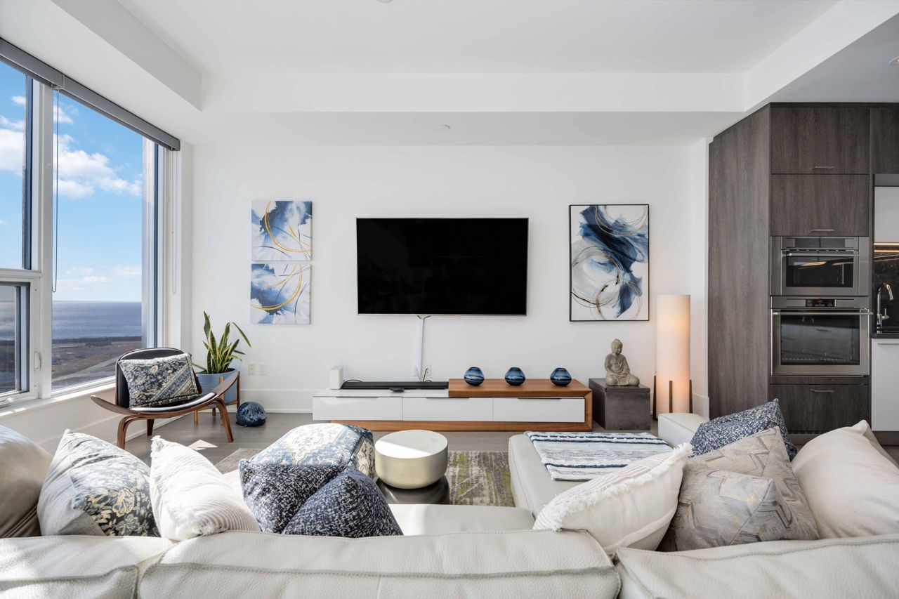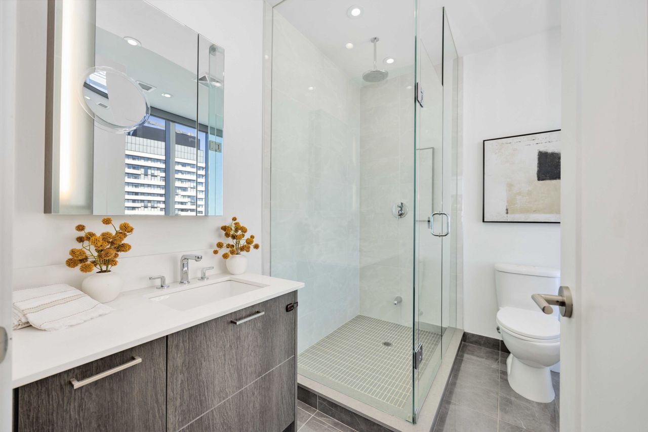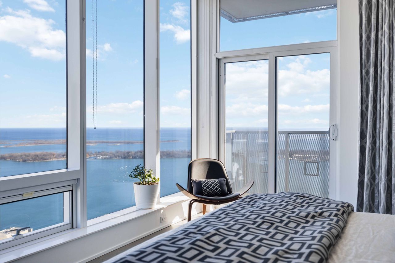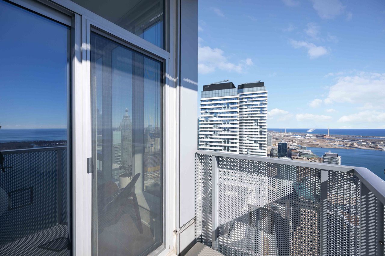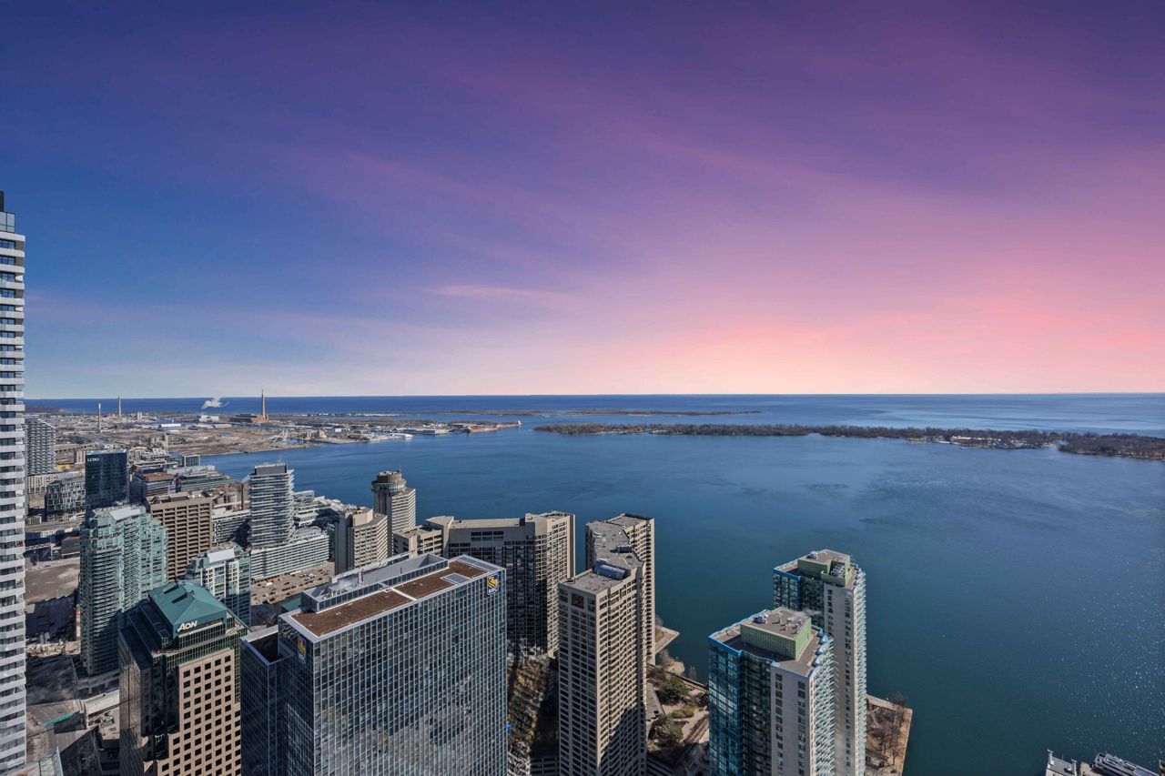 Indulge in the pinnacle of sophisticated urban living with this exquisite 1687 sqft unit boasting 270-degree panoramic views of Lake Ontario. This residence offers unparalleled luxury, state-of-the-art amenities, and a prime location that exemplifies the essence of cosmopolitan living. This property boasts lofty 10 ft ceilings, floor-to-ceiling windows, open-concept layout, kitchen w/ modern built in appliances, marble countertops & backsplash. Retreat to the primary bedroom w/ 2 closets, including an oversized walk-in closet & w/o to balcony. The freestanding tub & heated floor awaits in your primary ensuite. Spacious second bedroom contains a modern ensuite. Large den features exquisite built ins & can serve as a third bedroom or home office. Enjoy the two side by side parking spots along with a private, large storage room. This is a rare chance to immerse yourself in the epitome of urban sophistication. Don't miss out on the chance to make this extraordinary property your new home.Cutting-edge amenities: keyless access, 24 hr security, visitor parking, steps to waterfront, full size gym, The Shore Club, sauna, spa, theater, spin class, yoga room, outdoor pool w/ cabanas, 2 executive party rooms, guest suites & more!