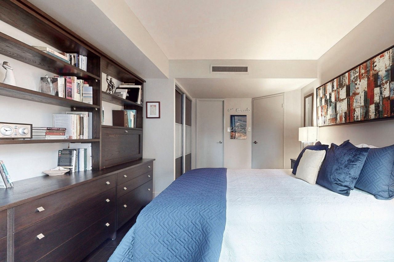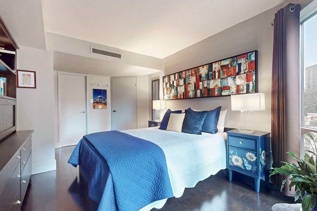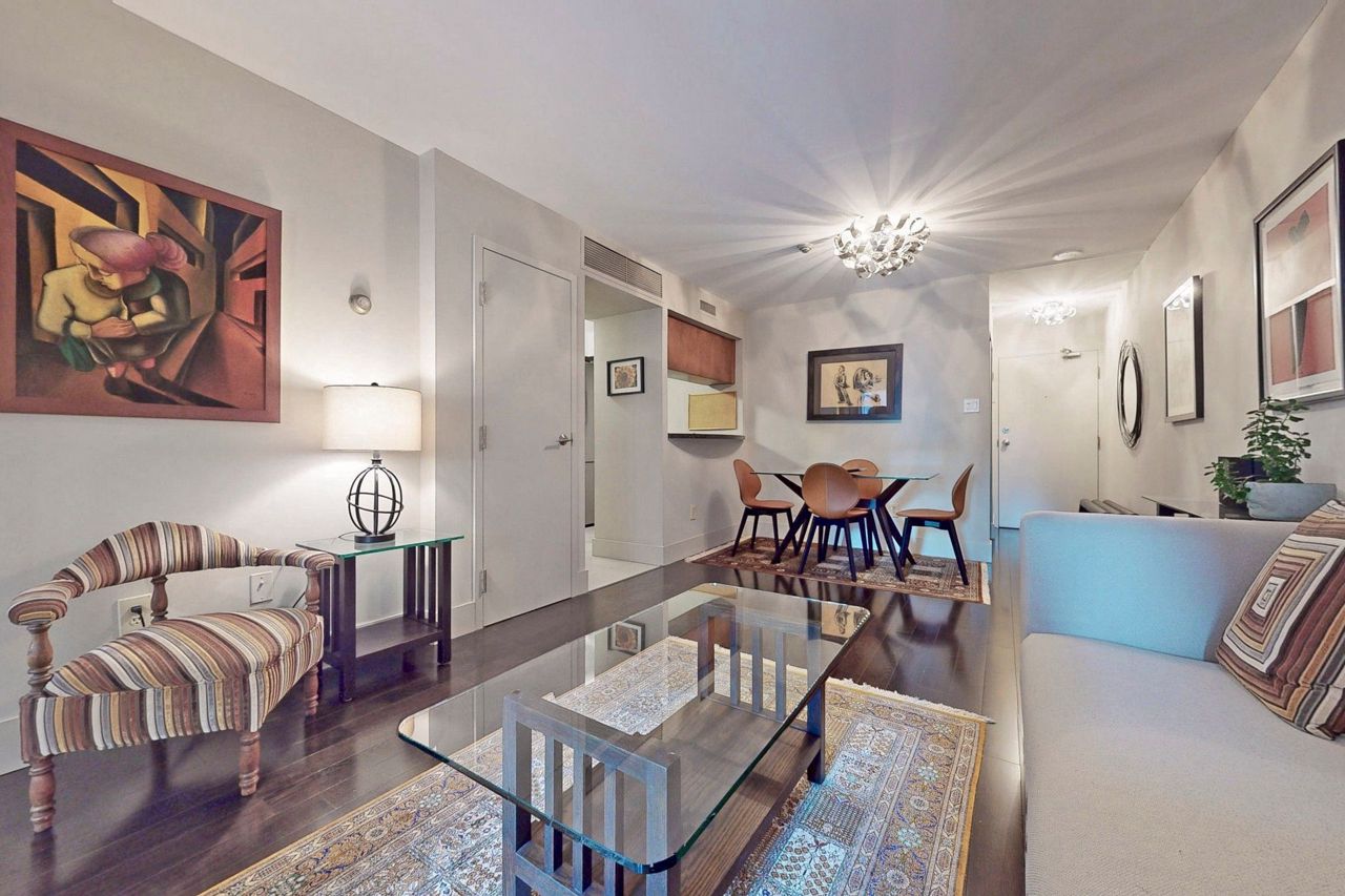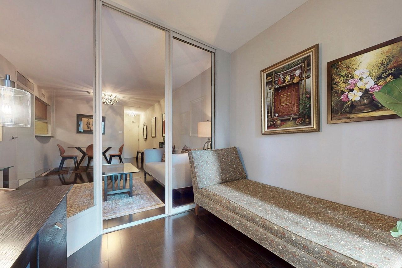 Stunning and Updated 1 Bed + Den In Prestigious 1001 Bay St! Enter the Elegant Lobby and be welcomed by friendly concierges. Spacious 671 Sq Ft 1 bedroom + den offers a very versatile space : foyer, kitchen with large pantry, huge primary bedroom with room to soak up the morning sun and enjoy a morning coffee; double closets (with custom built-ins), solarium/den that is perfect for work-from-home/2nd bed, updated bathroom and a living space that is perfect for both lounging and dining (room for a 6-seater dining table!). Quiet, South-East Views. You cannot find a more usable floor plan! Impeccable, move-in condition.