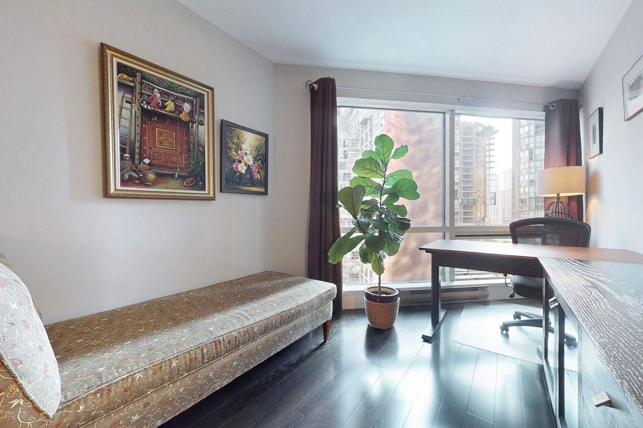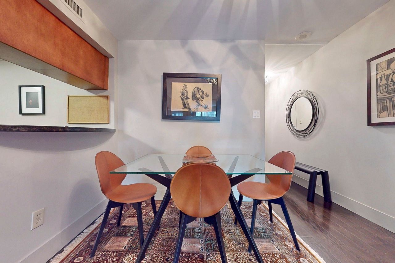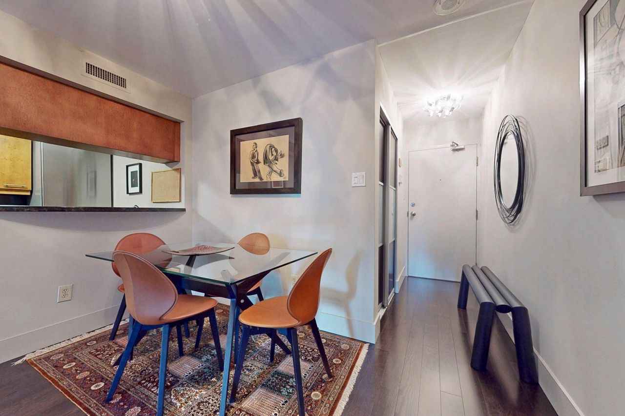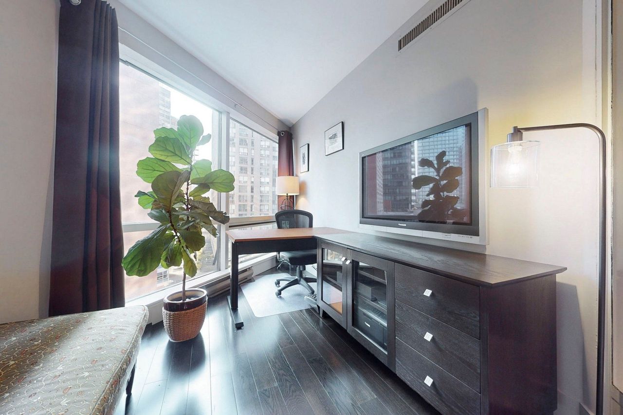 Stunning and Updated 1 Bed + Den In Prestigious 1001 Bay St! Enter the Elegant Lobby and be welcomed by friendly concierges. Spacious 671 Sq Ft 1 bedroom + den offers a very versatile space : foyer, kitchen with large pantry, huge primary bedroom with room to soak up the morning sun and enjoy a morning coffee; double closets (with custom built-ins), solarium/den that is perfect for work-from-home/2nd bed, updated bathroom and a living space that is perfect for both lounging and dining (room for a 6-seater dining table!). Quiet, South-East Views. You cannot find a more usable floor plan! Impeccable, move-in condition.