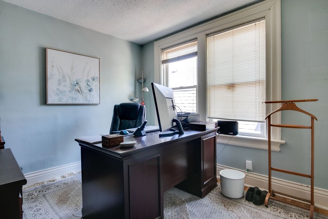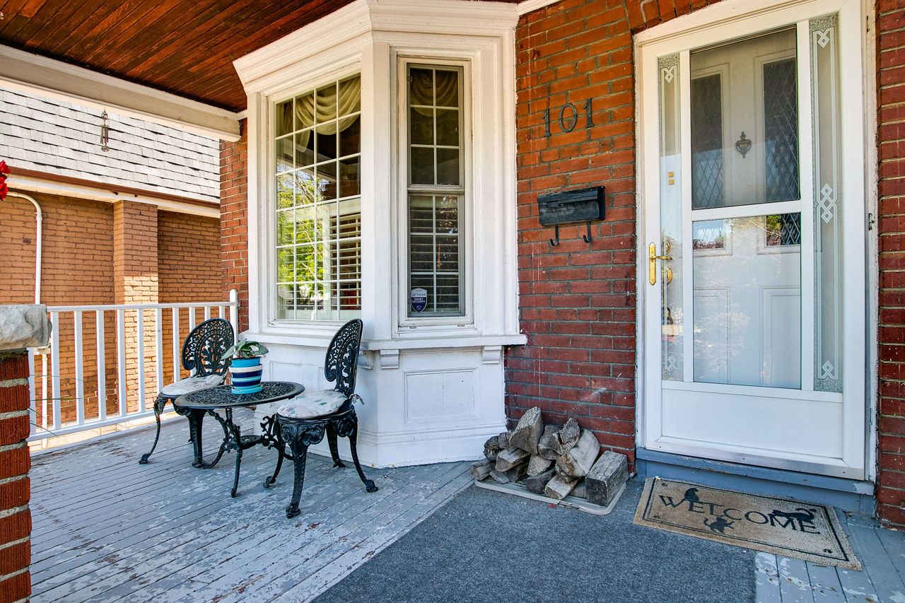 This solid detached brick house is situated on a south-facing lot with a mature private backyard. The home exudes character & invites you to make it your own. The large principal rms offer versatility & plenty of space to entertain friends/family. The bright eat-in kitchen features a convenient island & a w/o to the back deck, allowing for seamless indoor-outdoor living. The 3rd flr loft extends the living space as an entertainment rm that has Primary suite potential. The basement is ready for maximizing with its w/o to the backyard & very large windows. Take a moment to unwind on the front porch & witness the world passing by in this friendly neighbourhood. Conveniently located near cafes, restaurants, shops, Lake Ontario parks, beaches, & trails. Fast access to Humber College, Downtown, Financial District, Sherway Gardens, highways, & Pearson. Don't miss out on the opportunity to create lasting memories in this inviting & well-located home that you can enjoy now & improve over time!Black GE Fridge, S/S Jenn-Air Oven+gas cooktop, Black Manual Bosch Dishwasher (As-Is), Black B/I Kitchenaid Microwave, White Inglis top load washer, White GE front load dryer. Owned Furnace