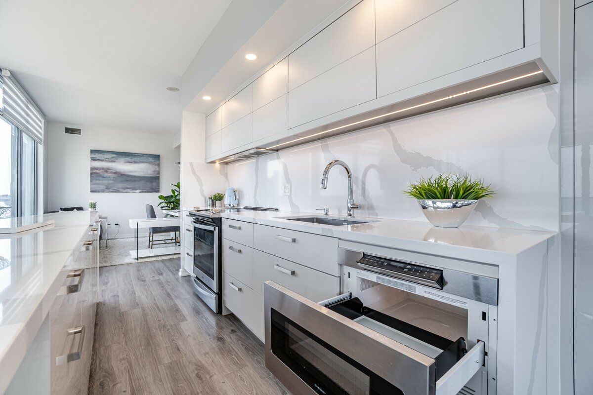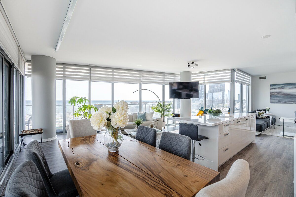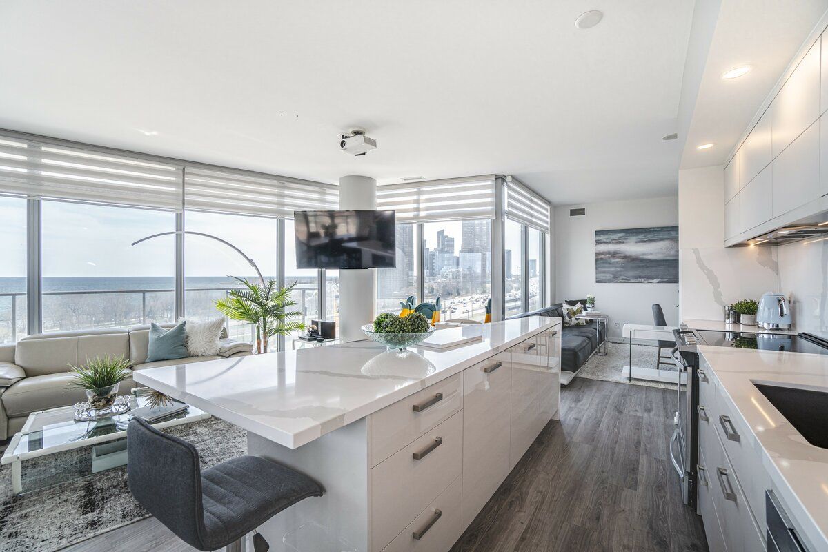 Rarely Offered, Luxurious 1144 Sqft, 2+1 Bed/2 Bath Corner Suite With Wrap-Around 377 Sqft Extra-Large Balcony That Has Unobstructed Lake Views, Skyline Views And High Park Views - Wow!! The Open Concept Floorplan Is The Ultimate Entertainers' Dream With 9' Ceilings, Hardwood Flooring, Floor-To-Ceiling Windows For Tons Of Natural Light & A Breathtaking Chef's Kitchen That Was Completely Re-Imagined And Renovated By Prestigious Cameo Kitchens. Top-Of-The-Line Finishes Include: Custom Waterfall Caesarstone Island W/ Seating, Custom Cabinetry, Caesarstone Backsplash, Undermount Lighting & Sink, All Newer Ss Appliances, Hideaway Microwave Drawer,