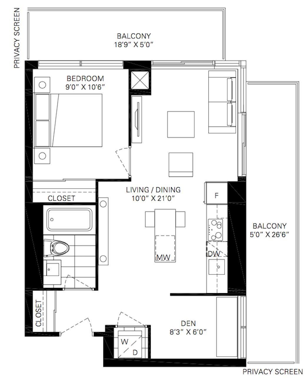 Rare 1+den corner unit in DNA3. Walk to everything in King West, Liberty Village and Queen West. 2 massive balconies, one with north exposure, one with east exposure and CN tower views. Work from home in your incredible den with east facing window. Zero wasted space in this incredible layout. 9' ceilings. Parking and locker included.Grocery store in the base of the building. full gym & yoga studio, rooftop patio, rain room, concierge, party room and more.