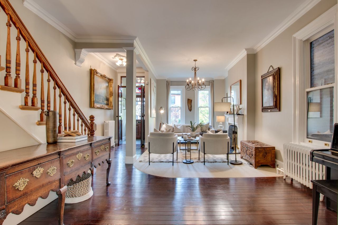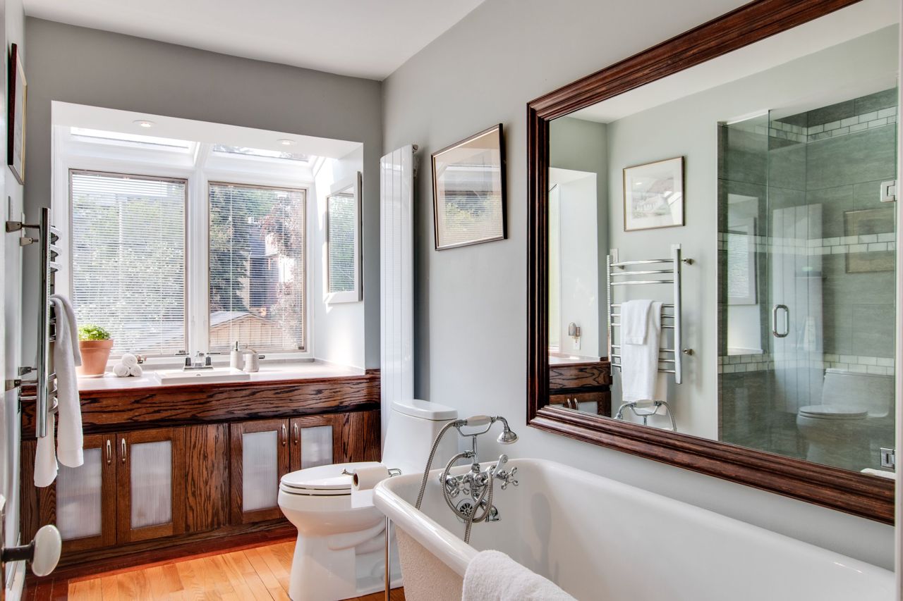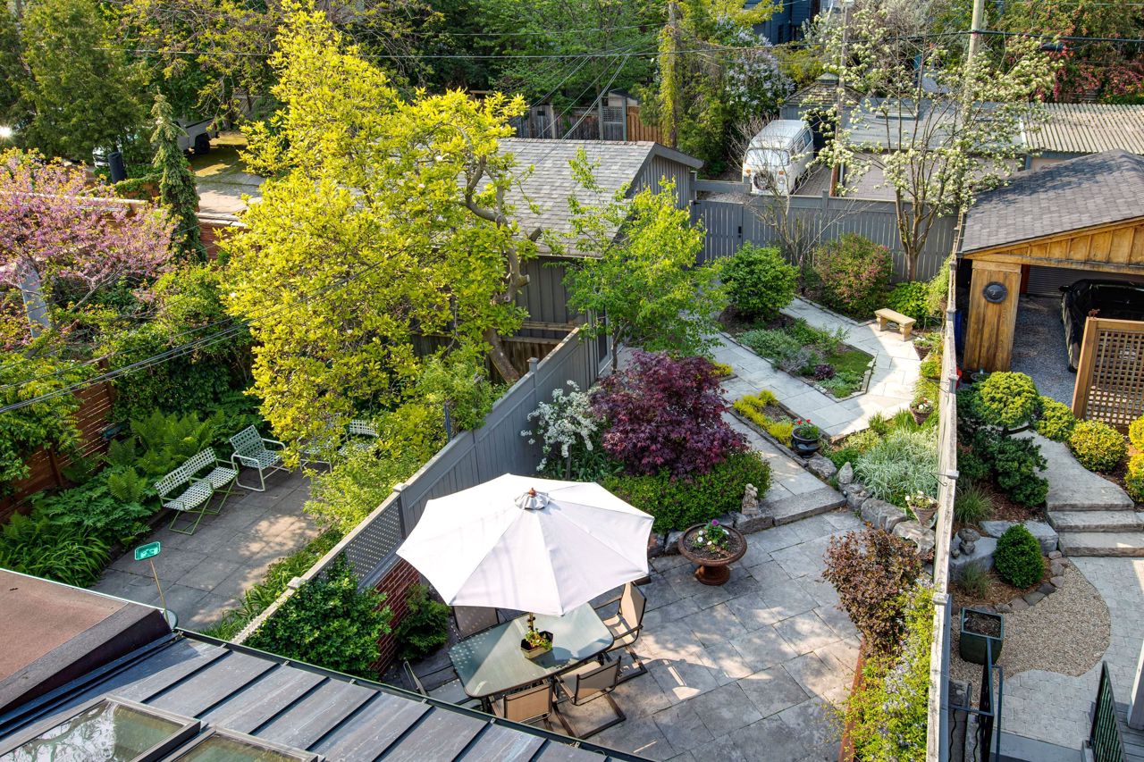 Handsome renovated large 3-storey Cabbagetown Victorian blends original period details w/modern updates located on highly sought-after Amelia St. Extremely rare extra-large L-shaped backyard w/massive detached garage w/2-car parking + loads of storage! Laneway House Development Potential! Elegant formal living/dining rms. Hardwood floors, soaring ceilings, crown mouldings, ceiling medallions, stained glass windows, working fireplace, eat-in kitchen w/pantry/closet, main flr powder room. Main floor sun-drenched family room w/multiple skylights, gas woodstove & w/o to manicured landscaped gardens. Primary suite w/ 4-pc ensuite sep shower & soaker tub. Large 2nd bed & sunny 4-pc family bath w/sep shower, cast-iron claw foot soaker tub & bay window. Large 3rd floor bed has w/o to rooftop deck w/sweeping treetop views. Finished bsmt high ceilings, wine cellar, media rm, gym & office space + large workshop! Close to best neighbourhood shops, cafés, restos & TTC just steps to Riverdale Farm.Fully restored front façade w/crisp red & yellow brick, gingerbread, sunroom copper roof, copper troughs & gutters, slate comp roof, Hepburn professional landscaping, cedar walls & deck, 200 Amp to panel. See Sched D for list of Incl/Excl