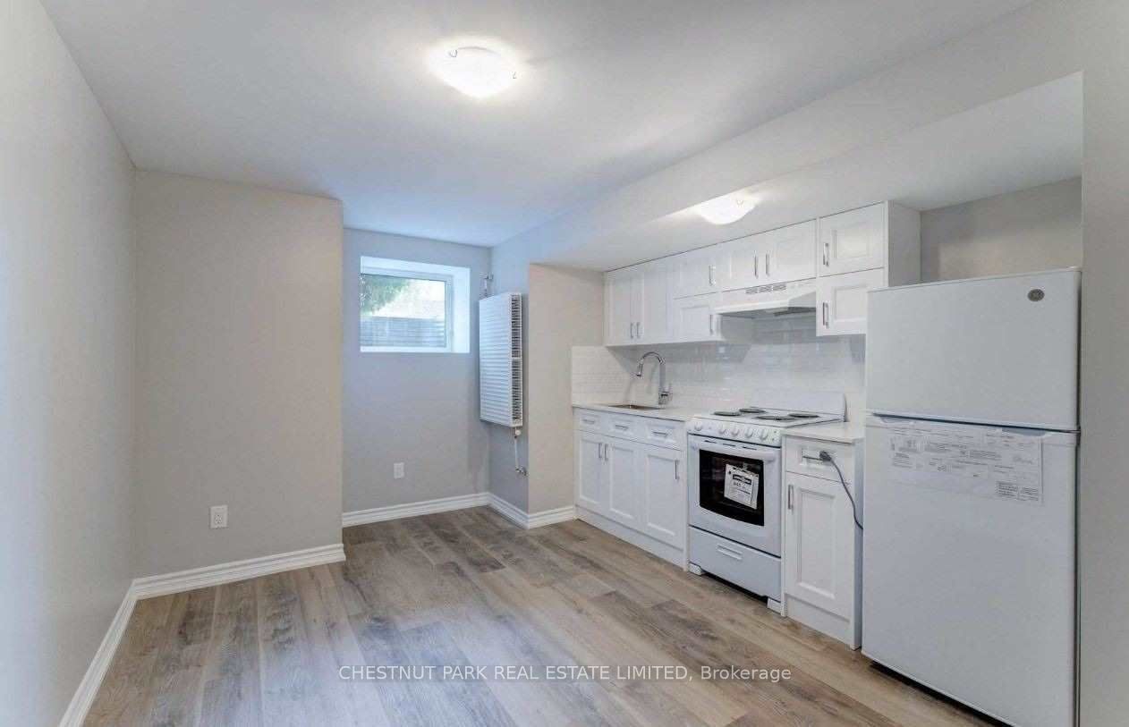 Discover a charming 650 sq ft 2 bedroom basement apartment, available immediately. This inviting space features two spacious bedrooms and a full bathroom with a shower and bathtub combo. The kitchen is equipped with essential appliances including a stove and fridge, complemented by the convenience of an in-suite washer and dryer. Included in your rent are several utilities such as water, sewage, and garbage collection, which simplifies your monthly expenses. Nestled between Dufferin & Eglinton, the apartment is ideally located just a 7-minute walk from the Eglinton West Subway Station on Line 1, and near the upcoming Oakwood LRT station. This prime location offers easy access to grocery stores, parks, Shoppers Drug Mart, Yorkdale Mall, and a variety of other essential amenities. Street parking is readily available with a permit. Please note, cable and internet services are not included, offering you the flexibility to choose your preferred provider. Step into comfort and convenience in this ideally situated home, perfect for those looking to enjoy everything the area has to offer.Tenant pays 1/2 gas bill and 1/2 hydro bill shared with upstairs. Pays own Wifi.