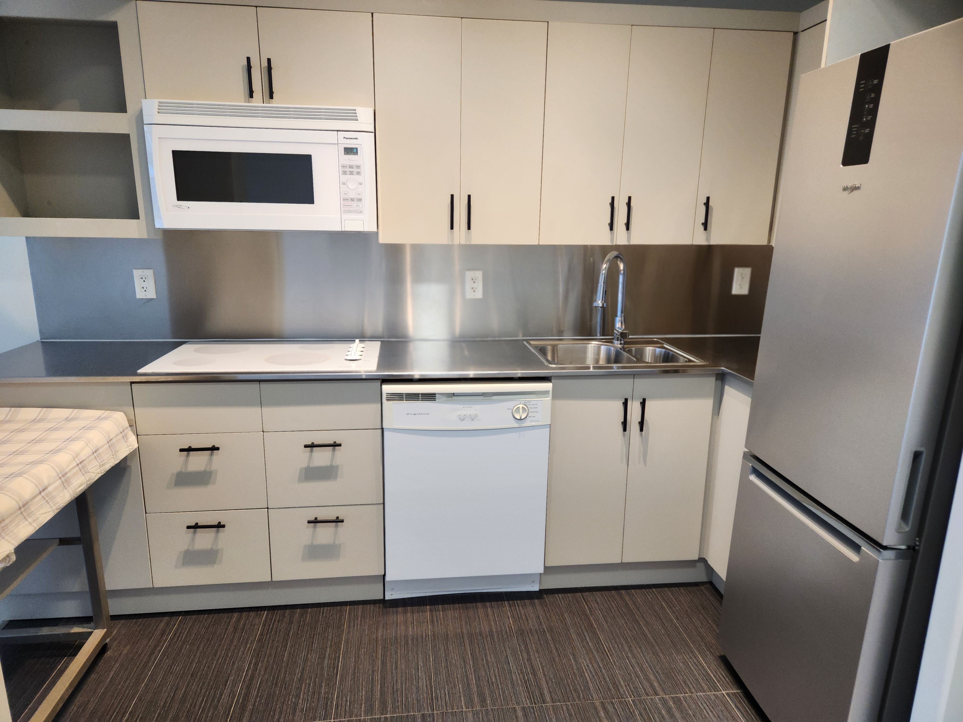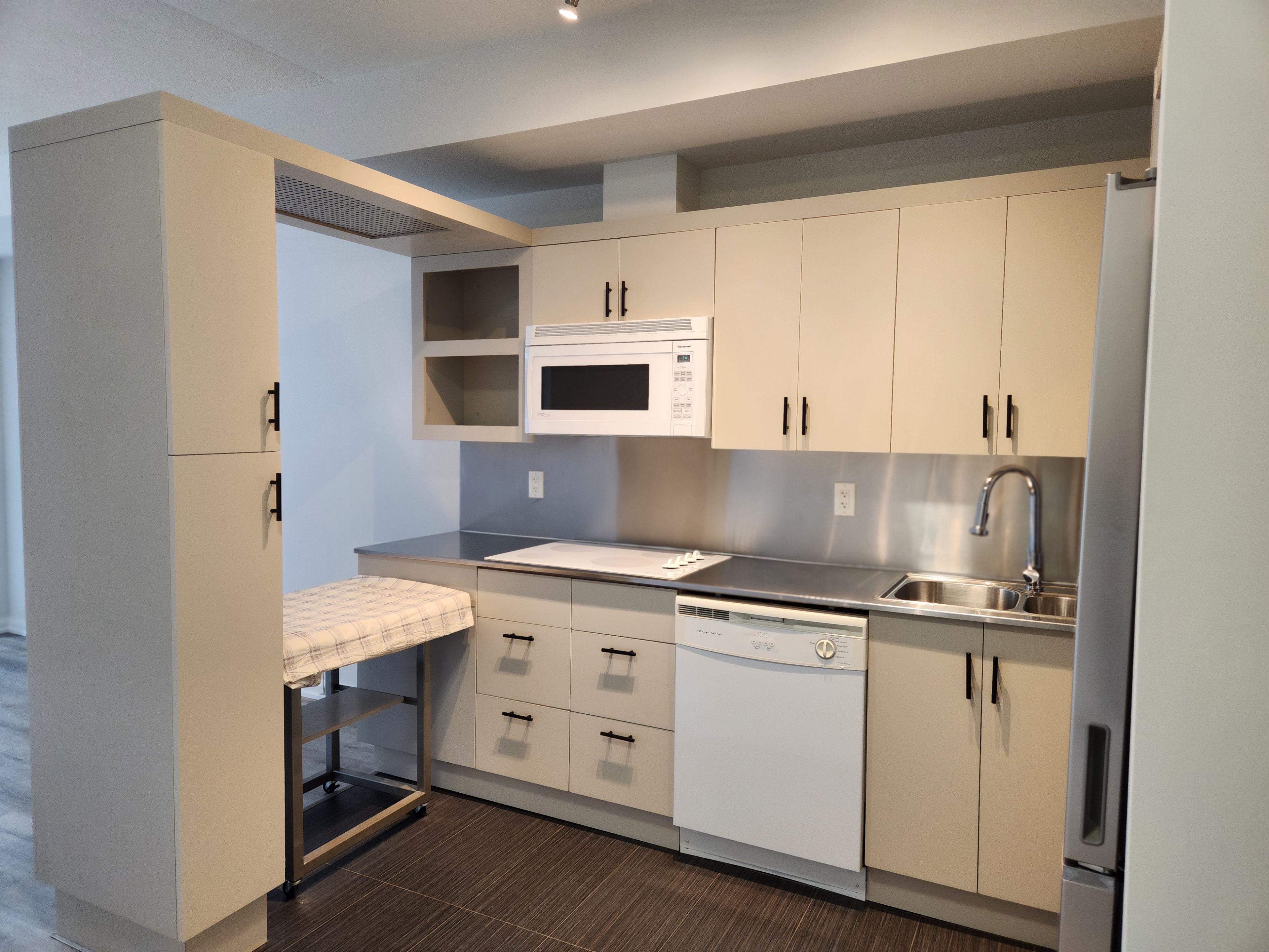 Approx. 425 Sf, One Locker (P4-139) And One Parking (Level 4-247) Included, Tenant Pays Own Hydro. $100 Refundable Key Deposit. Moving-In Condo Costs $125. Convenient Location.Fridge, Stove, Washer & Dryer, Microwave, Stainless Steel Counter Top, Vertical Blinds, Wood Floor, 9' Ceiling, Renovated Cabinet, Freshly Painted, Very Clean Unit.