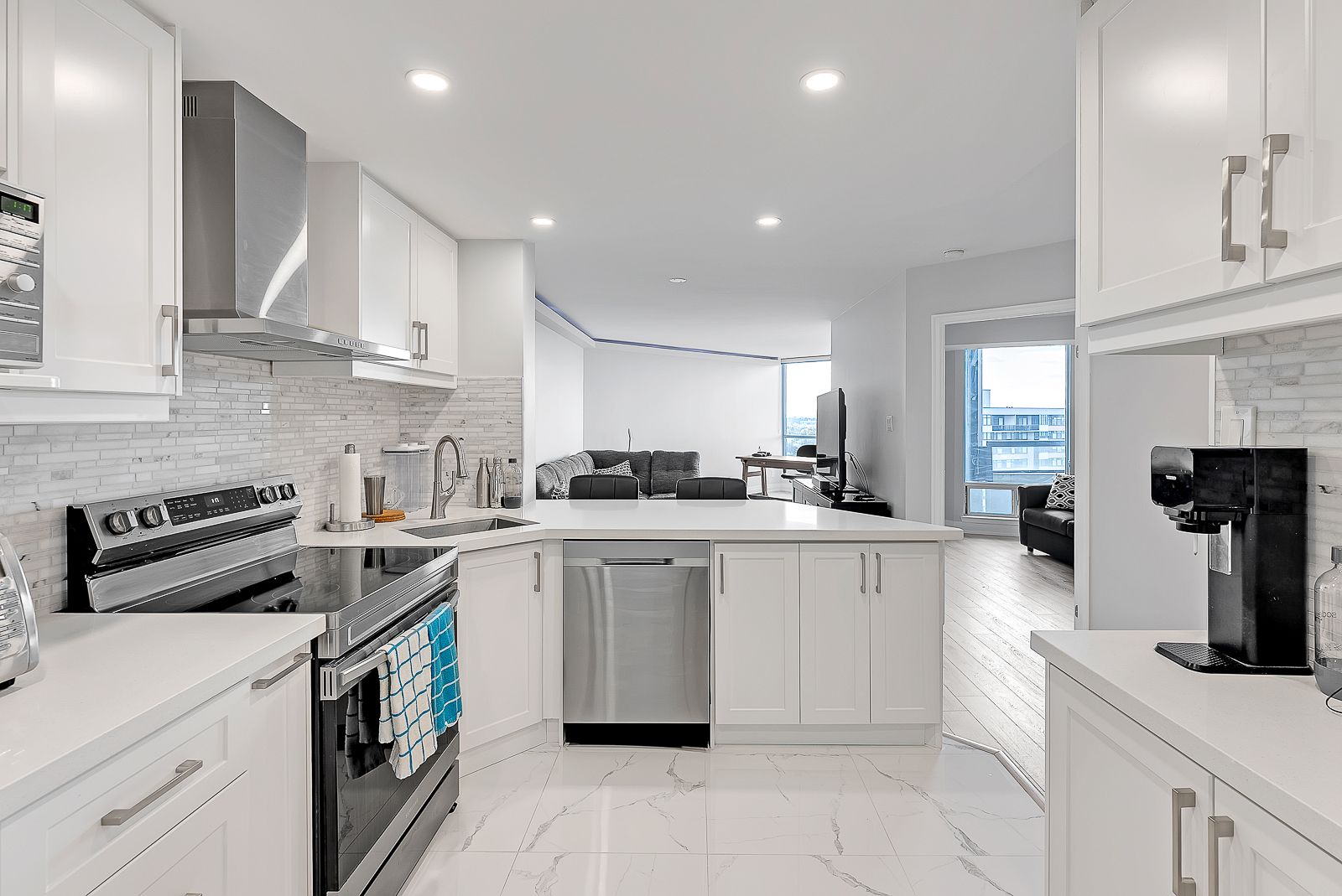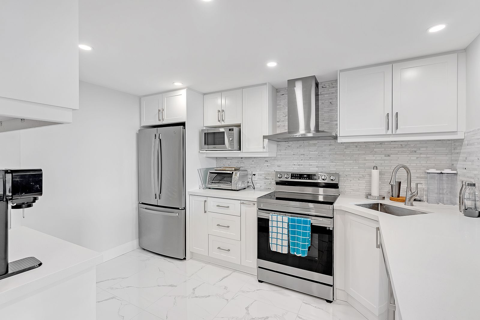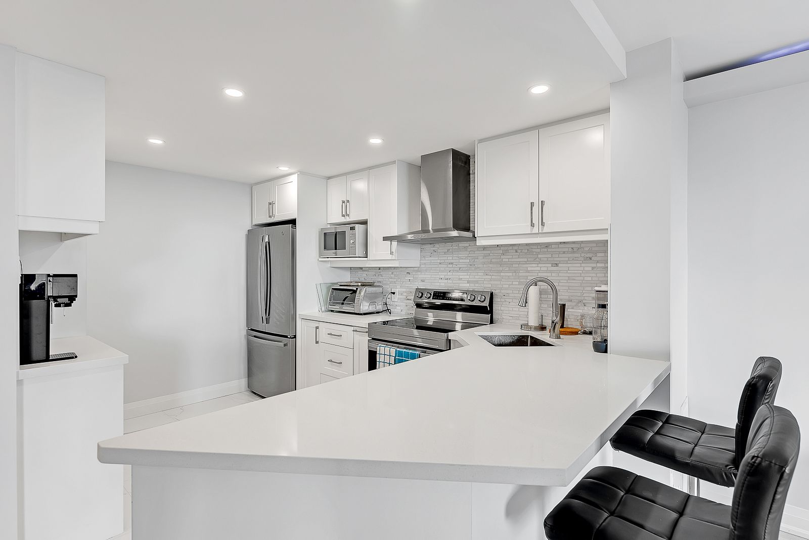 Quartz Countertops. Imported Austrian Laminate, New Blinds, Flat Ceilings with Pot Lights &