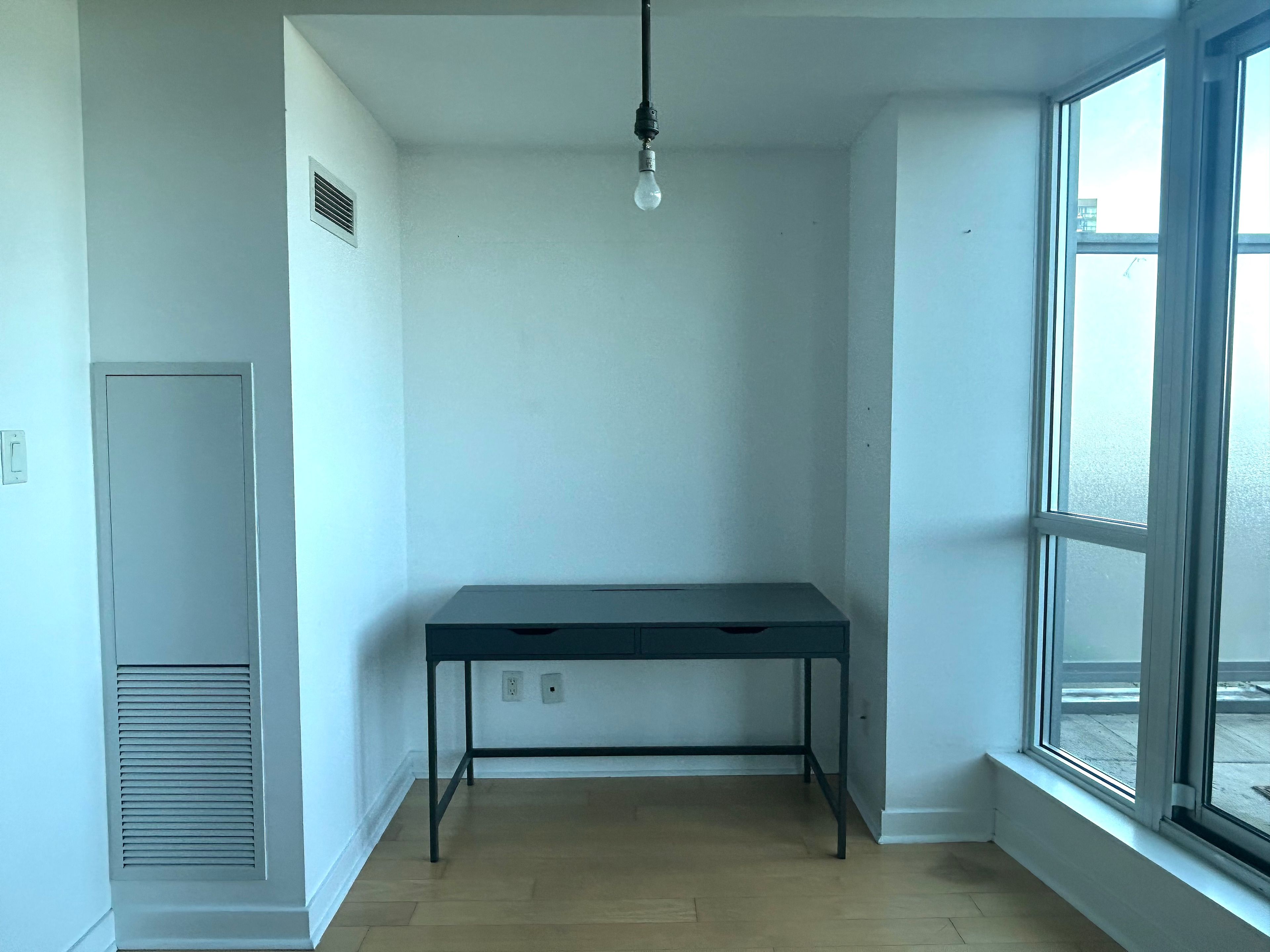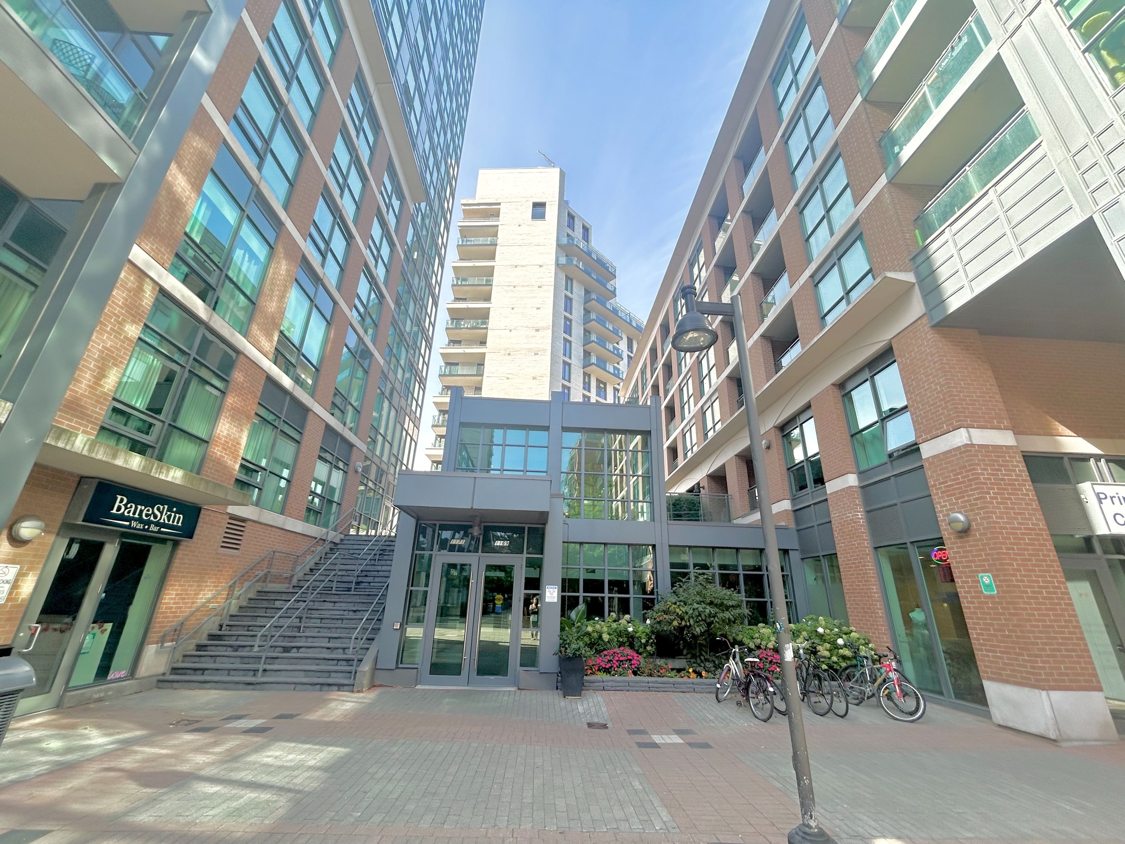 Welcome to Queen West's Bohemian Embassy, a 9 storey boutique condo with excellent amenities on one of the coolest ranked streets in the world. 900+ sqf of usable space, including a private 225sqf terrace over looking Queen St W. This beautiful open concept 1+Den is equipped with 9 foot ceilings, full size stainless steel appliances, hardwood flooring throughout, custom wall unit, built-in closet storage and master bedroom walk-in. Darke and Gladstone Hotel are your immediate neighbours with Liberty Village just south. A great location with an abundance of restaurants, coffee shops and shopping along Queen W, with Ossignton and Trinity Bellwoods park a short walk away.parking and locker included. Amenities include: fitness centre, party room, roof top deck, BBQ area, guest suite, 24 hour concierge