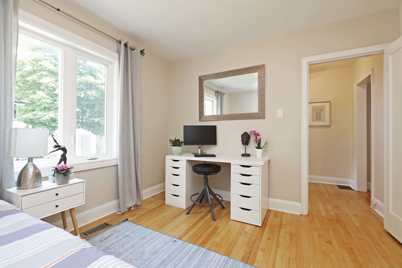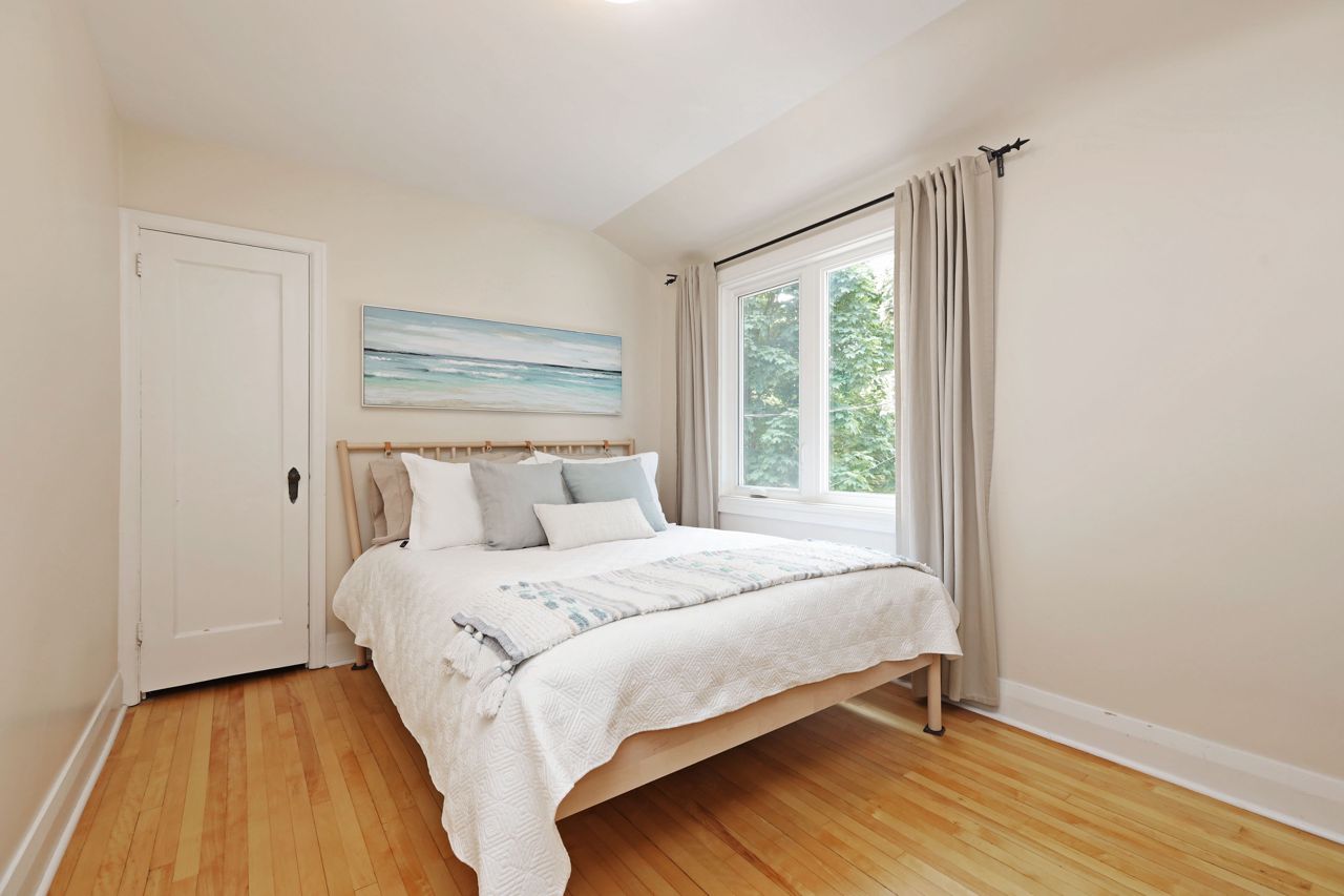 Welcome to one of the best kept secrets in the East End - Birchcliff Village! This sun drenched detached 1.5 storey home features 3 bedrooms - two very spacious bedrooms on the upper floor, and one main floor bedroom that could double as the home office you have been waiting for. Enjoy the beautiful, updated kitchen, hardwood floors throughout and flood of natural light from updated windows on a wide 40'x100' lot with a private driveway. Sparkling with pride of ownership throughout including the picturesque gardens, updated mechanics, new driveway and stone front walkway. Take a stroll down the street to Birchmount Community Centre with one of the best pools in the city, Walk along Kingston Rd with its ever growing list of shops and cafes, minutes to the waterfront and the Bluffs. At the end of the street is Birch Cliff PS which offers Early French Immersion. Move in and enjoy! Home Inspection. Open House Sat/Sun.The pretty in pink bedroom is the traditional primary bedroom, and all the bedrooms easily fit a queen sized bed! Home Inspection available. Public Open Houses Saturday/Sunday 2-4