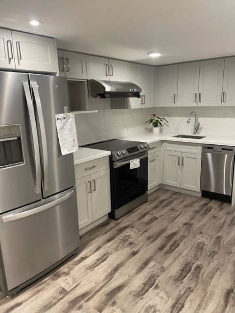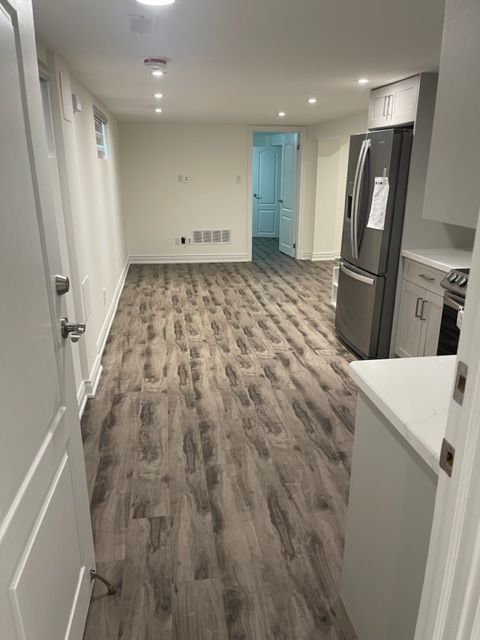 Completely renovated 2 bedroom basement apartment in prime Clairlea-Birchmount area. Features a brand new fully equipped kitchen with stainless steel appliances. Bright open concept layout with laminate flooring throughout. Both bedrooms have closets, windows, and are generous in size. Three piece bathroom contains a shower/bathtub combo. Shared (pay per use) laundry. Walking distance to Warden subway station, schools and easy access to DVP and Hwy 401.Fridge, stove and pay per use laundry. No pets, Non smokers. Street parking only (permit needed). Tenant responsible for 40% of utilities.