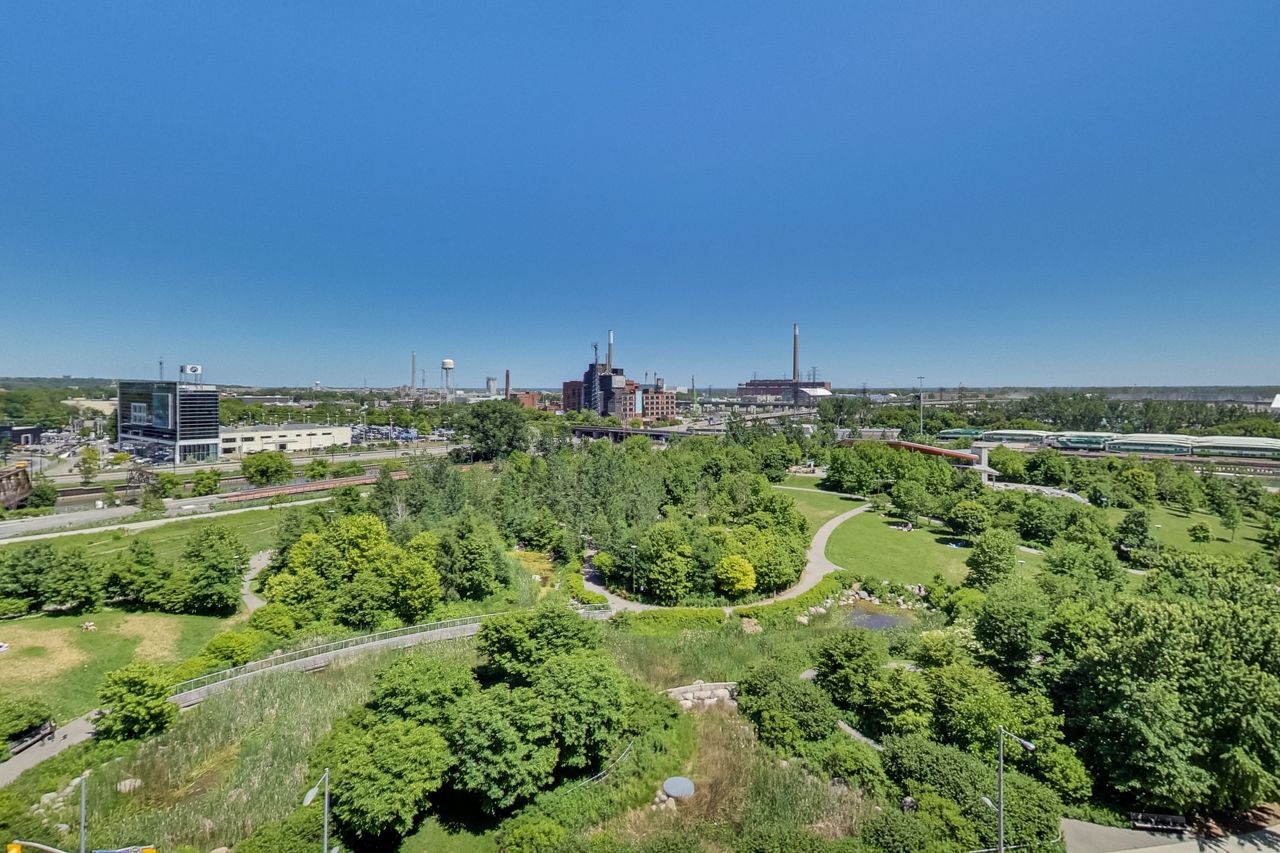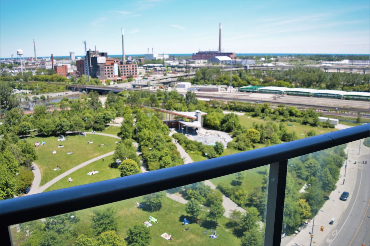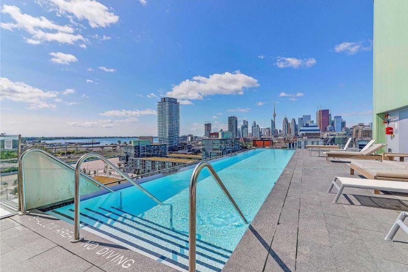Move Into This Rare Corner Unit with Wraparound Balcony Right Across Corktown Common. This unique 2-bed, 2-bath suite is bright and spacious. It features floor-to-ceiling windows with unobstructed views, generously proportioned bedrooms, and modern, high-end finishes throughout. The sleek kitchen boasts full-sized integrated appliances, quartz countertops, and a large island. The open-concept living and dining area flows seamlessly to a huge 269 sq ft balcony, offering the perfect blend of indoor-outdoor living. The primary suite includes a large closet and spa-inspired ensuite, while the second has a capacious walk-in closet. The building delivers exceptional amenities, including a 24-hour concierge, state-of-the-art fitness centre, yoga studio, party and media rooms, and an impressive rooftop pool and terrace with sweeping city and park views. Residents also enjoy guest suites, secure underground parking, bike storage, and elegant lounge areas all thoughtfully designed for comfort and lifestyle. Perfectly situated in the vibrant Canary District, you're just steps from Corktown Common Park, the Distillery District, shops, restaurants, and the scenic Don River Trail. With easy access to the TTC, Gardiner, DVP, and the upcoming Ontario Line, this home offers an unbeatable combination of urban convenience, natural surroundings, and a true community feel.