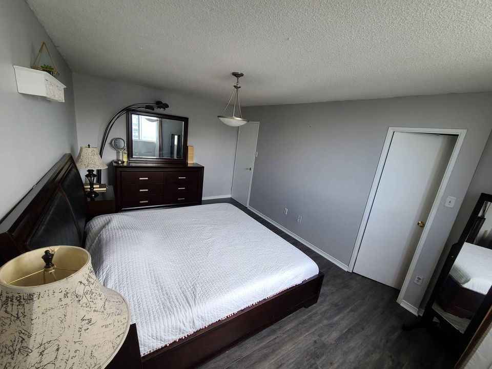 Great Location. Unfurnished. All Utilities Included. Bell fiber optic internet and TV cable is included. Renovated Spacious 2 Bedroom With Spacious Master Bedroom Comfortably Fitting A King Size Bed, 2 Night Tables, Dresser and More Space Left With a Walk-In Closet. Spacious Living Room. Ensuite Storage Space And Additional Big Storage Space Behind The Sliding Mirrors By Entrance Door. High floor with Large Balcony & Great View of Park and 401. Ensuite Laundry. New Ensuite Central AC/Heat Equipment.Fridge, Stove, Dishwasher, Dryer And Washer.