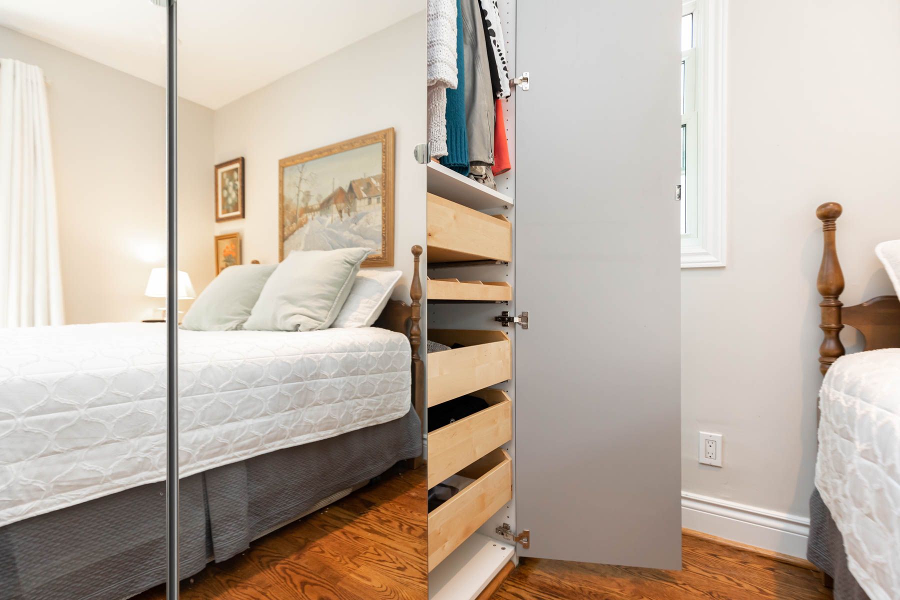 B/I Closet O/Looks Backyard Hardwood Floor