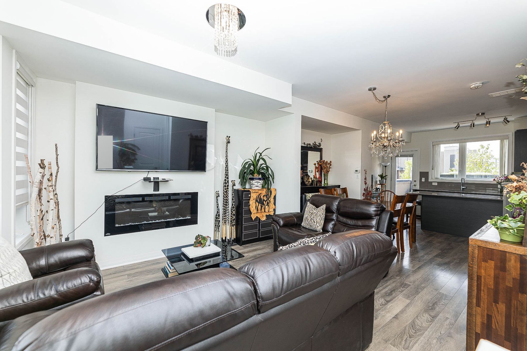 Hardwood Floor Electric Fireplace Large Window