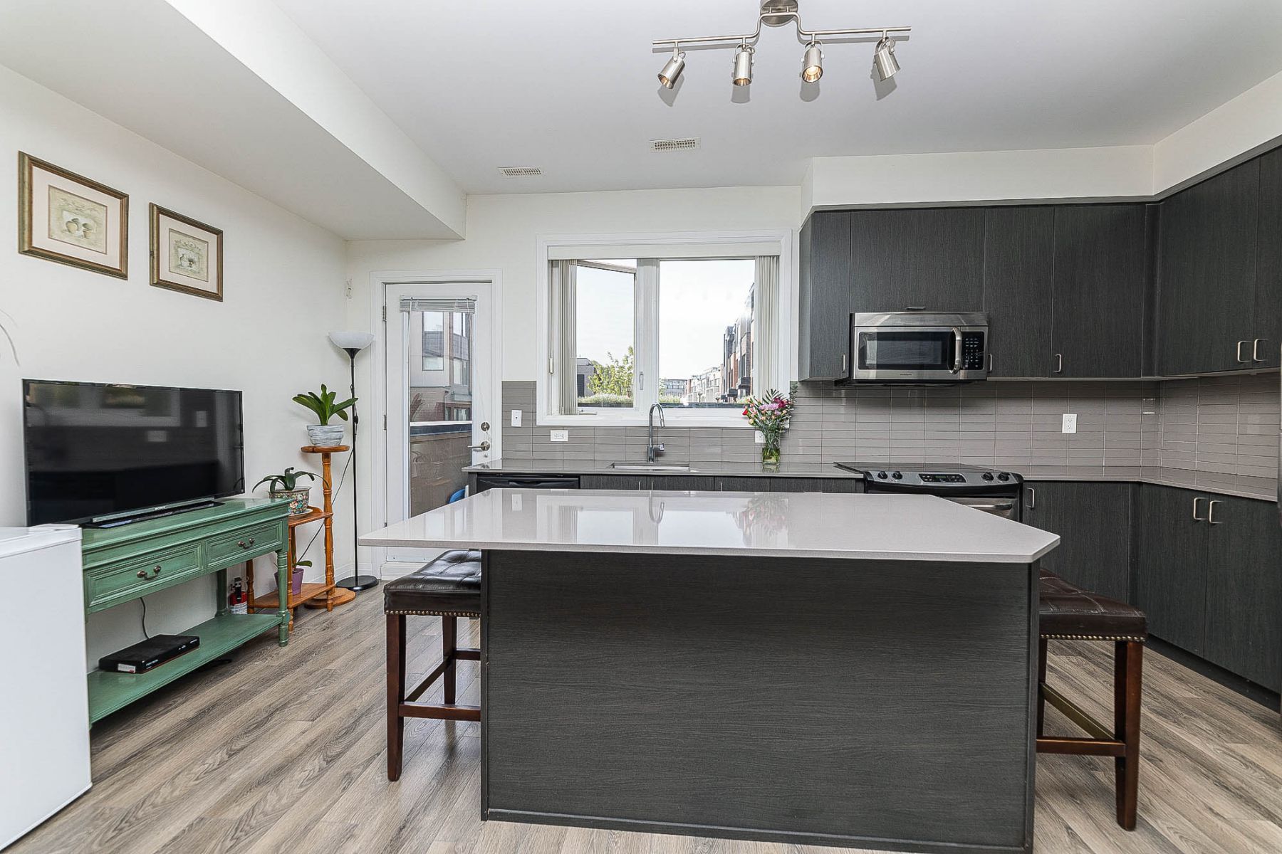 Open Concept Hardwood Floor Combined W/Kitchen