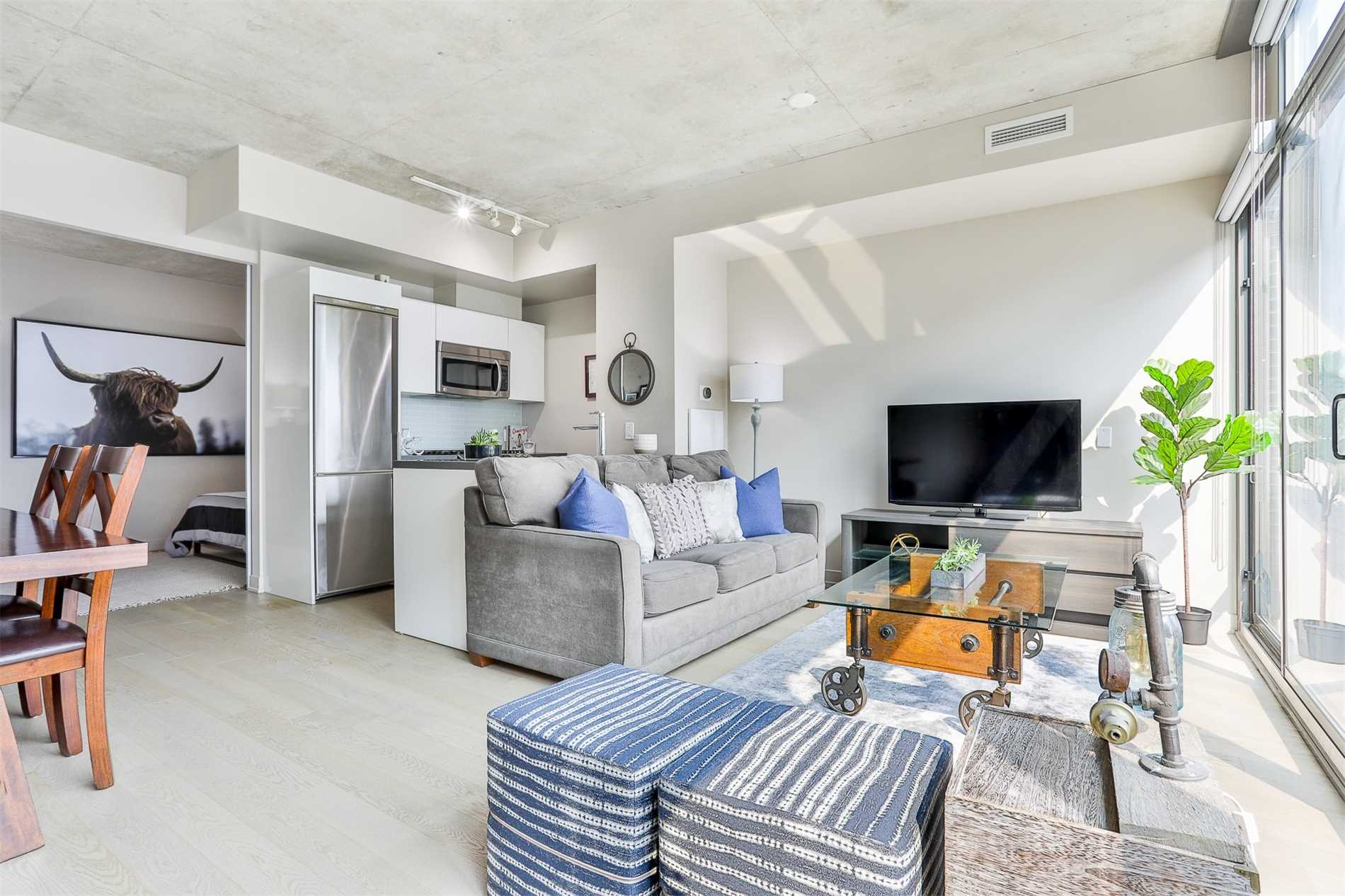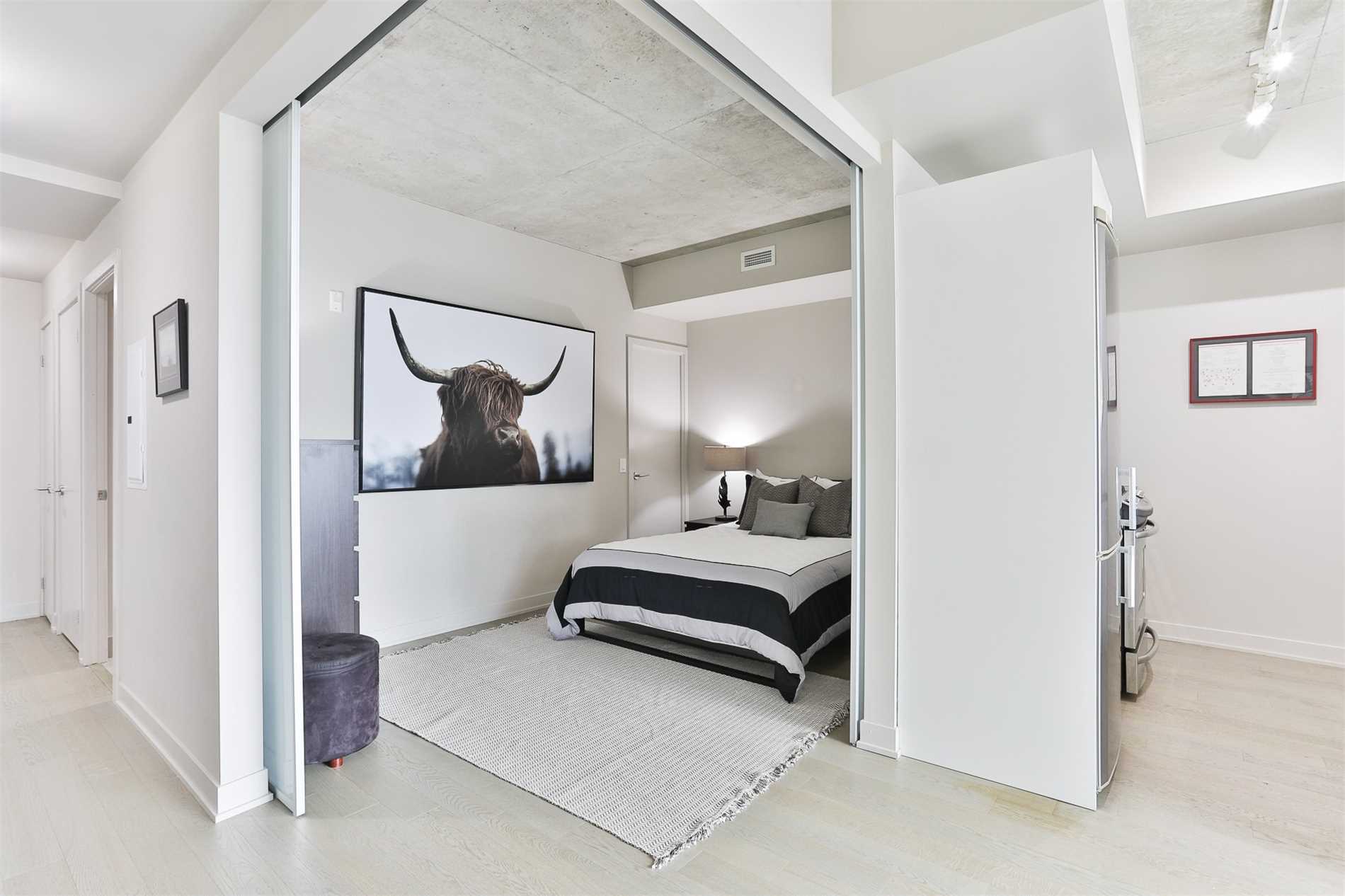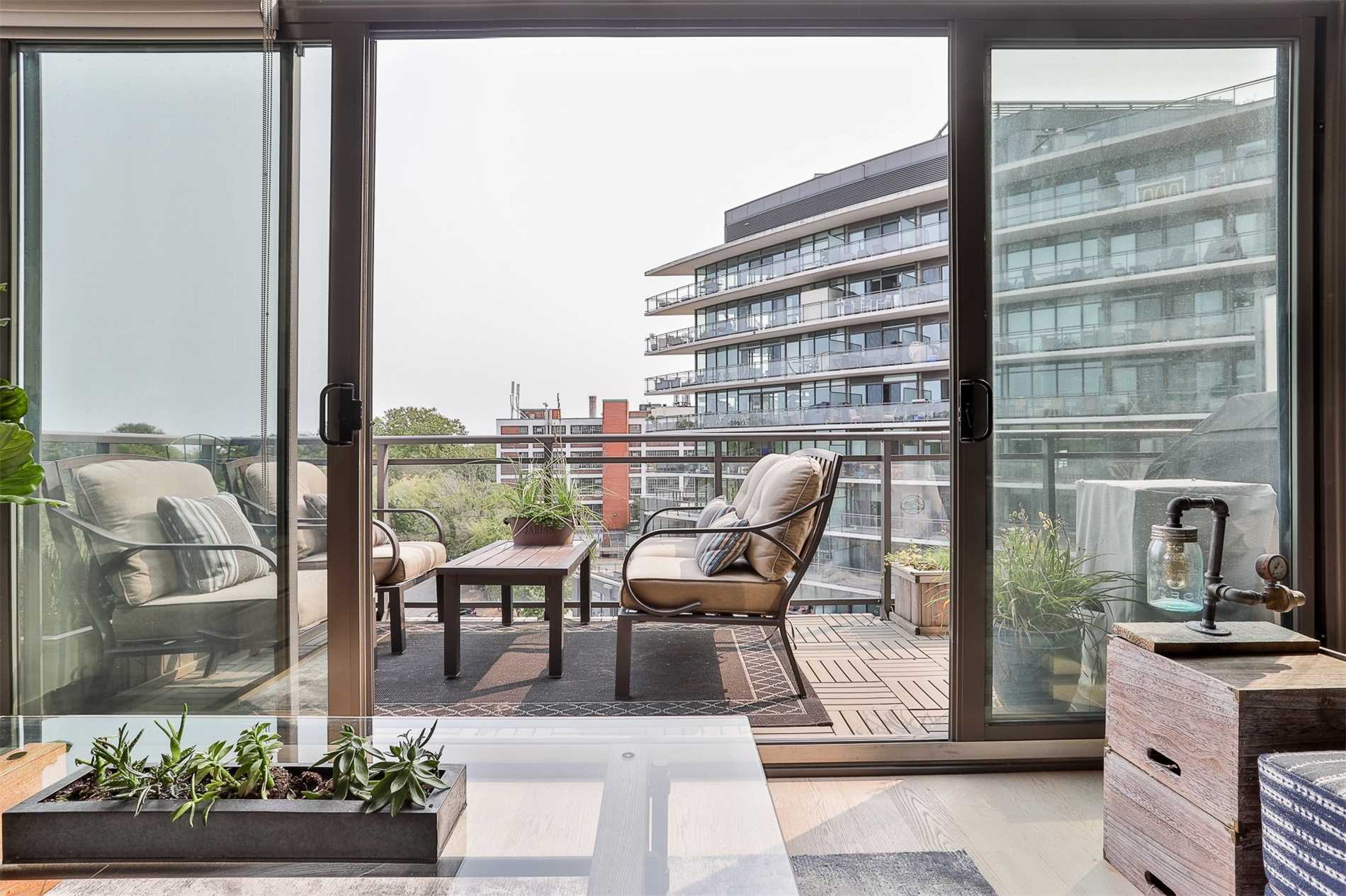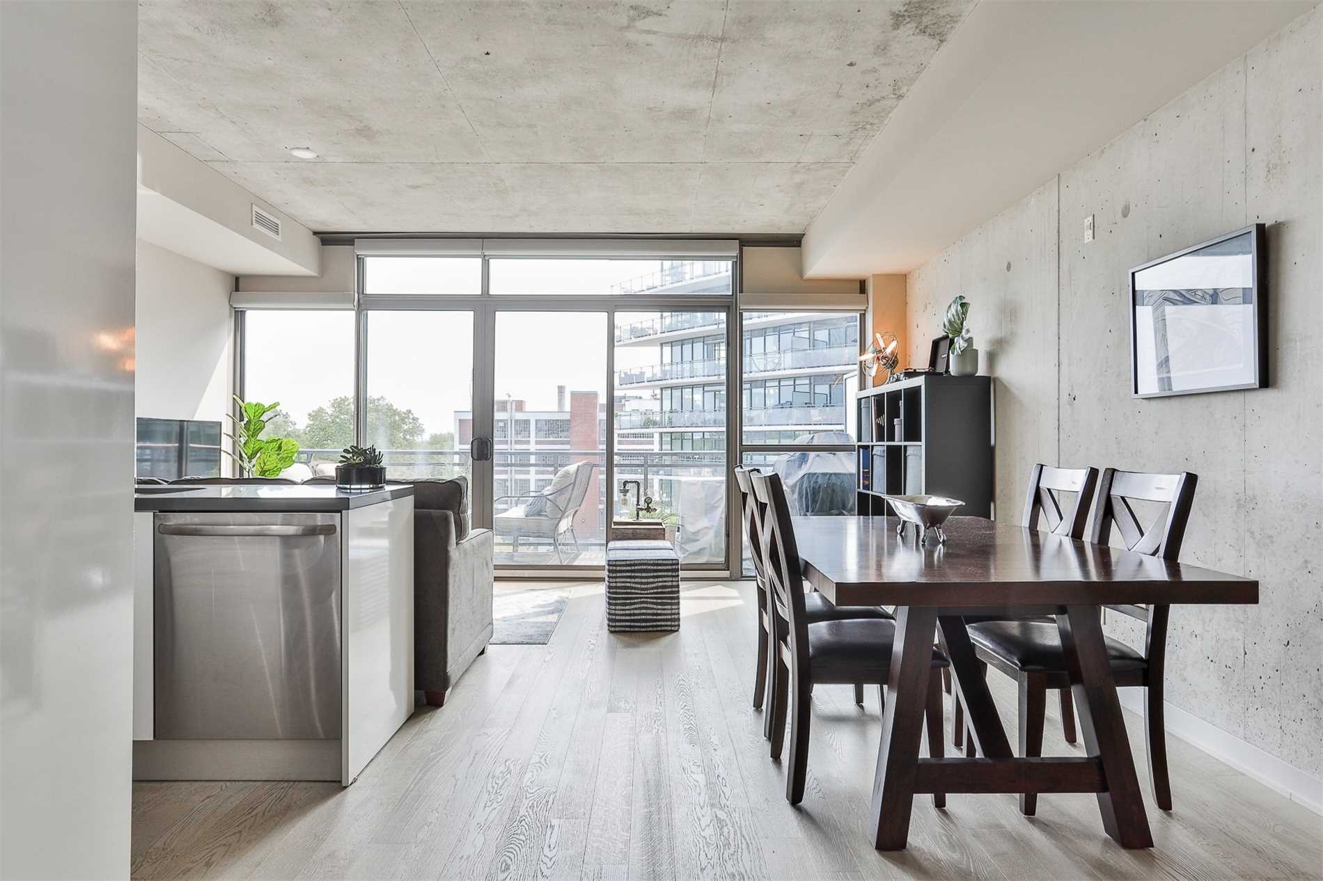 Gorgeous Open Concept & Rare Floorplan W/ Industrial Concrete Walls, 9Ft Ceilings & Spacious 761 Sqft Of Living Space. This 1 Bedroom, 1 Bathroom End-Unit Loft In The Coveted Flatiron Lofts Includes 1 Locker, 1 Undrgnd Parking Space, Ensuite Washer & Dryer, Large Ensuite Walk-In Closet, & A Spacious Uncovered South-Facing Patio (W/ Gas Hookup). Located In The Heart Of Leslieville, This Unit Is Perfect For 1st-Time Buyers, Young Professionals Or Young Couple. Incl: Stainless Steel Appliances-Fridge, Gas Stove And Oven, Microwave+Hood Vent, And Dishwasher; Washer & Dryer, Nest Thermostat & Fire Detector; Custom-Fitted Grey Patio Tiles, Coat Rack, Bathroom Storage, All Blinds, And Light Fixtures.