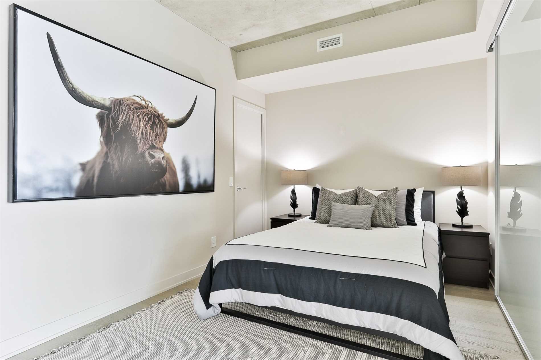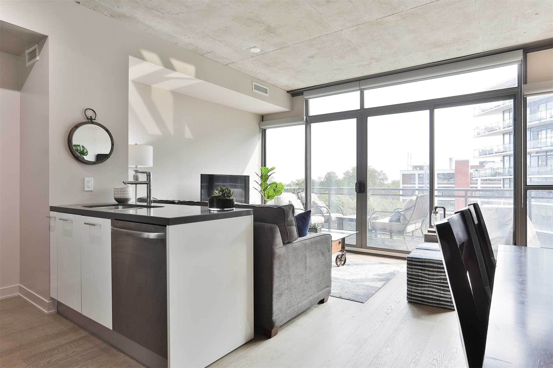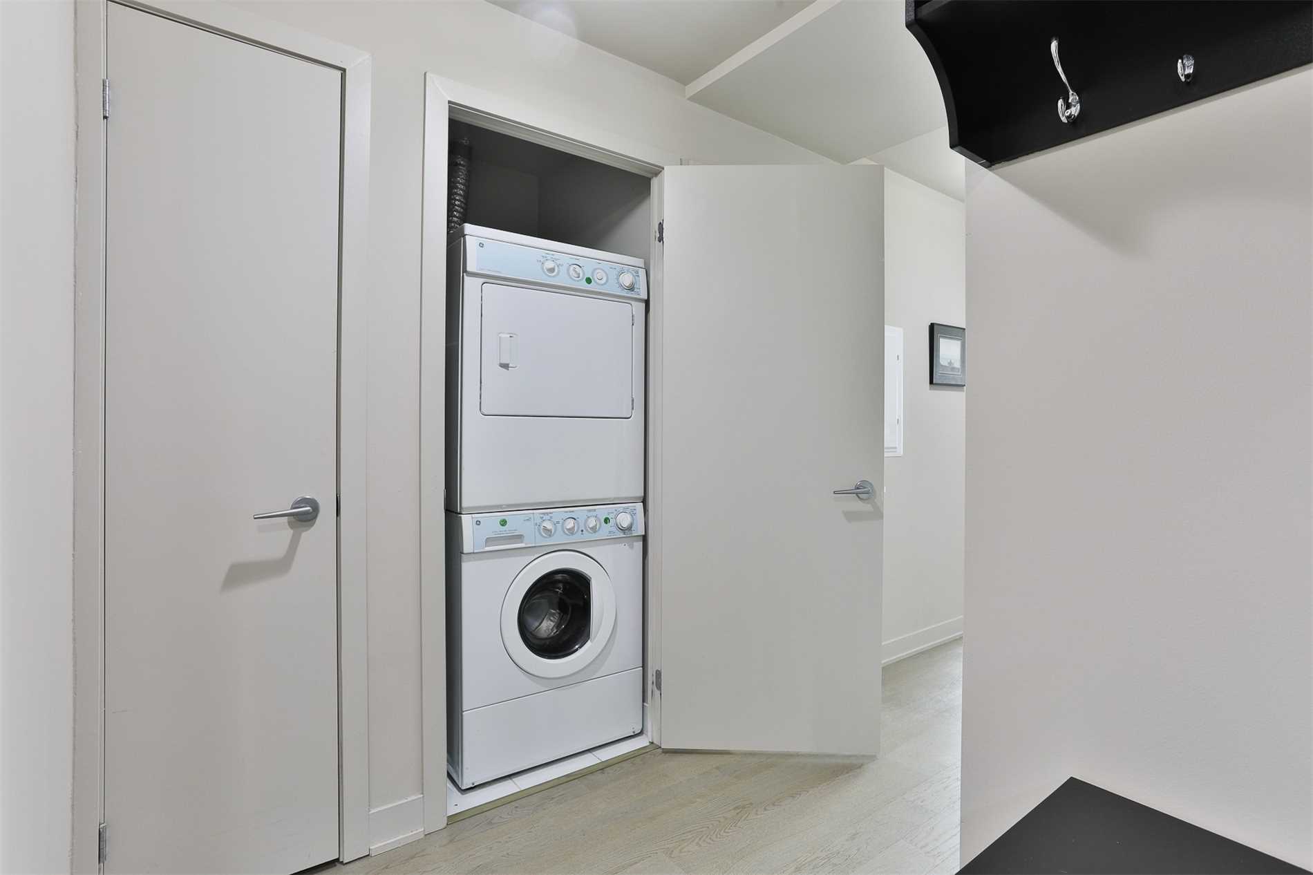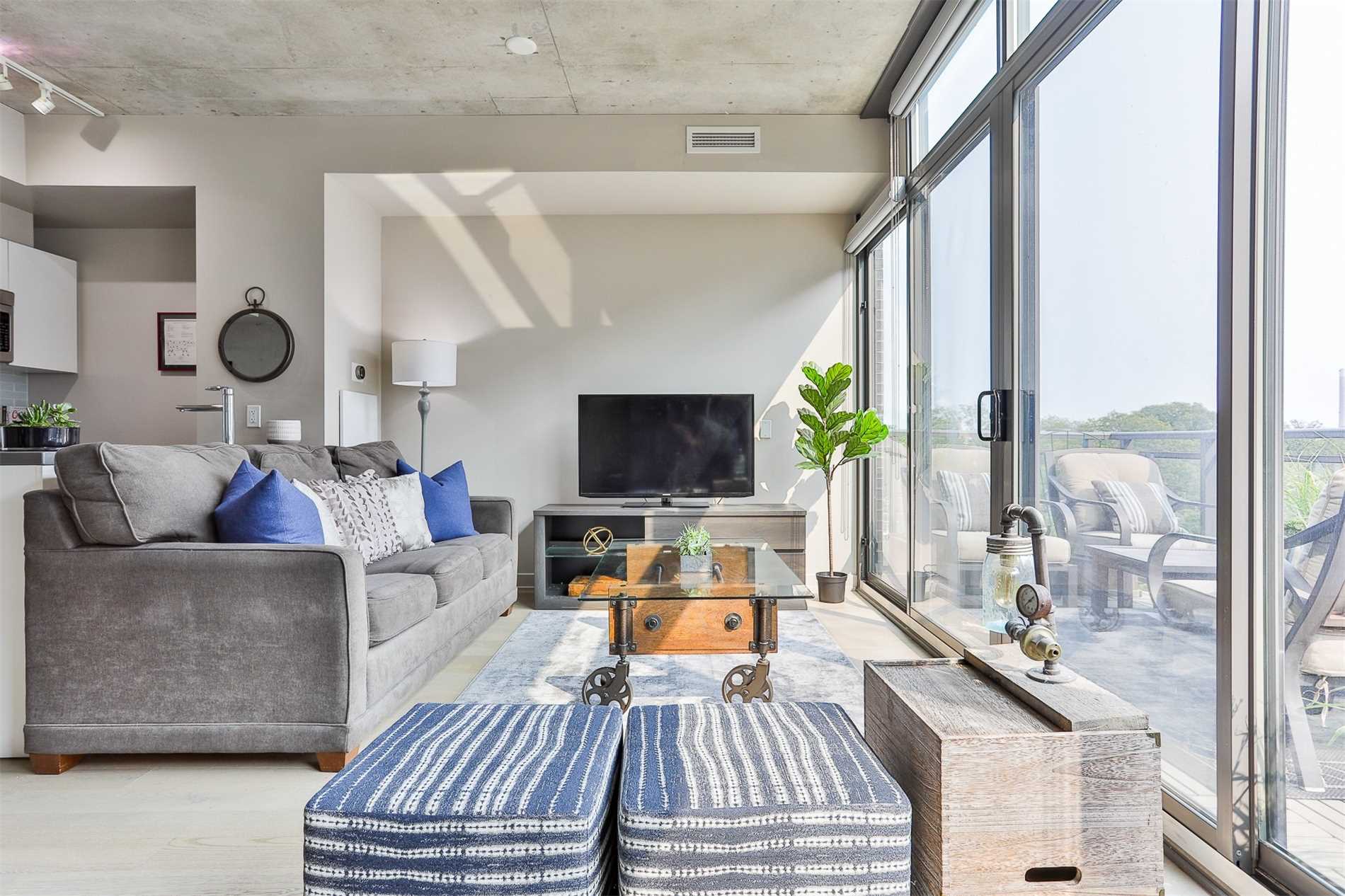 Gorgeous Open Concept & Rare Floorplan W/ Industrial Concrete Walls, 9Ft Ceilings & Spacious 761 Sqft Of Living Space. This 1 Bedroom, 1 Bathroom End-Unit Loft In The Coveted Flatiron Lofts Includes 1 Locker, 1 Undrgnd Parking Space, Ensuite Washer & Dryer, Large Ensuite Walk-In Closet, & A Spacious Uncovered South-Facing Patio (W/ Gas Hookup). Located In The Heart Of Leslieville, This Unit Is Perfect For 1st-Time Buyers, Young Professionals Or Young Couple. Incl: Stainless Steel Appliances-Fridge, Gas Stove And Oven, Microwave+Hood Vent, And Dishwasher; Washer & Dryer, Nest Thermostat & Fire Detector; Custom-Fitted Grey Patio Tiles, Coat Rack, Bathroom Storage, All Blinds, And Light Fixtures.