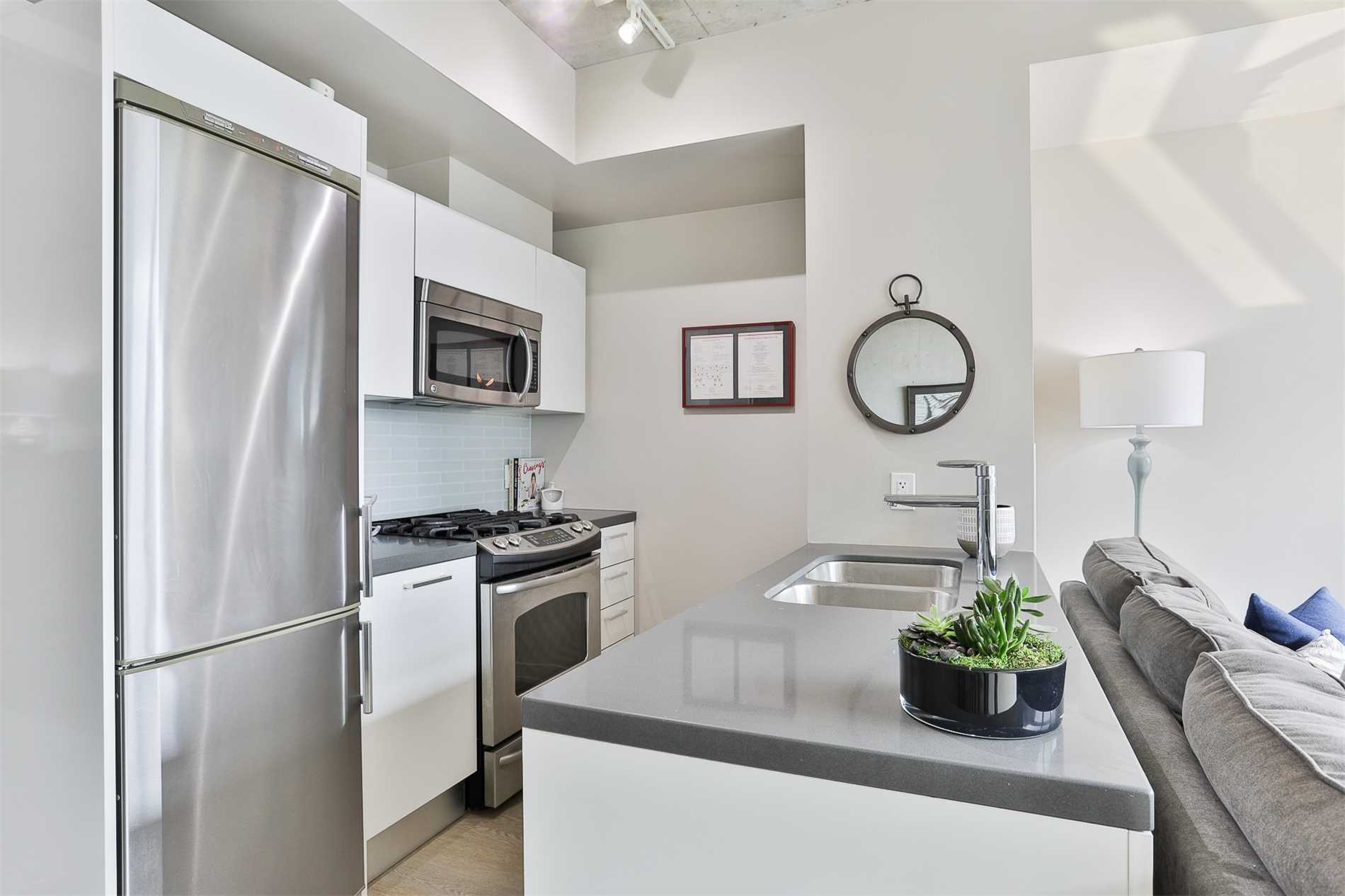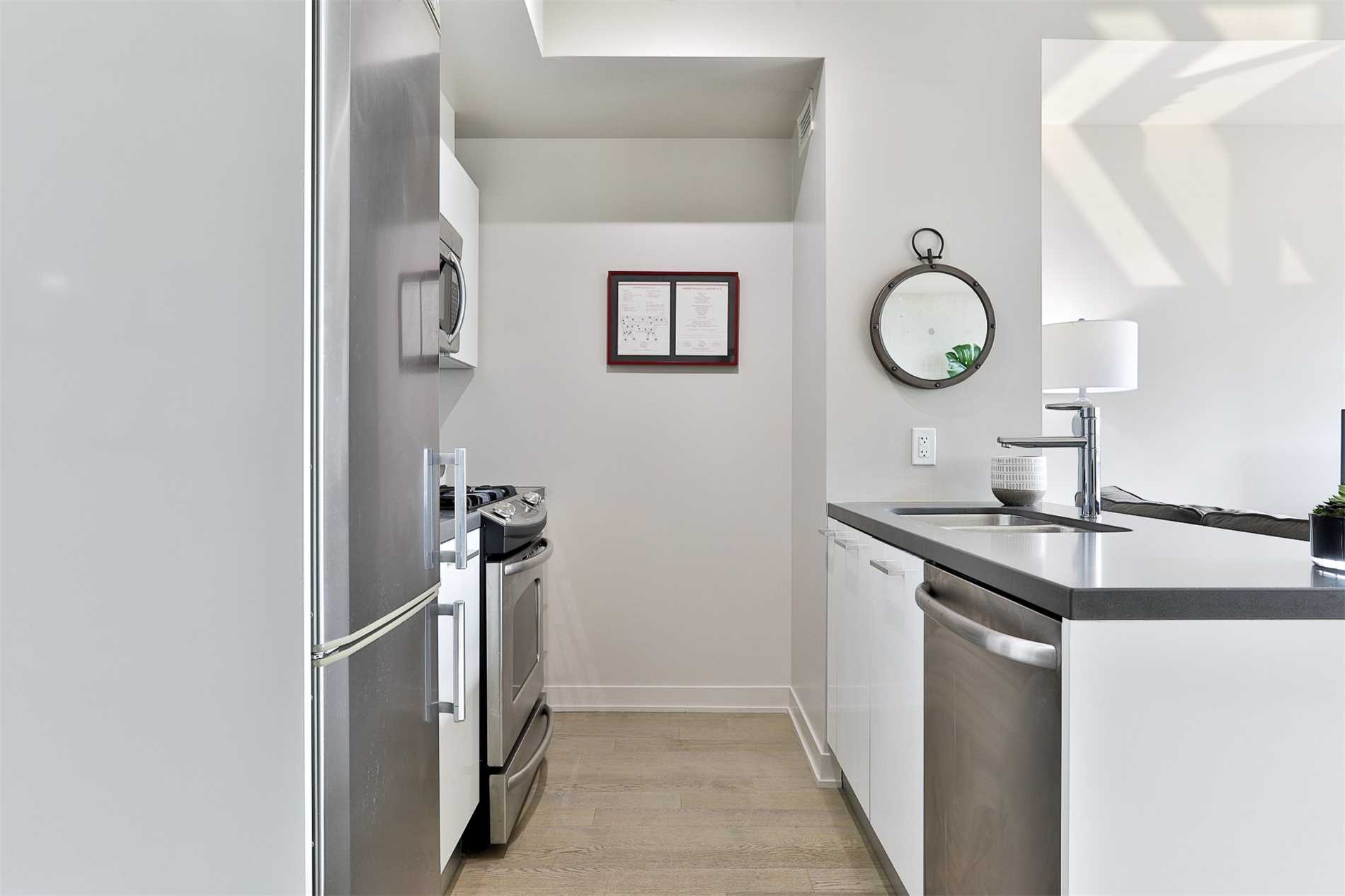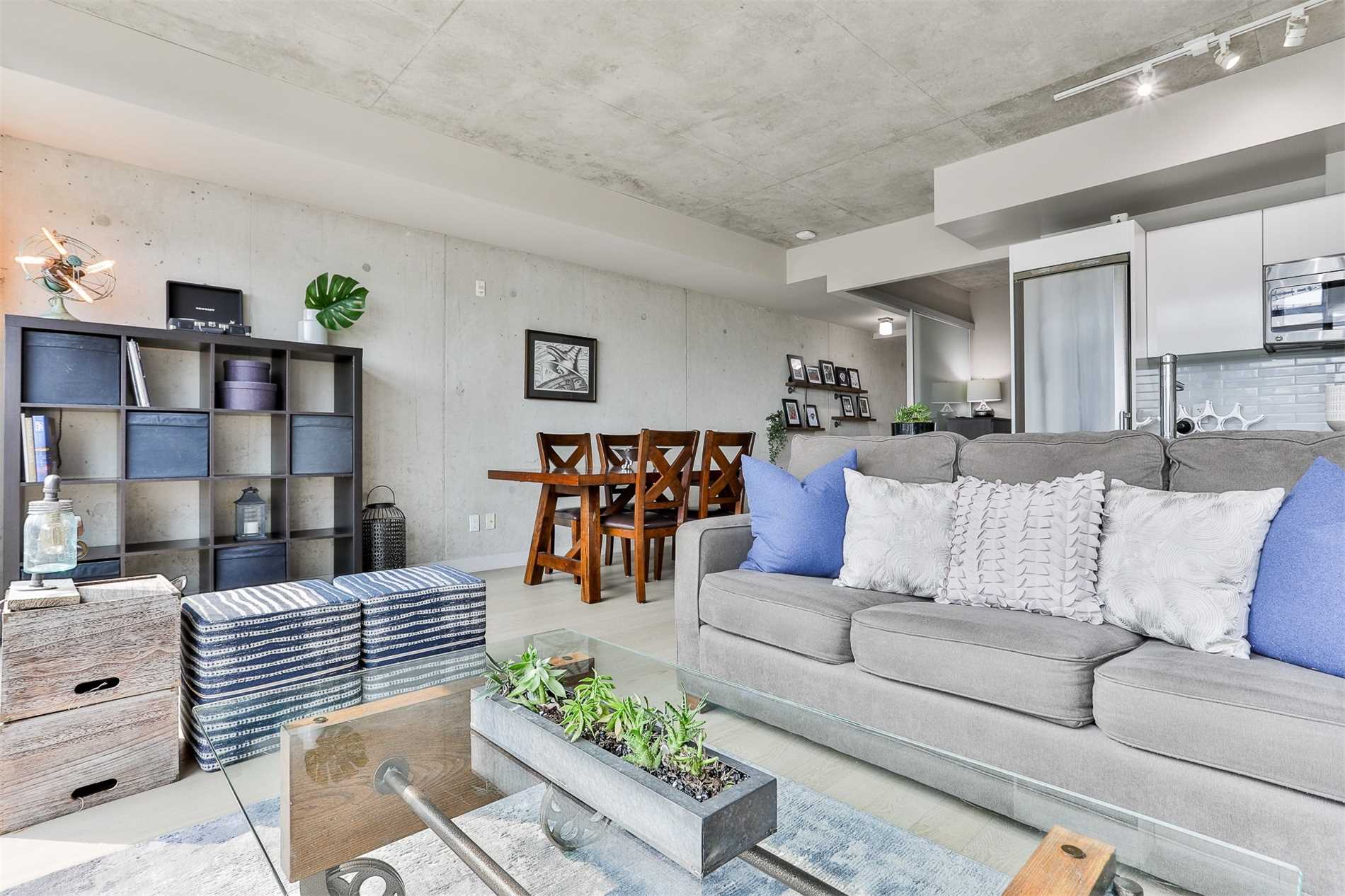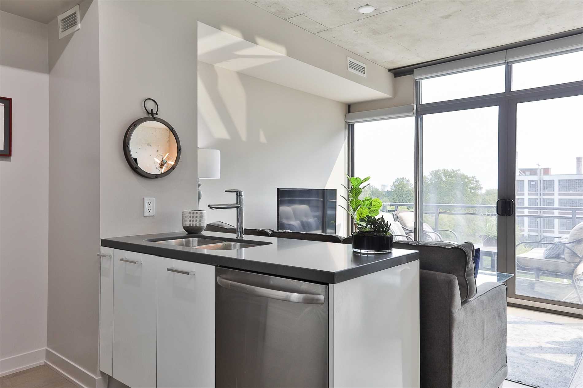 Gorgeous Open Concept & Rare Floorplan W/ Industrial Concrete Walls, 9Ft Ceilings & Spacious 761 Sqft Of Living Space. This 1 Bedroom, 1 Bathroom End-Unit Loft In The Coveted Flatiron Lofts Includes 1 Locker, 1 Undrgnd Parking Space, Ensuite Washer & Dryer, Large Ensuite Walk-In Closet, & A Spacious Uncovered South-Facing Patio (W/ Gas Hookup). Located In The Heart Of Leslieville, This Unit Is Perfect For 1st-Time Buyers, Young Professionals Or Young Couple. Incl: Stainless Steel Appliances-Fridge, Gas Stove And Oven, Microwave+Hood Vent, And Dishwasher; Washer & Dryer, Nest Thermostat & Fire Detector; Custom-Fitted Grey Patio Tiles, Coat Rack, Bathroom Storage, All Blinds, And Light Fixtures.