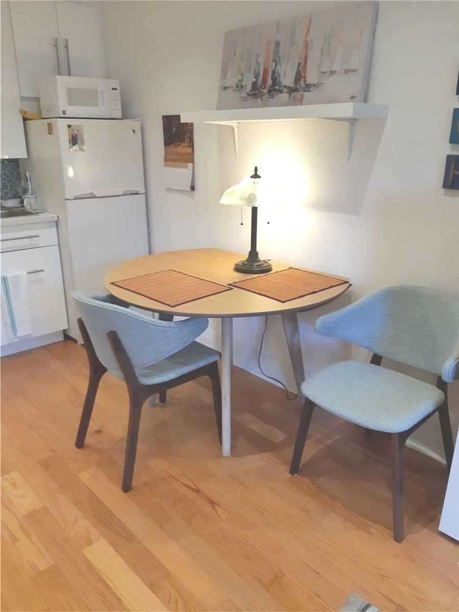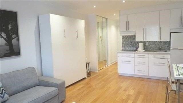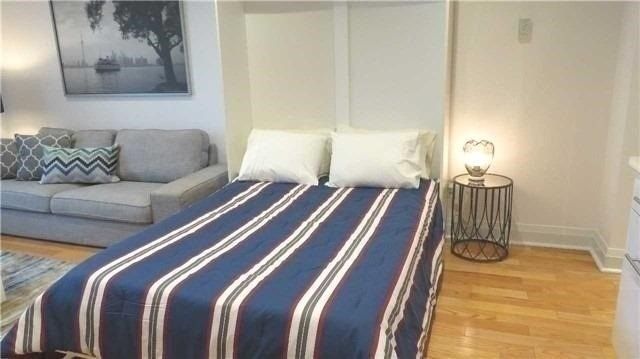 Beautifully renovated Pied A Terre in the Beach. Steps to the boardwalk, shops, restaurants and cafes on Queen St and minutes to downtown. Fabulous kitchen, hardwood floors throughout suite. Wonderfully situated on the peaceful quiet side of the building!! Pot lights throughout & renovated bathroom. Comes With Murphy Bed And So Much More! All Utilities Included. Tastefully furnished.Furniture Included: sofa, murphy bed, dinette table W/2 chairs, wall Unit, fridge, stove top, double closets, window coverings, A/C, 1 surface parking & locker. Photos from previous listing. Large east facing balcony.