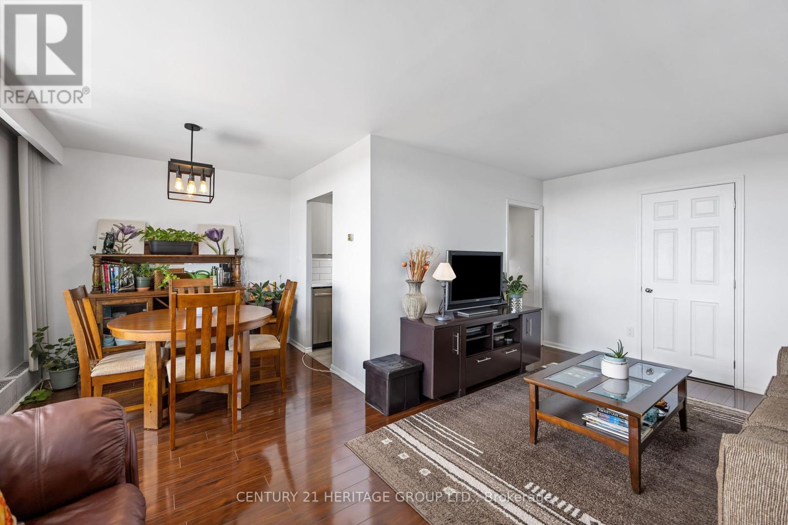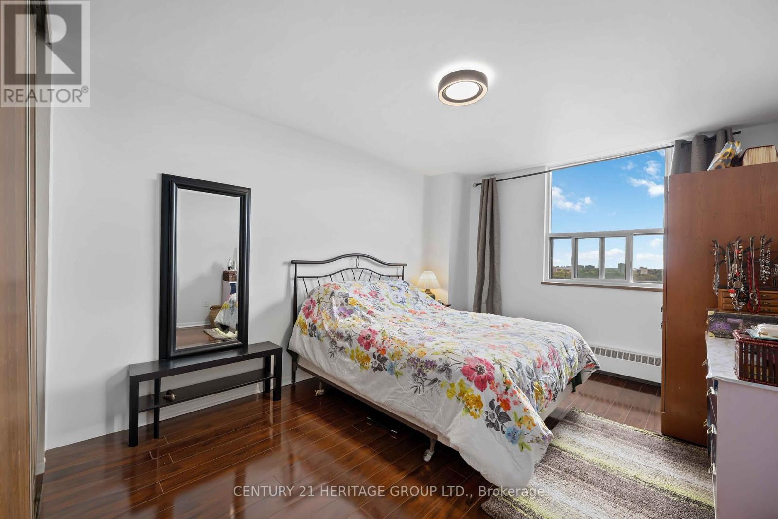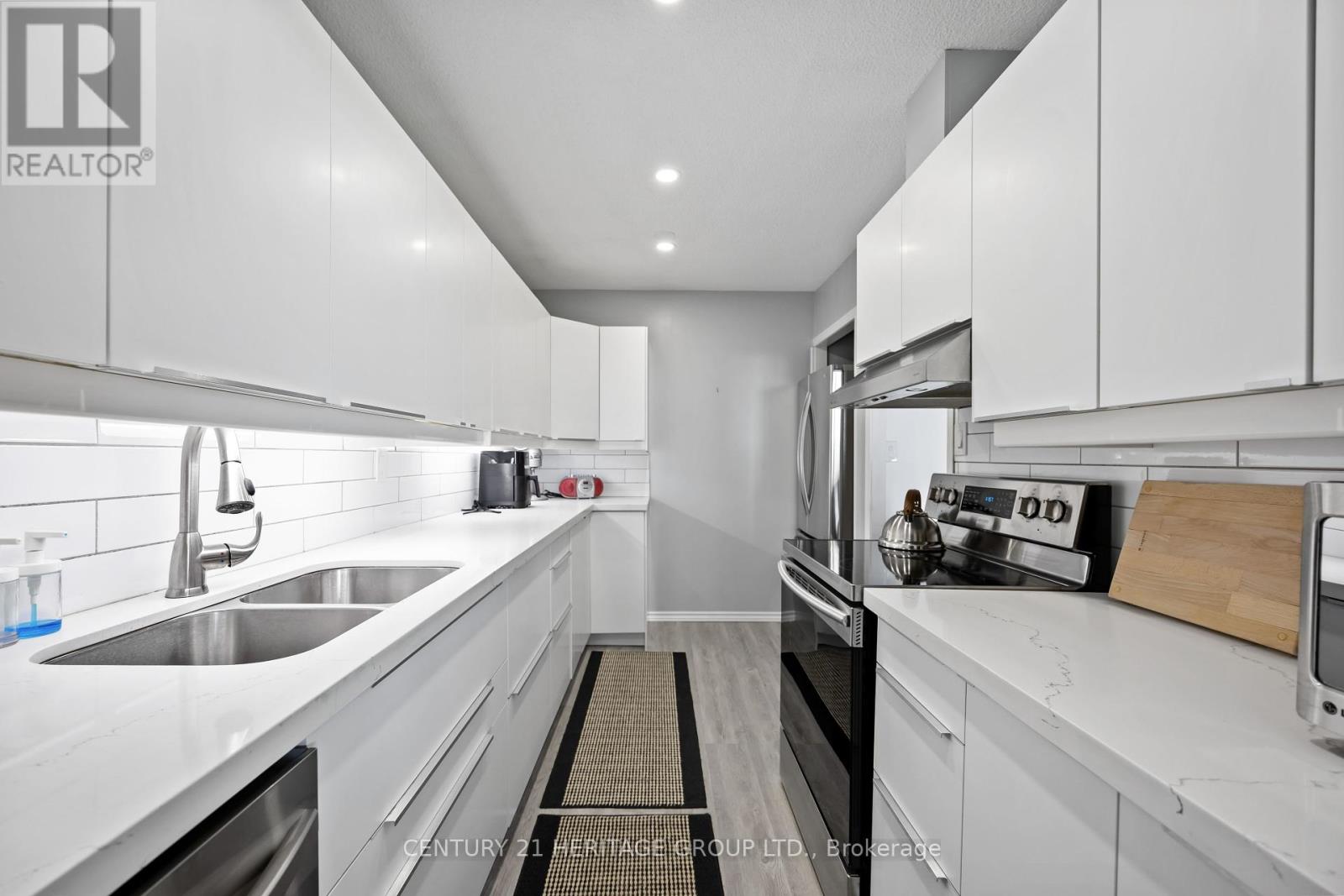 LOCATION! LOCATION! Welcome to your bright and inviting 2-bedroom Penthouse condo with stunning South views overlooking downtown! Step into the heart of this home and discover a modern kitchen adorned with sleek stainless steel appliances, perfect for whipping up your favorite meals. The shiny new flooring throughout the living spaces adds a touch of elegance, while the open balcony shiny new flooring throughout the living spaces adds a touch of elegance, while the open balcony invites you to entertain guests or simply unwind and enjoy the cityscape. With just under 1000 square feet of living space, this condo boasts generously sized bedrooms, providing ample room for relaxation and rest. Recent renovations within the last few years ensure that this residence exudes contemporary style & comfort, offering you a turnkey living experience. Maintenance Fees include everything including Cable!!!! DON'T MISS OUT! **** EXTRAS **** Wonderful Family Home in a High Demand Area , close to all amenities including Highways, Transit, Shopping, Schools, Places of Worship, Hospital within walking distance , Parks, Well Maintained Building, Status Certificate Ordered (id:22211)