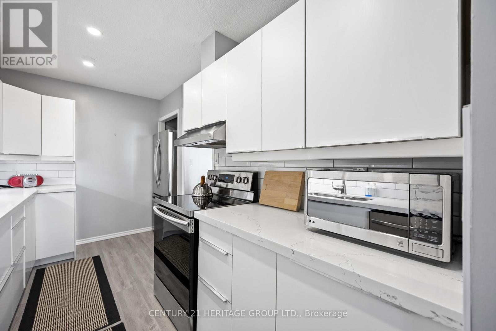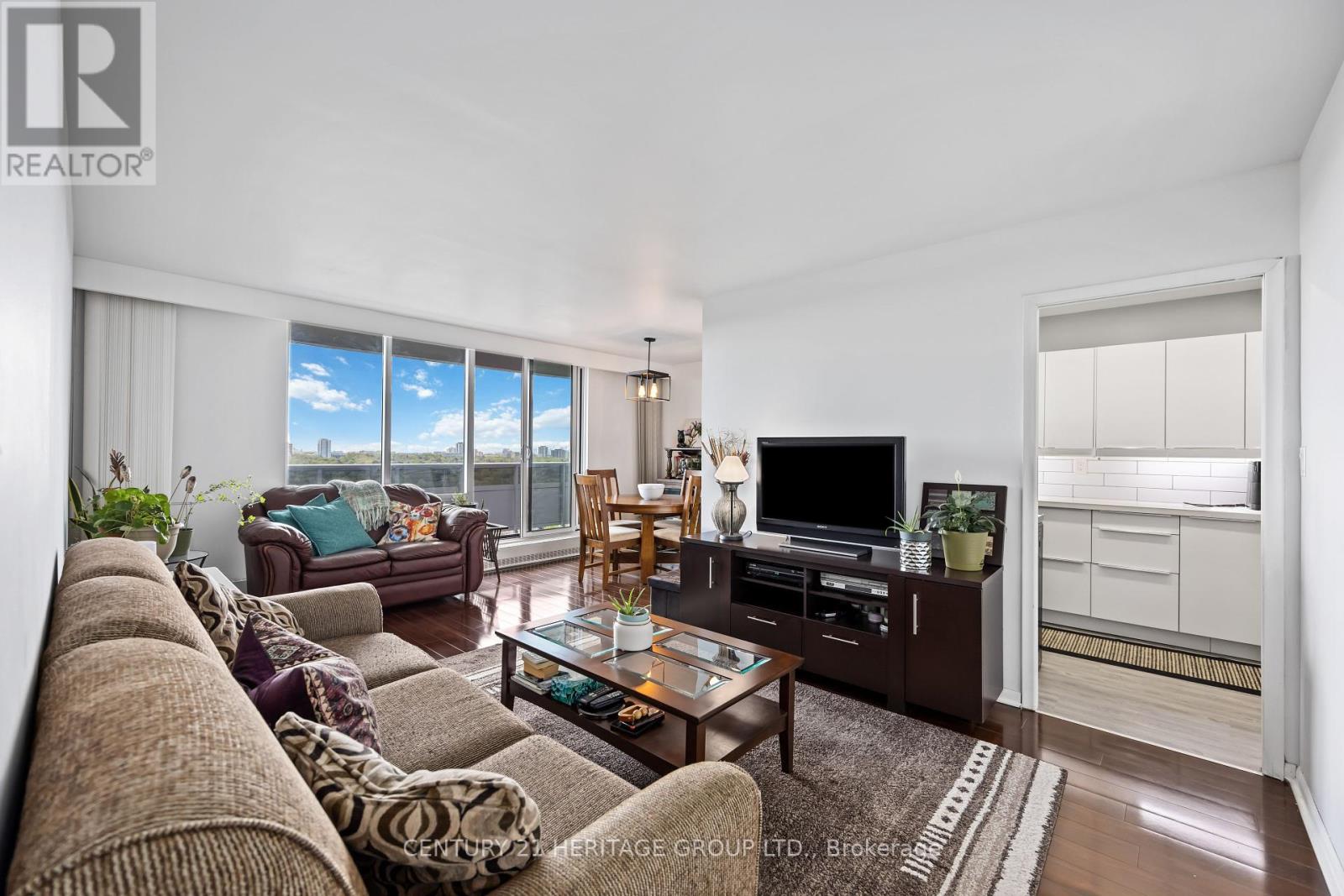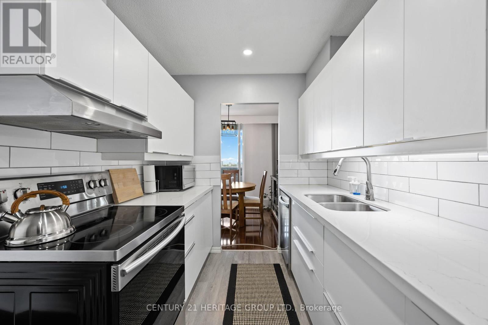 LOCATION! LOCATION! Welcome to your bright and inviting 2-bedroom Penthouse condo with stunning South views overlooking downtown! Step into the heart of this home and discover a modern kitchen adorned with sleek stainless steel appliances, perfect for whipping up your favorite meals. The shiny new flooring throughout the living spaces adds a touch of elegance, while the open balcony shiny new flooring throughout the living spaces adds a touch of elegance, while the open balcony invites you to entertain guests or simply unwind and enjoy the cityscape. With just under 1000 square feet of living space, this condo boasts generously sized bedrooms, providing ample room for relaxation and rest. Recent renovations within the last few years ensure that this residence exudes contemporary style & comfort, offering you a turnkey living experience. Maintenance Fees include everything including Cable!!!! DON'T MISS OUT! **** EXTRAS **** Wonderful Family Home in a High Demand Area , close to all amenities including Highways, Transit, Shopping, Schools, Places of Worship, Hospital within walking distance , Parks, Well Maintained Building, Status Certificate Ordered (id:22211)