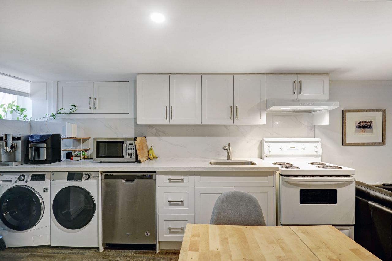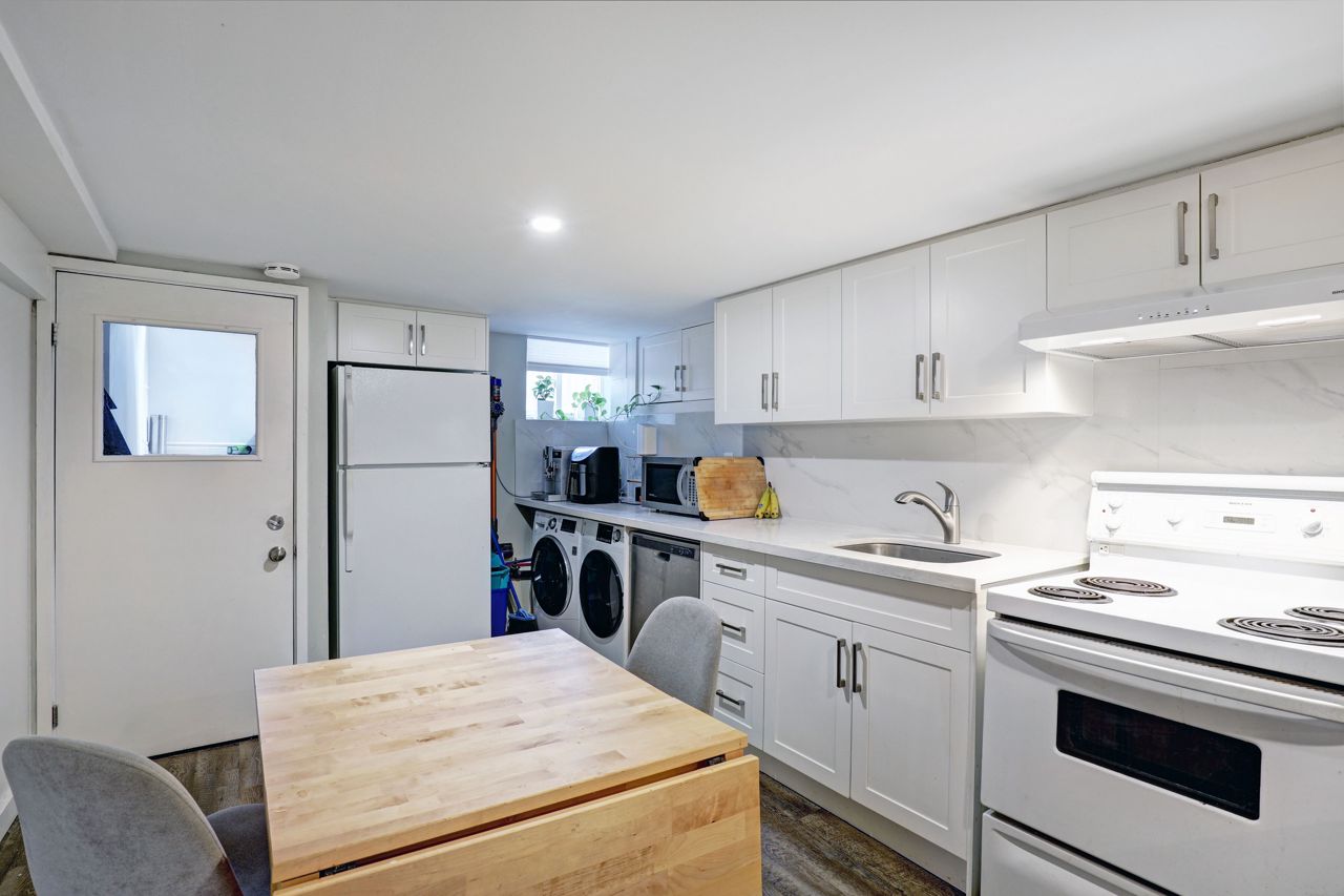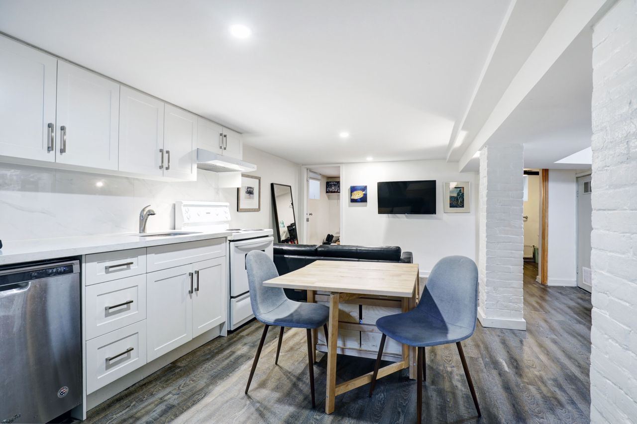 Large Split Layout 2-Bedroom Basement Apartment With Many Windows. It features an open Concept Design With A Fully Renovated Kitchen (including a dishwasher!) highlighted by its stone counters and backsplash. The Apartment Has Its Own Laundry, A Large Washroom With Glass Shower and original exposed brick. There Is Access To A Shared Backyard. Ideally Located On One Of The Best Streets In Toronto In Between College And Dundas Just Steps From Little Italy, Bellwoods And The Ossington Strip.Includes All Utilities (Hydro, Heat, Water), Stove, Dishwasher, Fridge, Rangehood, All Existing Window Coverings, All