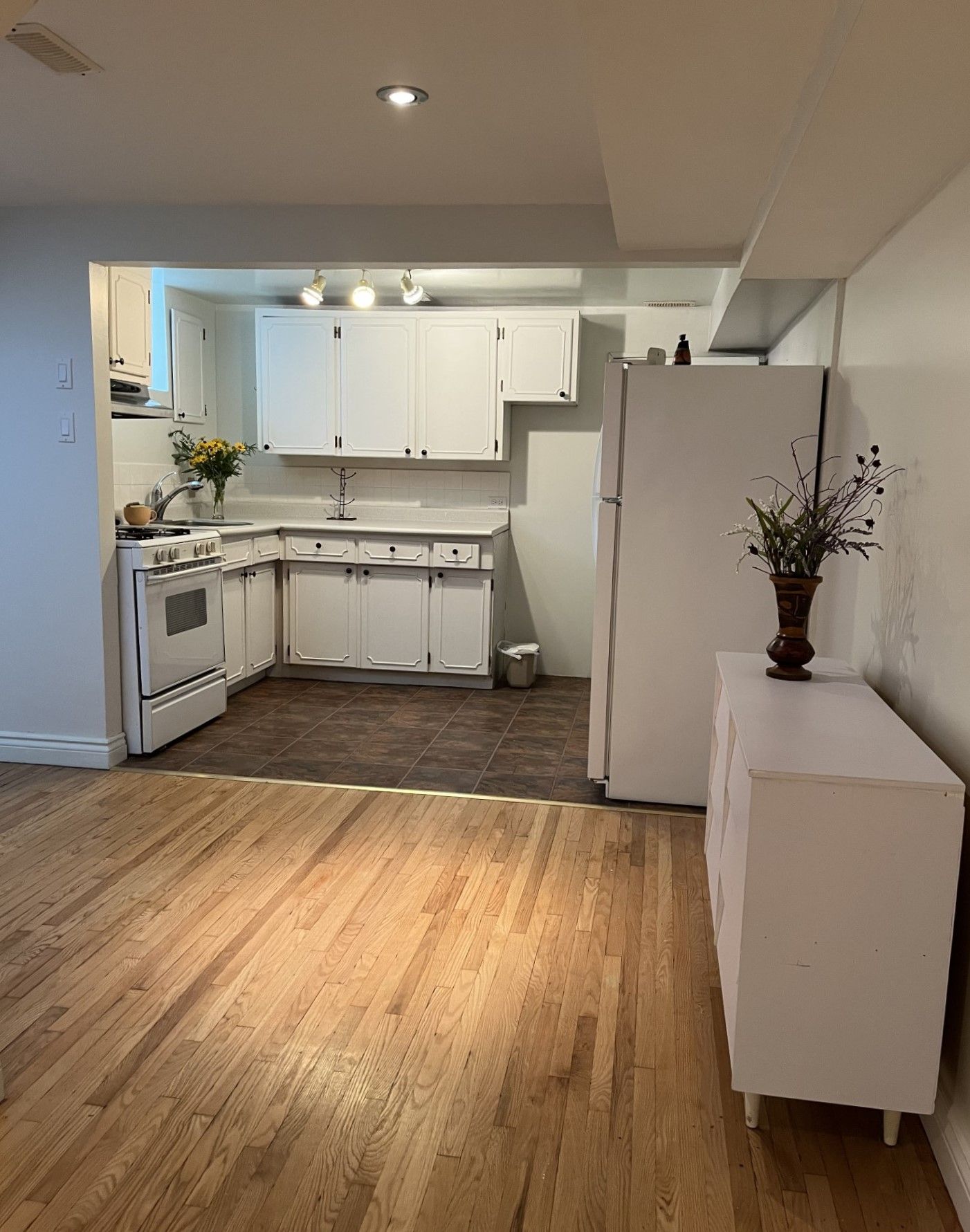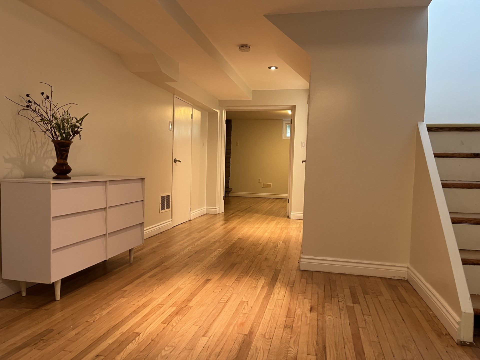 Cozy and Clean 1 Bedroom Basement Apartment in a Well-Maintained Bungalow. Friendly Neighborhood. Central Location. Features Bright Large Bedroom with Sitting Area, Double Mirrored Closet, living room, full kitchen, Raised Hardwood Floor. Pot Lights. Separate Entry. Short Drive or TTC to Downtown. Minutes to TTC Buses, Schools, Conservation Parks. Close to 401/DVP/404, Orion Go Trains on Richmond Line, Don Mills Subway, Hospitals. Walking Distance to Grocery and Shops. Super convenient. Non-smoking and no pets. 1 Parking. Stove, Fridge. Blinds. Utilities Are To Be 40% When House Is Shared and To Be 95% When No Tenant in Upper Floor. Tenant Responsible For Snow Removal. Required: Credit Score Check, Employment Letters, Proof Of Income, Personal Reference.