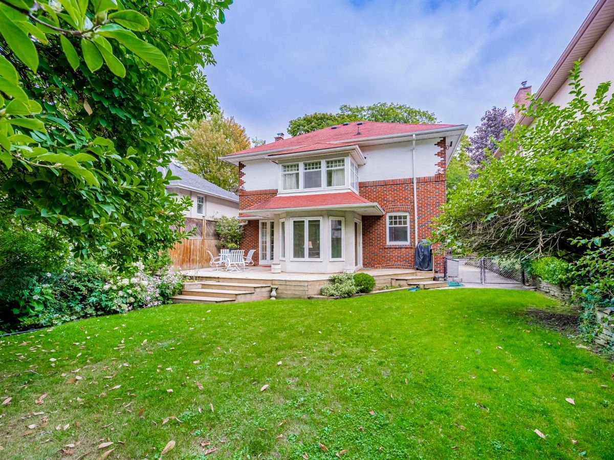 Live in *Lawrence Park*. Lovingly maintained solid home with classic charm and character - Center hall plan, Hardwood floors, crown moldings and trims. Spacious living/family area with fireplace and French doors. Separate dining room with stained glass & bay window. Relaxing sunroom between kitchen and living room, over-looks gardens. 3 walk-outs to deck and beautiful private yard with Magnolia tree. Clean, bright separate kitchen, potlights. 4 good-sized bedrooms+office/2nd sunroom overlooking yard. B/In linen closet on 2nd floor. Finished Basement is ready for updating: spacious rec room, storage area, laundry room, 3pc bath - lots of potential! A wonderful home in prime location - renovate or rebuilt to make it your own - great potential. Private driveway can fit several cars. Coveted family neighbourhood- Top Ranked Public and Private Schools. Walk to Toronto French School, parks, ravine, trails, Sunnybrook Hospital, transit, subway, Yonge St, Mt. Pleasant.Coveted Lawrence Park family neighbourhood- Top Ranked Public and Private Schools-Blythwood, Toronto French School, Glenview, Lawrence Park