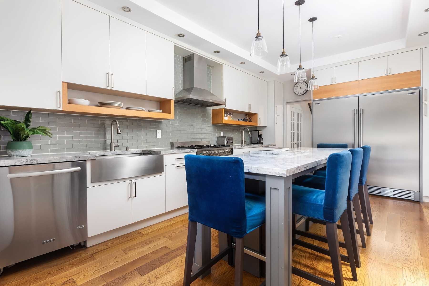 Hardwood Floor Stainless Steel Appl Breakfast Bar