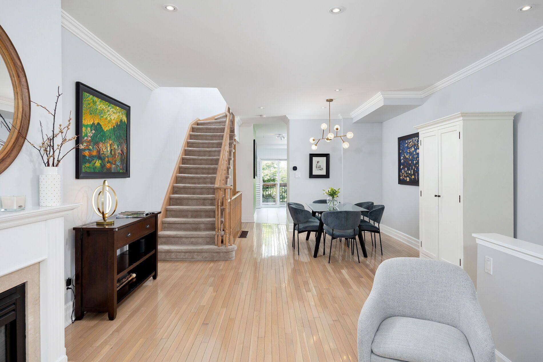 Welcome to your slice of heaven in South Etobicoke's most vibrant pocket. A beautiful 3 bdrm 4 bath executive townhome with over 2200 sq ft of finished space. Immaculately kept 4-level living offering rooms for every family member. Recently renovated spa-inspired bthrms, smoothed ceilings w/crown molding, white oak hrdwd T/O & zero maintenance outdoor space. 10 ft ceilings on the main flr w/custom designer lighting takes you into a large eat-in kitchen ft. matte black fixtures & beautiful wooden counters. Walk out to the elevated deck perfect for entertaining/BBQing. Lower level offers direct garage access, coldroom,4 pc bthrm & W/O to your private backyard. Finished Bsmt Is Used As A Home Office & Guest Bedroom but has many potential uses. Perfect Home For A Family Or Professional Couple. FREEHOLD, NO MAINTENANCE FEES! Single Car Garage With 2 Parking Spots On The recently paved Interlock Driveway. Steps to TTC, GO&All Amenities.. Life is better here!Fridge, Stove, B/I Microwave, B/I Dishwasher, Washer, Dryer, All ELF's, All California Shutters, CVAC & All Attachments, Garage Door Remotes. Furnace (2022), Roof (2022), Front & Rear Landscaping (2021).