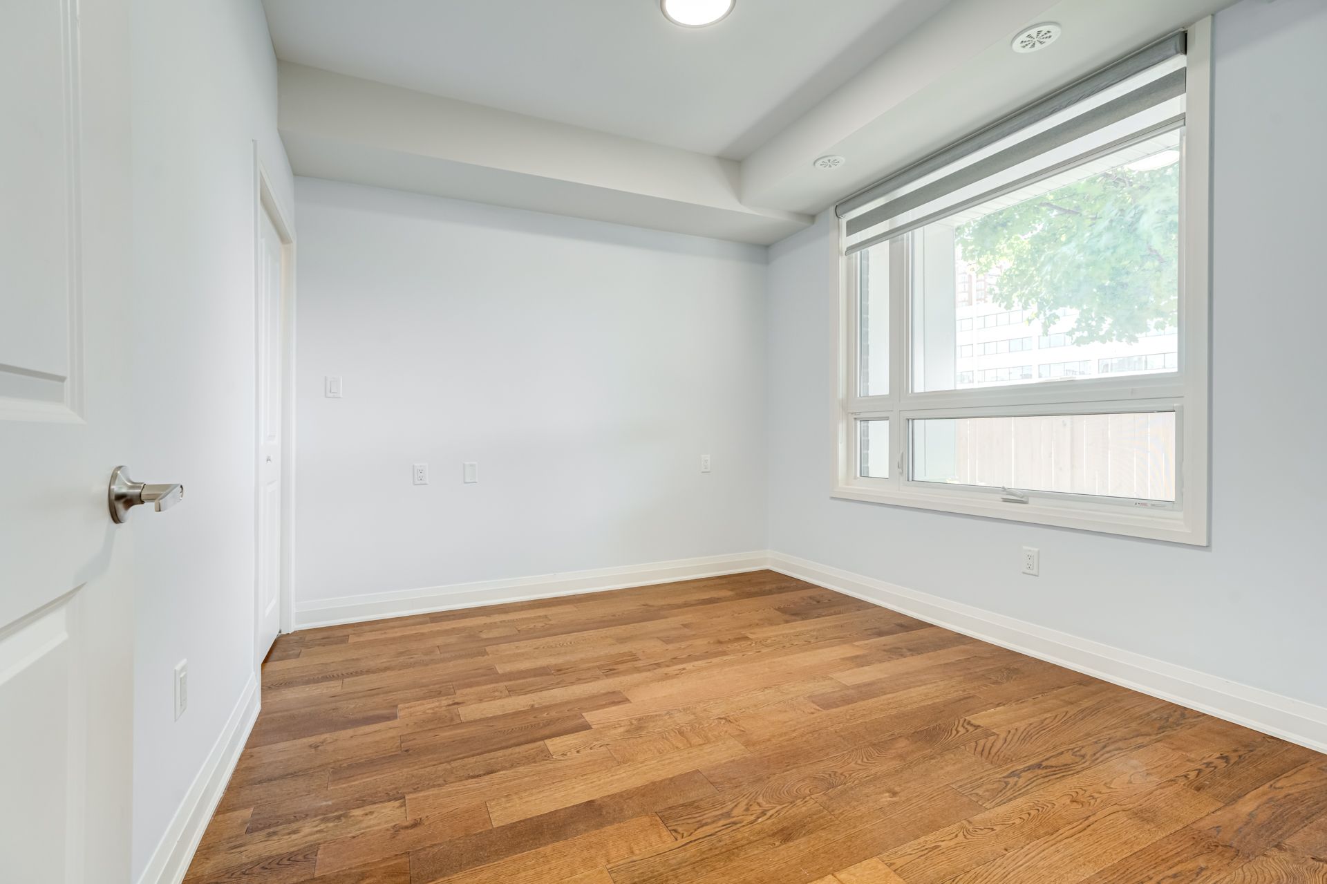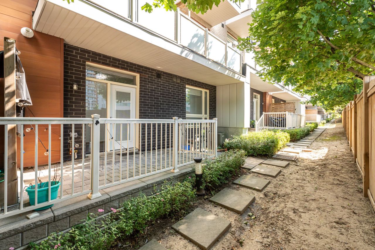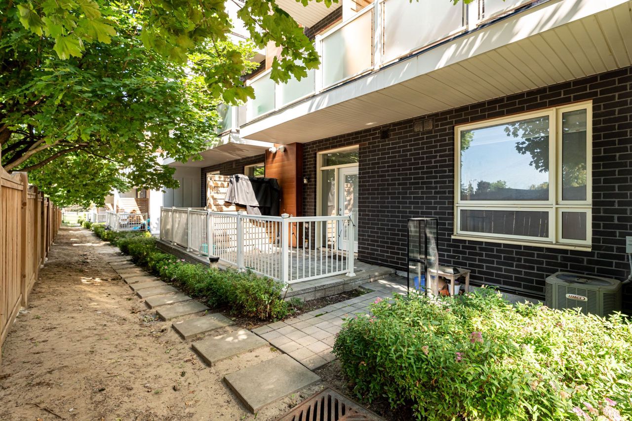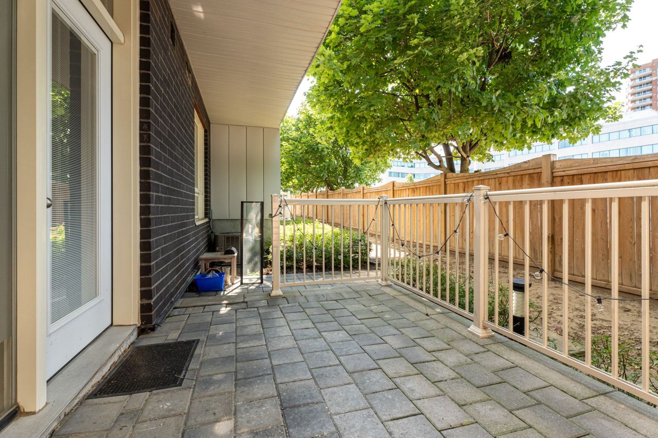 Welcome to this Marvelous Starter Unit for First Time Buyers and or Investors. Ideally Located Near Shops/Malls/HWY401/Schools/Hospital and So Much More. This Unit Offers 2 Generous Size Bedroom Along with a Large Den. Upgraded Kitchen with Stainless Steel Appliances, Granite Counter-Top, Tons of Pantry Space, Upgraded Baseboards. Great Front Patio with Tons of Space for Gardening/Relaxing. This Unit Also Comes with 1 Parking and a Large Locker. Grab the TTC at Doorstep! Natural Gas BBQ line in the backyard. Low Maintenance Fee for a Well Maintained ComplexAll Existing Appliances: S/S Stove, S/S Fridge, S/S B/I Dishwasher, S/S B/I Microwave Oven, Stacked Washer Dryer, All Elf s, All Window Coverings, And Blinds