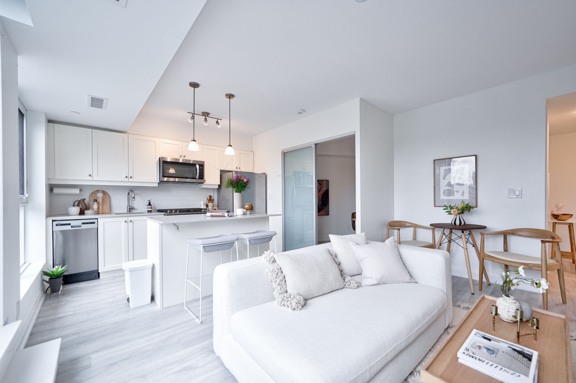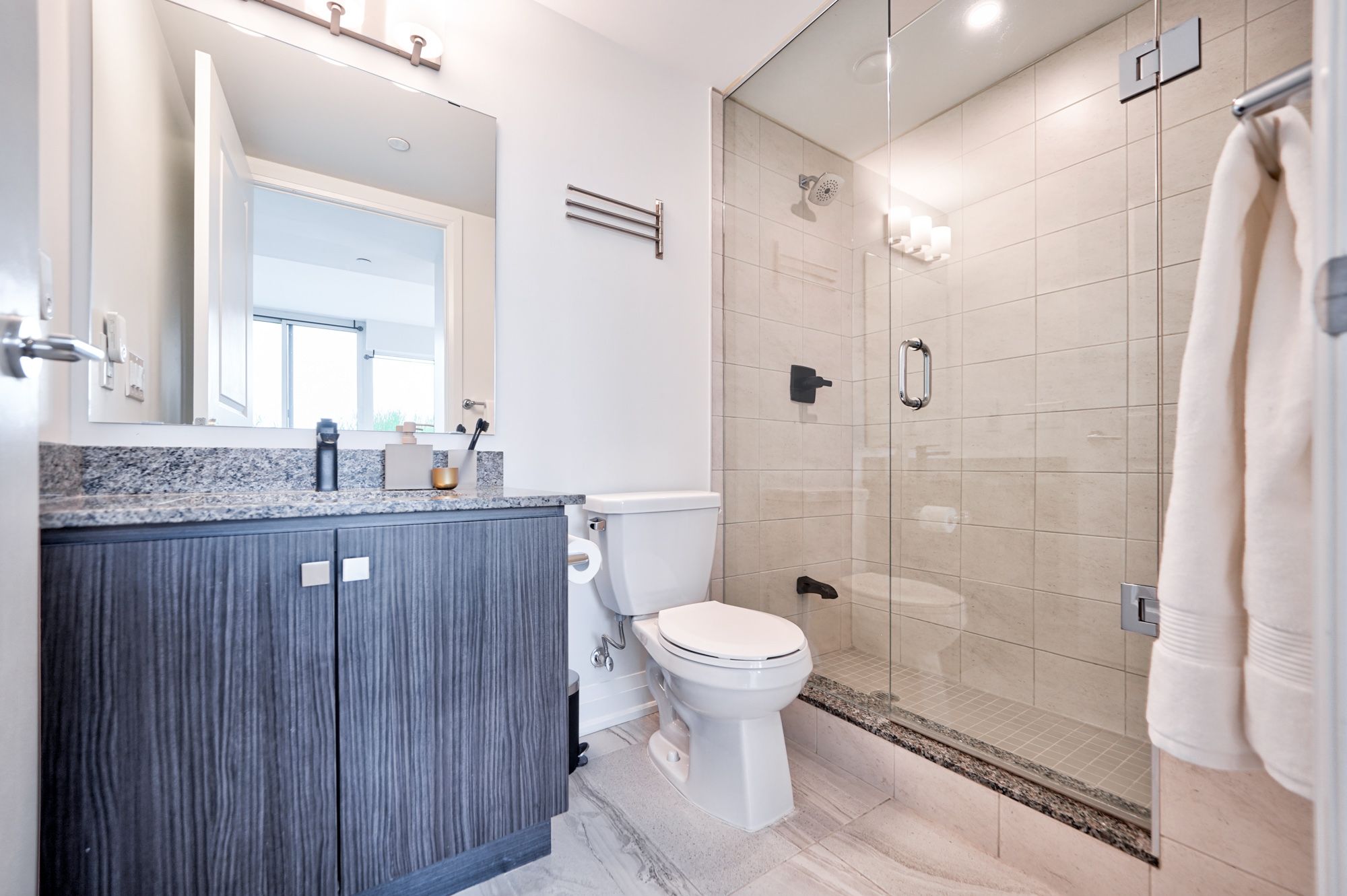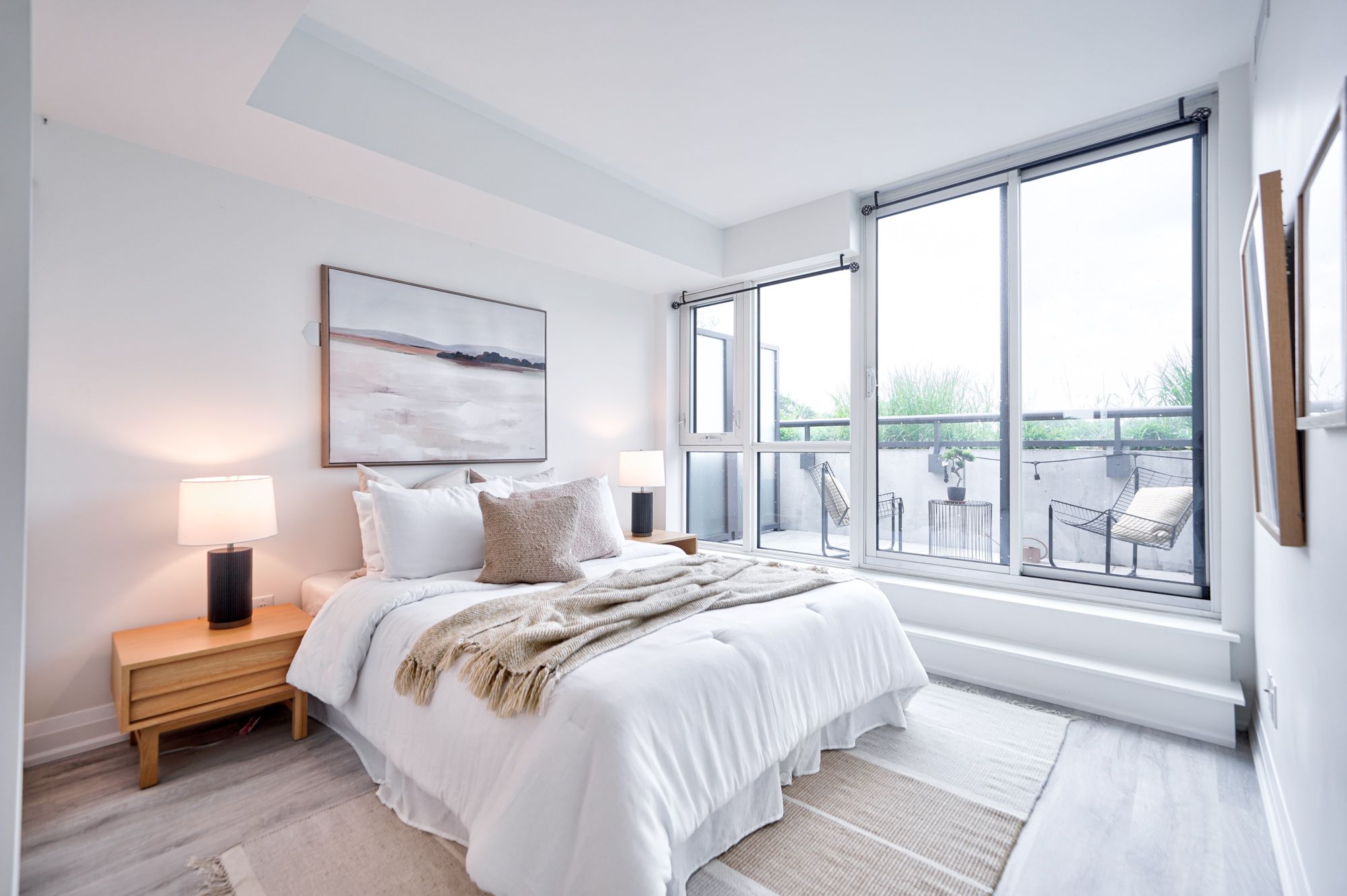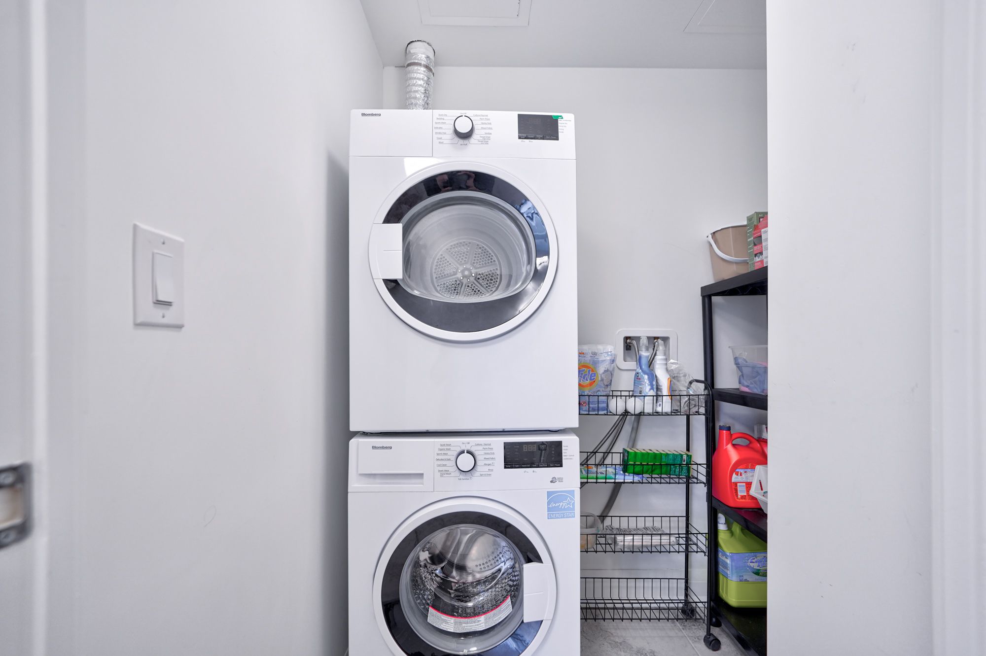 Step inside and be greeted by a bright and open living space, bathed in natural light that pours in through floor-to-ceiling windows, providing breathtaking views of the city skyline. Host friends and family in the spacious living area, or take the conversation outside to your own private 200 sq ft terrace.Impressively High Ceiling, Neutral Decor, Brand New S.S. Appliances, Ensuite Laundry, storage, Bbqs