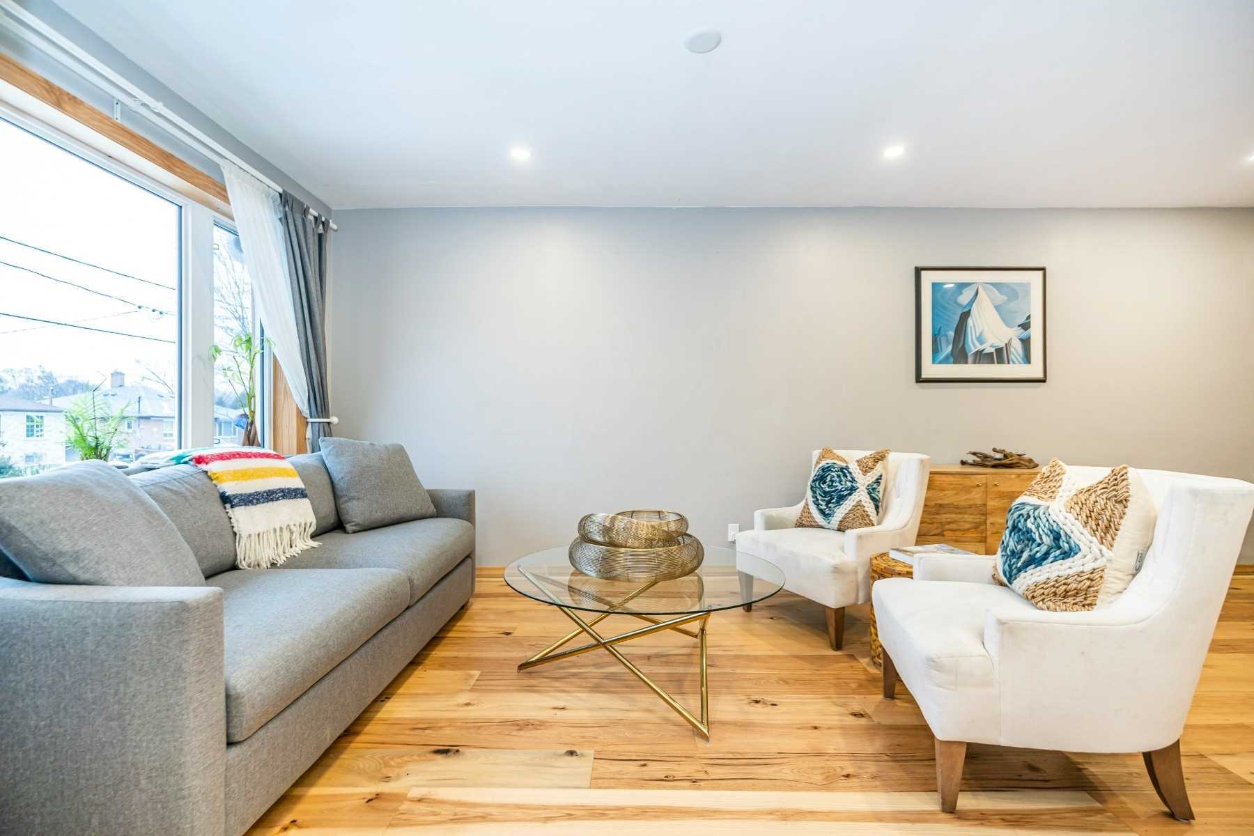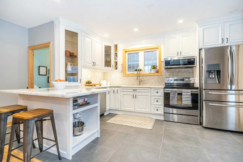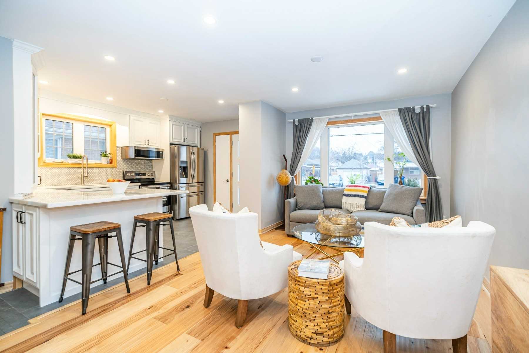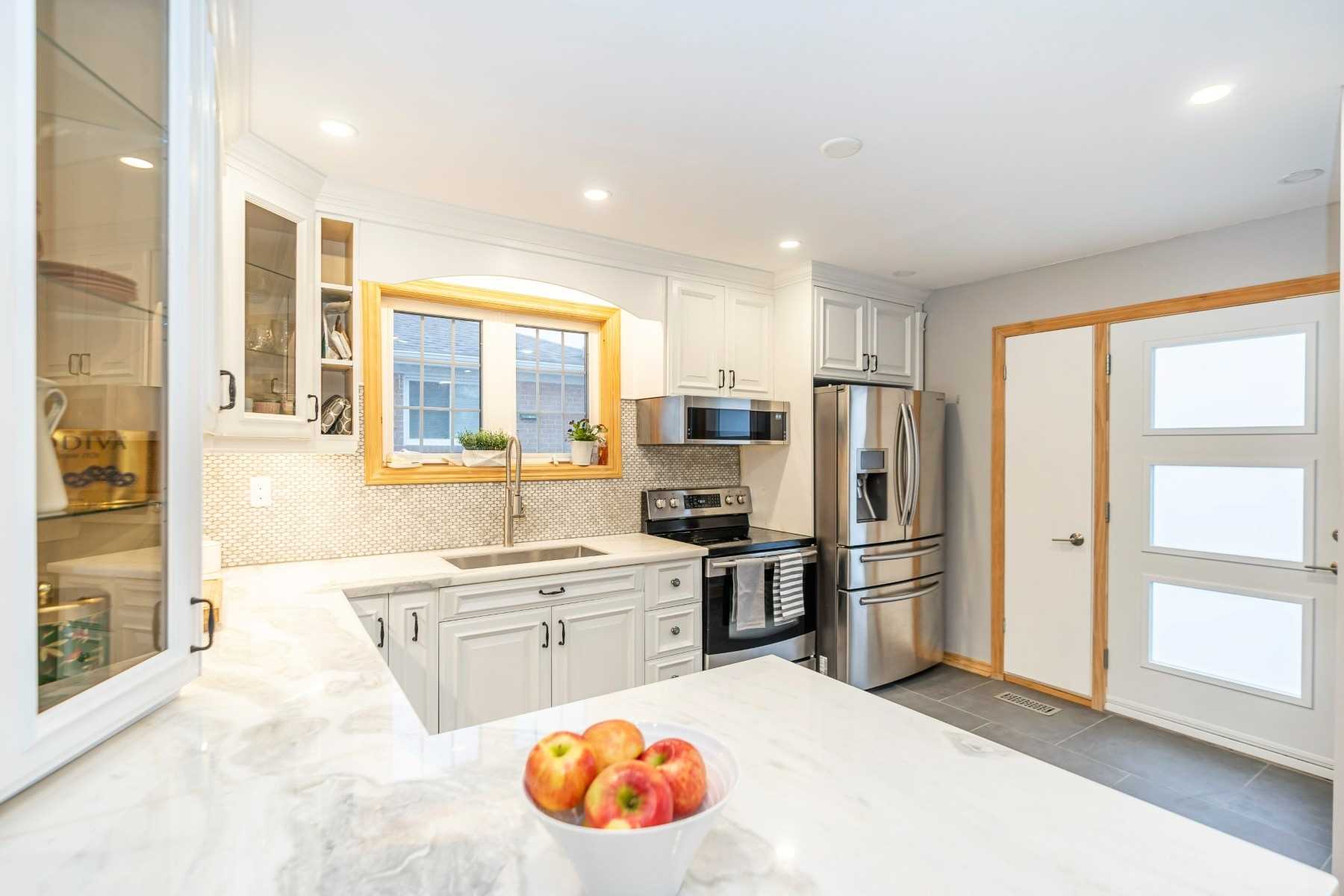 Pls View Video Tour!! To See This Beautiful Semi-Det Bung Upgraded With Modern Open Concept Kitchen, Consisting Of Quartzite Counters, Porcelain Flr, S/S Appliances & 14 Gauge Sink, Ceramic Back Splash, Crown Moulding. Hickory Engineered Flr In L/R & D/R. Riobel Fixtures In Main Bath With Rain Shower & Herring Bone Cultured Marble Tiles. Office/Brm In Bsmt With Separate Entrance Along W/ Entertainment Rm With Movie Screen & Roughed-In Movie Projector Outlet. Enclosed Patio Behind Garage For Private Entertaining In Backyard. Microwave (Whirlpool) Stove, Fridge,D/W, Washer/Dryer (Samsung), (Nest) Smoke/Carbon Monoxide Det, & Thermostat. A/C, Garage Door Opener & Ctrl. Sump Pump & Back Flow Valve.