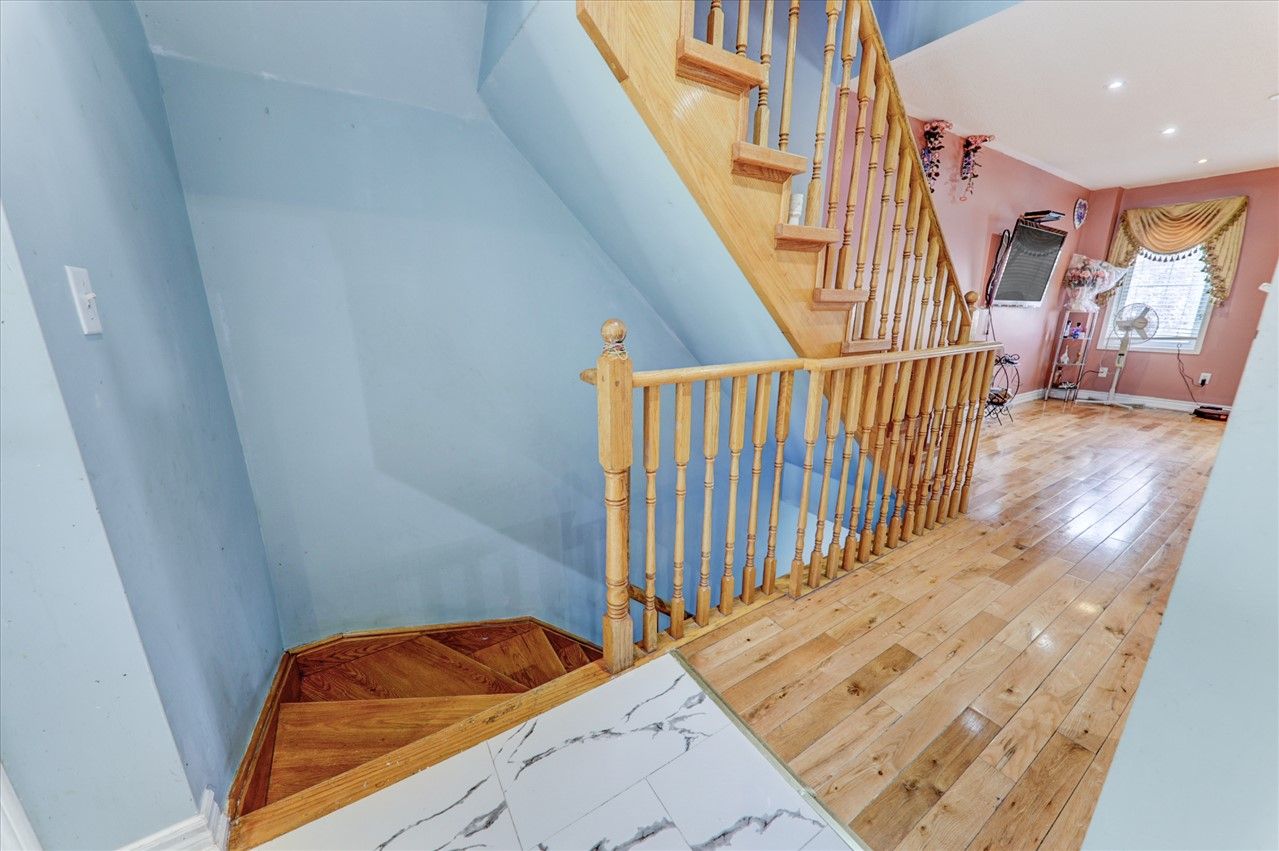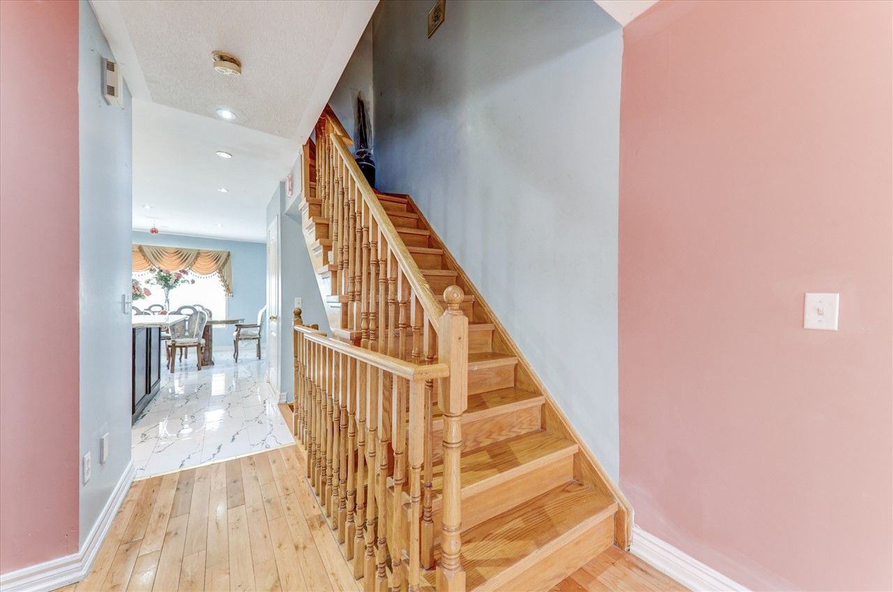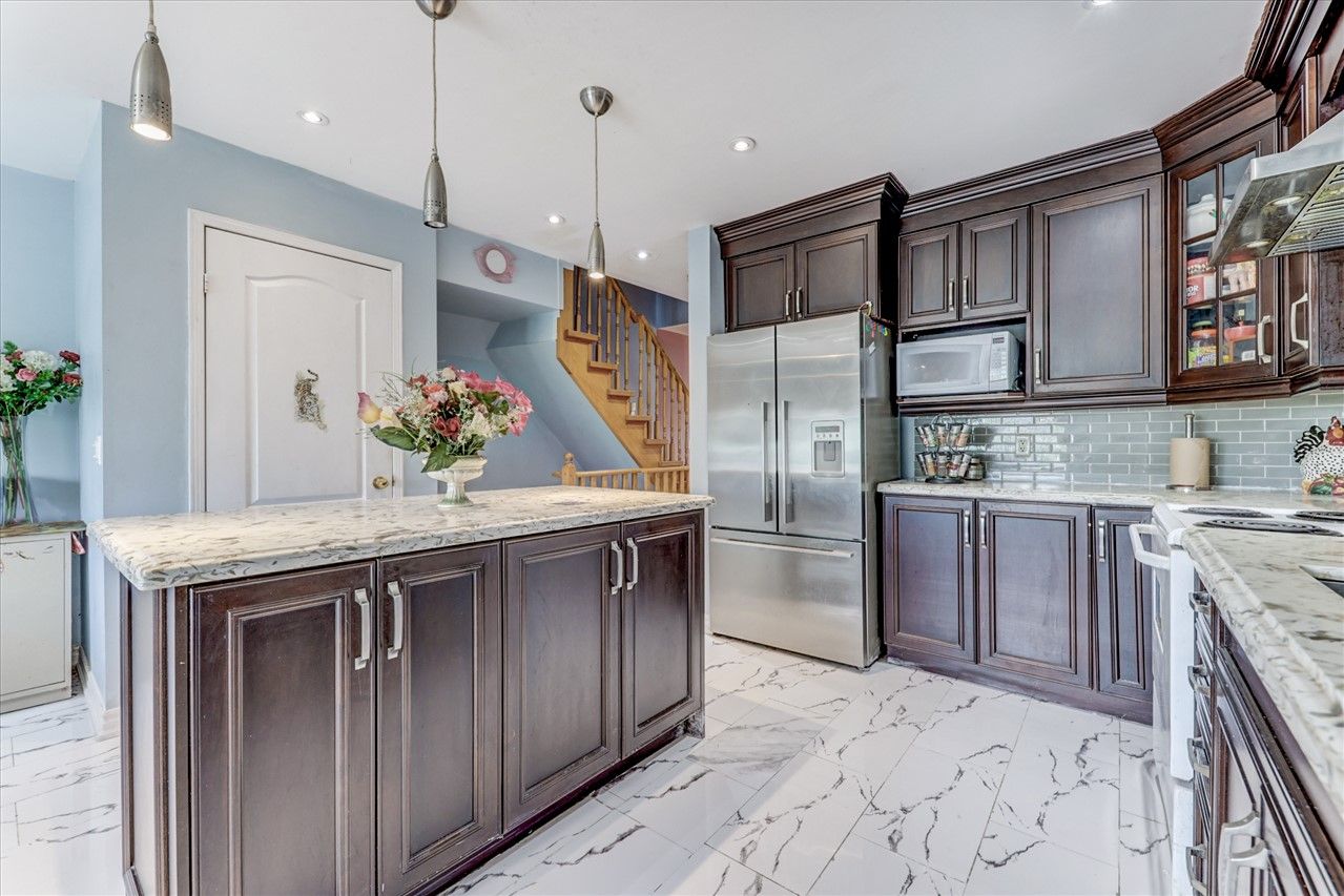 Well Maintained 4 Bdrm Townhouse In Great Location! Very Spacious Home In Sought After Neighborhood Almost 1800 Sq Ft, Hardwood Floor & Stairs Led Pot Lights Throughout; Open Concept Living/Dining Room, Eat-In Kitchen, 2 Pc Powder Room On Main Level. 3 Large Bedrooms with 2 full washrooms at 3rd floor. His/Her Closet In Prime Bdrm; Direct Entrance Thru Garage; Fully Fenced/Very Low Maint Fee; Close To Schools, Shops, Park, Library, And Other Amenities; Steps To Ttc/Rt Station, Minutes To Hwy 401 & Dvp.S/S Fridge, Stove, B/I Dishwasher, Washer, Dryer, Window Blinds, All Elfs, Gb&E.