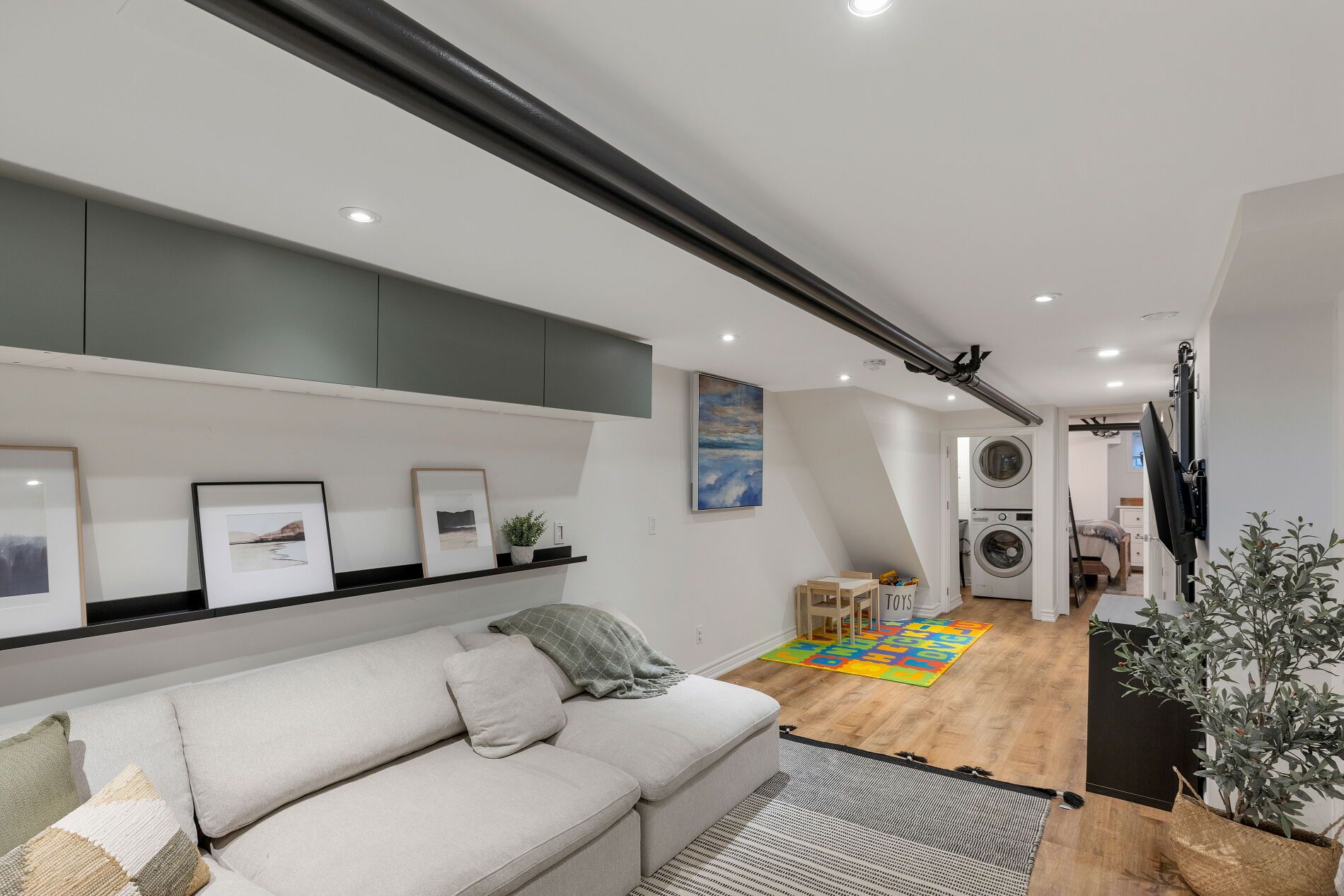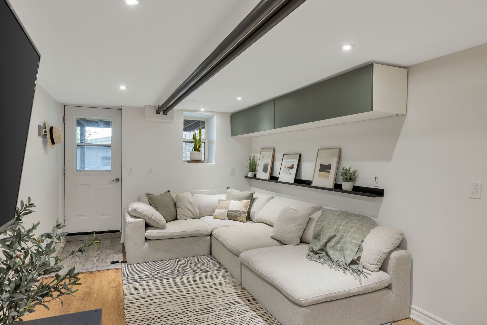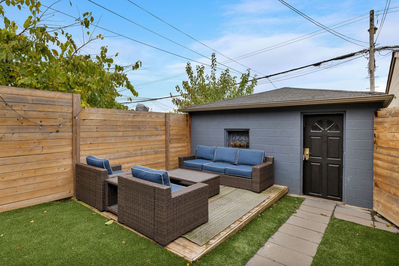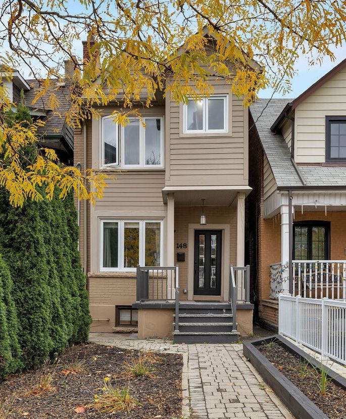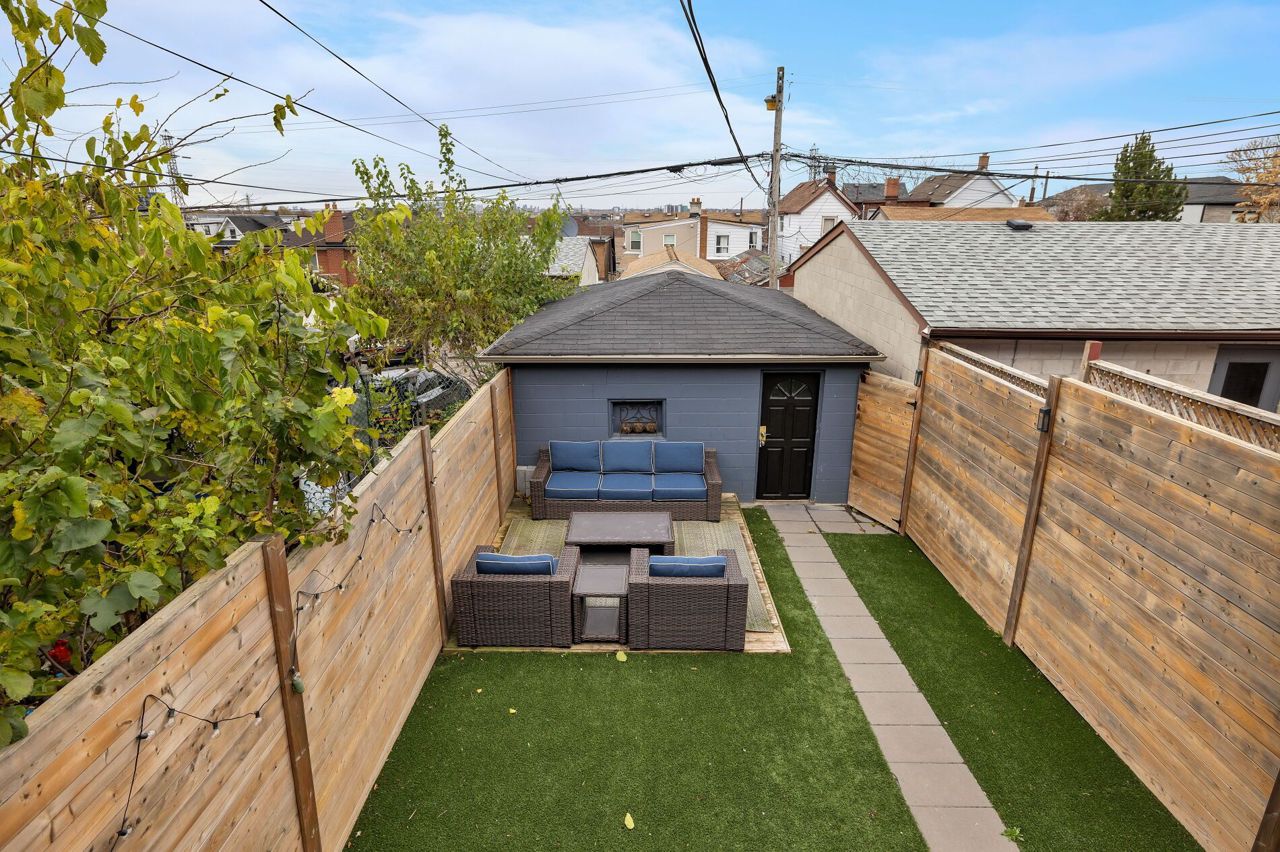 Welcome to this beautifully renovated 3+1 bedroom, 2-bathroom detached gem in one of Torontos fastest-growing, family-friendly neighborhoods Corso Italia! Thoughtfully redesigned since 2019, this home combines modern style with functional upgrades, including new electrical, 3-zone ductless AC, and an efficient hot water on-demand boiler system. The main floors open-concept layout creates seamless sight-lines from front to back, complemented by sleek laminate flooring throughout.The heart of the home is a stunning two-tone kitchen featuring a waterfall quartz island, farmhouse sink, stainless steel appliances, and a custom wine cabinet. With ample storage and a walkout to your own private backyard oasis, this space is perfect for entertaining. Outside, enjoy a brand-new wood deck overlooking a low-maintenance turf lawn, bordered by tall privacy fences. A lower-tier sun lounge and a covered sitting area make it ideal for cozy fireside evenings. Upstairs, the primary bedroom offers a walk-in closet, while the renovated main bath features a luxurious deep soaker tub. The basement includes a fourth bedroom, a versatile recreation area, a fully updated 3-piece bath, and a walkout to the backyard perfect for families or an easy conversion to a basement apartment, with rough-ins already in place for extra income potential. Move-in ready and situated in vibrant Corso Italia, this home offers modern comforts and timeless charm in a thriving community setting. Don't miss it!