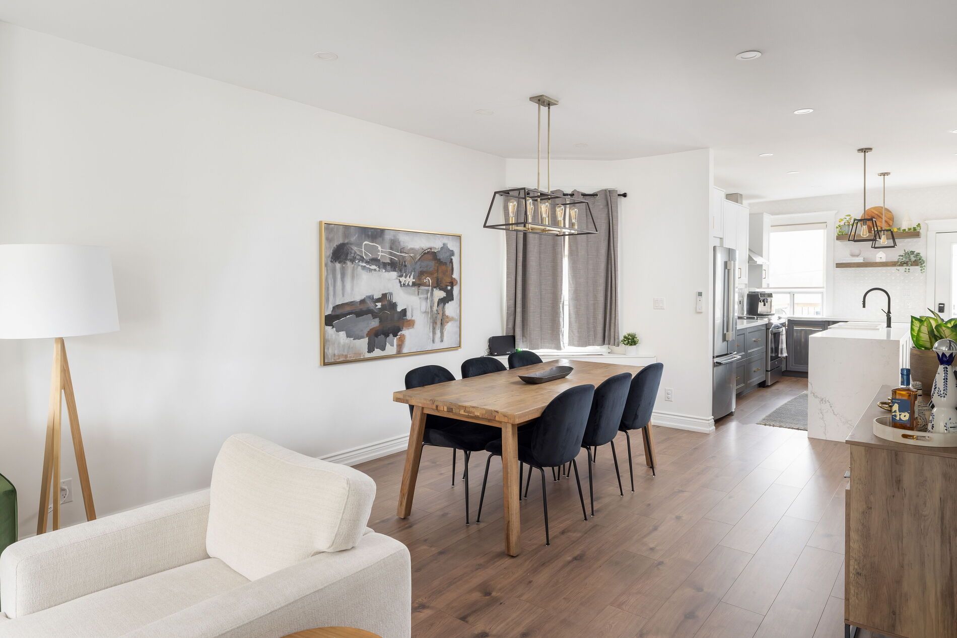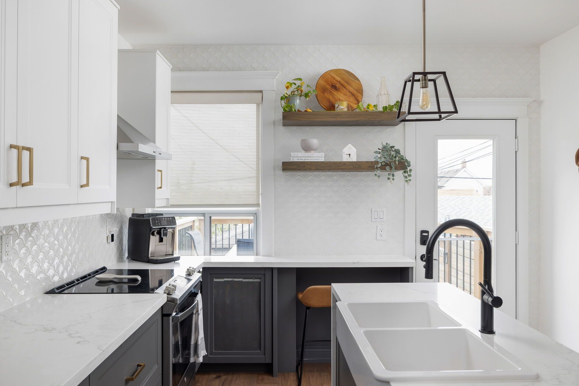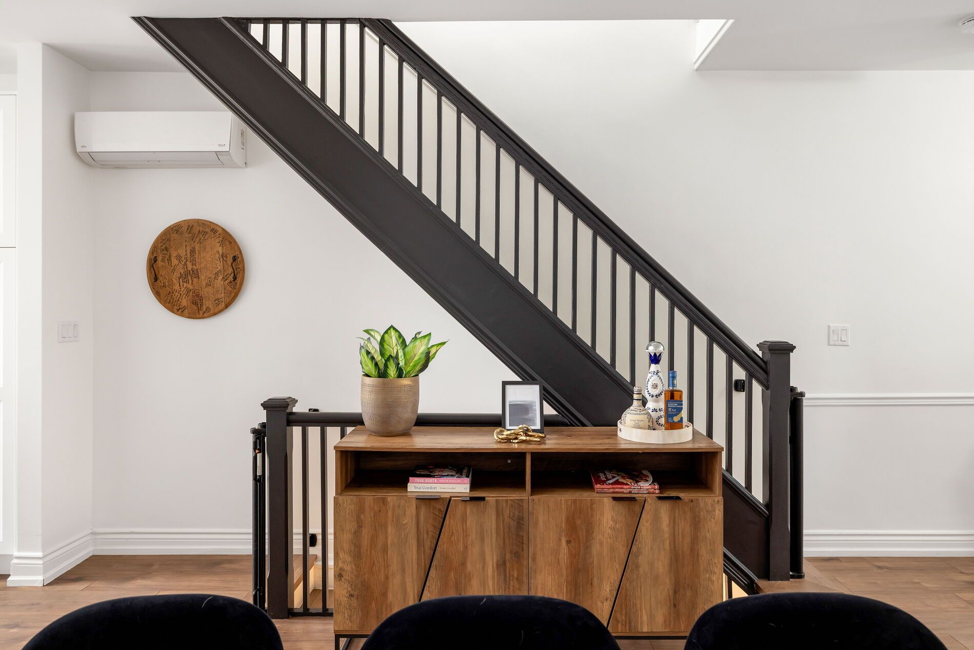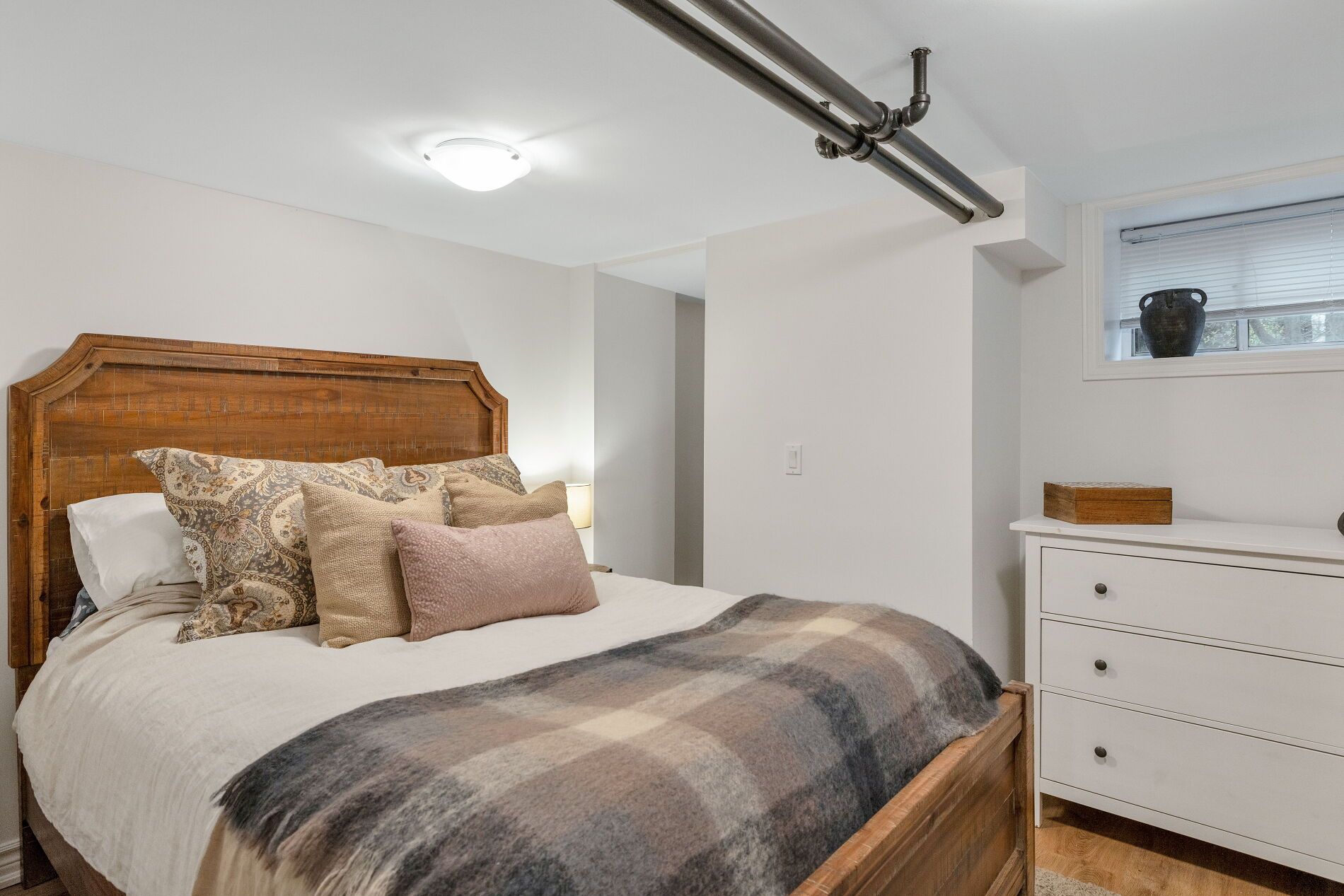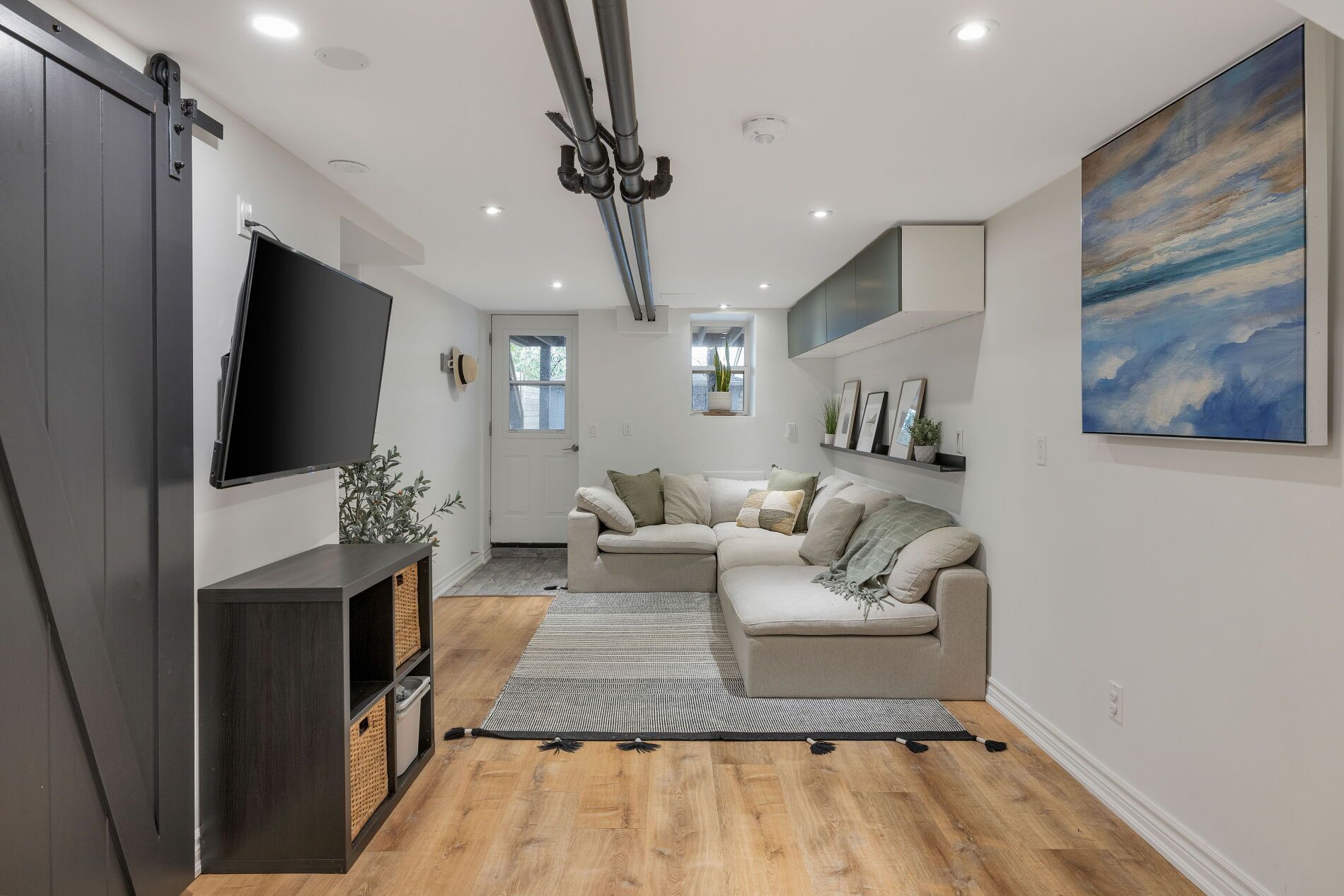 Welcome to this beautifully renovated 3+1 bedroom, 2-bathroom detached gem in one of Torontos fastest-growing, family-friendly neighborhoods Corso Italia! Thoughtfully redesigned since 2019, this home combines modern style with functional upgrades, including new electrical, 3-zone ductless AC, and an efficient hot water on-demand boiler system. The main floors open-concept layout creates seamless sight-lines from front to back, complemented by sleek laminate flooring throughout.The heart of the home is a stunning two-tone kitchen featuring a waterfall quartz island, farmhouse sink, stainless steel appliances, and a custom wine cabinet. With ample storage and a walkout to your own private backyard oasis, this space is perfect for entertaining. Outside, enjoy a brand-new wood deck overlooking a low-maintenance turf lawn, bordered by tall privacy fences. A lower-tier sun lounge and a covered sitting area make it ideal for cozy fireside evenings. Upstairs, the primary bedroom offers a walk-in closet, while the renovated main bath features a luxurious deep soaker tub. The basement includes a fourth bedroom, a versatile recreation area, a fully updated 3-piece bath, and a walkout to the backyard perfect for families or an easy conversion to a basement apartment, with rough-ins already in place for extra income potential. Move-in ready and situated in vibrant Corso Italia, this home offers modern comforts and timeless charm in a thriving community setting. Don't miss it!