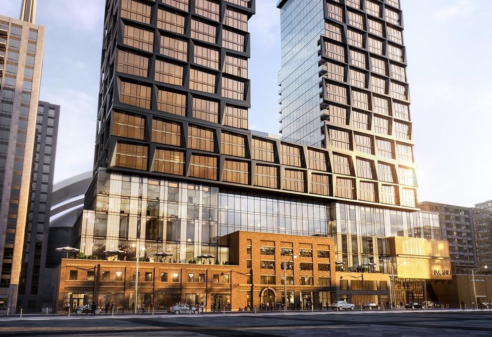 NOBU最近被列为ROBB报告的全球前25大创新奢侈品牌之一。诺布餐厅最早于1993年在纽约创立,该品牌不断扩张,目前已遍布北京、迪拜、拉斯维加斯、伦敦、墨尔本、墨西哥城、莫斯科和纽约。由著名开发商Madison Group最新在市中心娱乐区Roy Thompson Hall附近开发的NOBU Residences将成新一代豪华公寓之巅! 楼盘位于多伦多市娱乐区的中心地带,具体地址15-35 Mercer St, Toronto, ON, M5V 3W2,为大多伦多地区的绝对核心繁華地段,大楼集高品位公寓丶酒店丶高级餐厅于一体。Nobu豪华酒店公寓将是两座49层高的双塔豪华酒店式公寓楼,包括700间共管公寓和酒店客房,以及一间1400平方米的餐厅。 将在多伦多兴建的NOBU酒店是49层楼高的双塔,包括700间共管公寓和新潮酒店客房,以及一间1400平方米的诺布餐厅,确保项目的档次在Downtown独树一帜。 这个项目位于King West的核心区域,地点非常不错。下楼即可进入PATH,连通St. Andrew Station,门口也有街车,交通方便。 这间酒店公寓由多伦多Teeple Architects设计,Studio munge负责内部装饰。 优越的地理位置和便利的交通: NOBU位于著名的多伦多国际电影节街King St. West南,距安大略湖及金融区均仅咫尺之遥。举步可至多伦多金融中心和五大银行总部大楼、St Andrew地铁站、Rogers Centre、CN Tower,近多伦多大学、瑞尔森(Ryerson)大学,拥有各种中西超市、地下商城,名人冰球馆、BCE购物广场,近市政大厅、省政府办公大楼、豪华五星级宾馆、各大医院、学术研究机构、文化艺术中心、娱乐中心、广播电视中心等重要设施和区域,不远处坐落着Rogers Centre、CN Tower、地下商城、剧院(北面紧靠多伦多国际电影节大楼和市内最大的电影院--Scotiabank Theatre)。 该区属西人主流社区,人流畅旺,生活多姿多彩。近高速,交通购物非常方便,步行距离地铁、娱乐区就在楼下附近。不但地段绝佳,而且闹中取静,是多伦多市中心建造公寓大楼不可多得的好地方。 投资潜力 由于NOBU地处寸土寸金的金融区旁,而且又是传统西人主流社区及著名的娱乐区,人流畅旺,各种酒吧、中西超市、餐馆林立,住户可拥有便利的购物和就餐环境,享受多姿多彩的都市生活。 每年引人注目的多伦多国际电影节(tiff)举办中心就近在咫尺,因此NOBU 的优越性自然不言而喻,拥有房产保值、增值的极大保证!由于周围有众多办公大楼、大学和金融中心,也极容易出租。