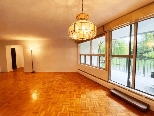 They Just Don't Build Them This Big Anymore. Massive 3 Bedroom Condo With Walk Out To Ravine. Only 4 Units In This Building Have Walk Outs To Private Terrace And Ravine As Your Backyard. 3 Large Bedrooms With Windows Facing Ravine. Combined Living/Dining Area Is Huge And Big Enough For Any Furniture Or Table Choices. 2 Entrances To Kitchen From Both Sides Of Room. Newly Painted, Parquet Floors Throughout, And Private Laundry Room Off Of Kitchen. Fridge, Dishwasher, Stove And Custom Roll Down Shutters. Gym, Indoor Pool, Party/Meeting Room, Sauna, Security Guard, Hobby Room, Visitor Parking. Building Well Maintained/New Balconies/Terraces For All Units In 2020/21.